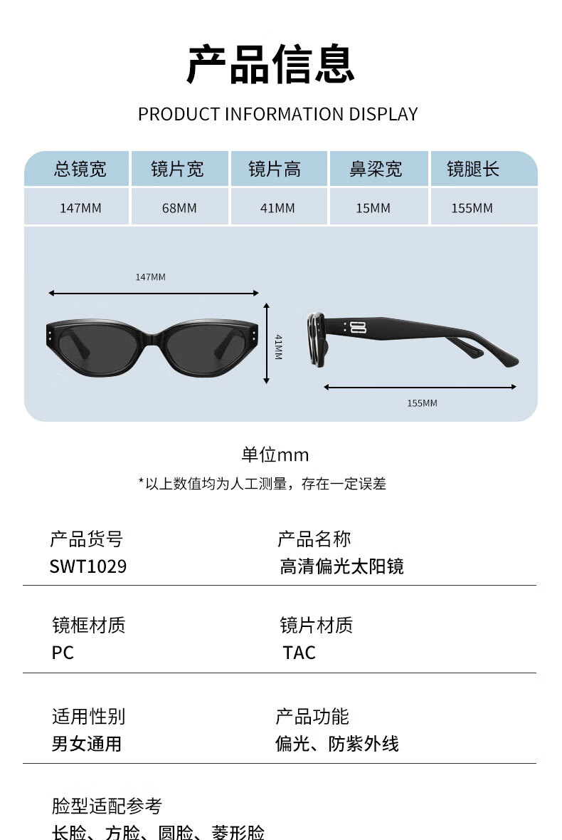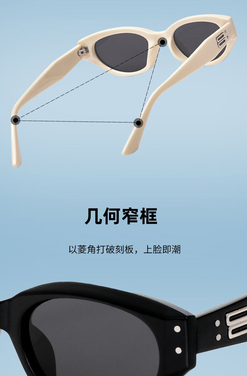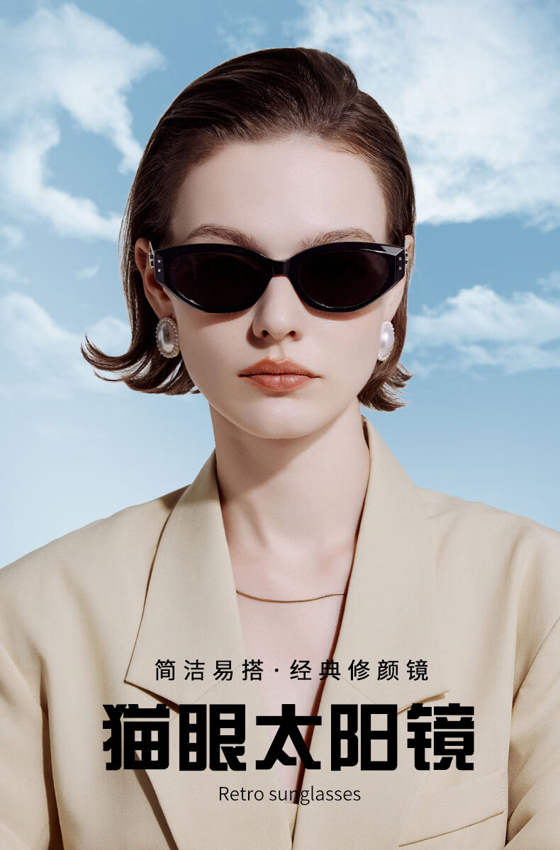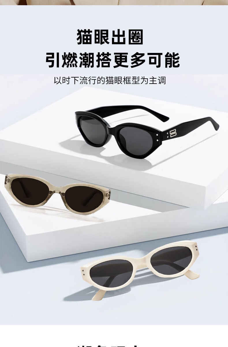 四万公里复古猫眼偏光墨镜女高级感窄框眼镜潮防紫外线太阳镜防晒