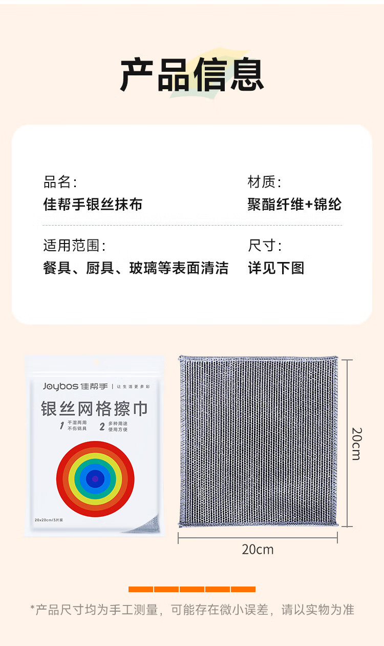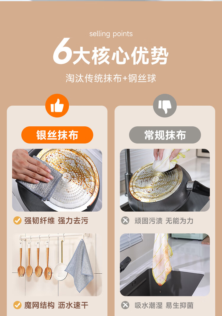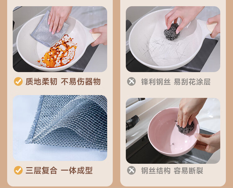 佳帮手三层银丝抹布20*20cm*6片厨房类钢丝球清洁家政刷锅洗碗百洁布