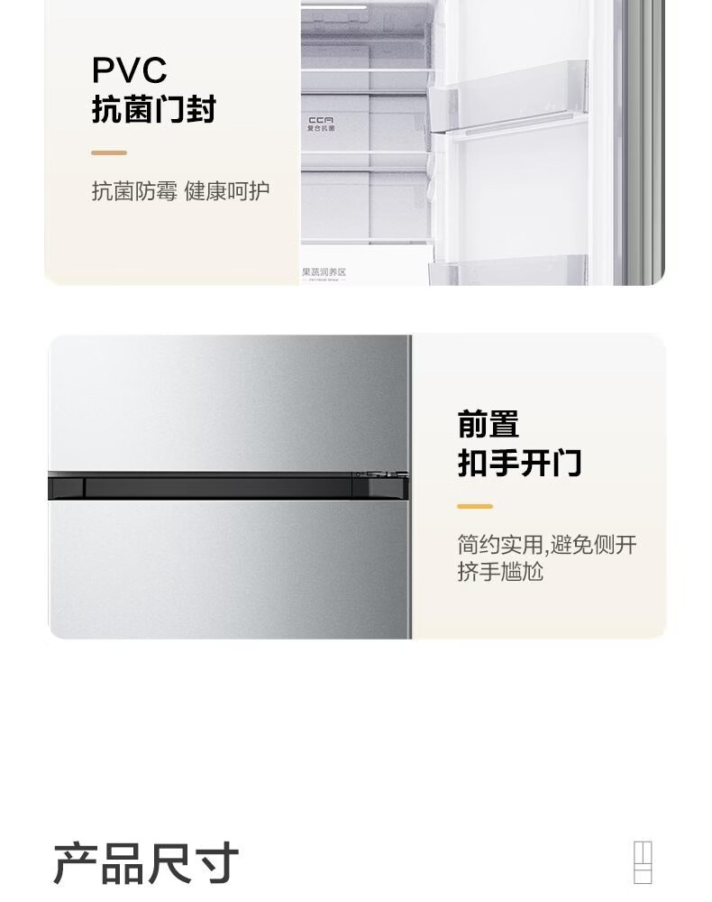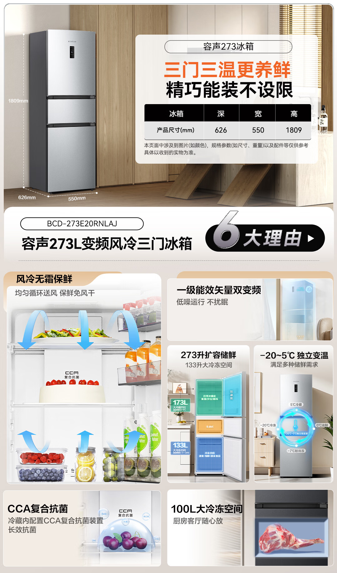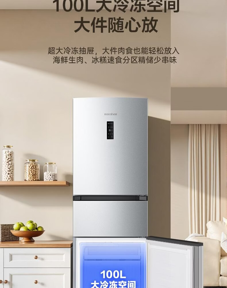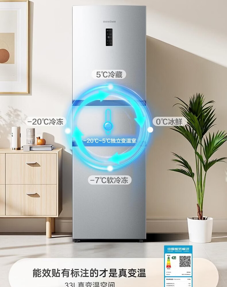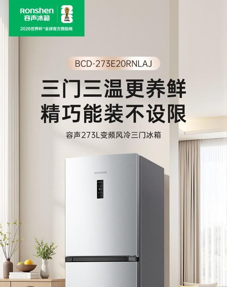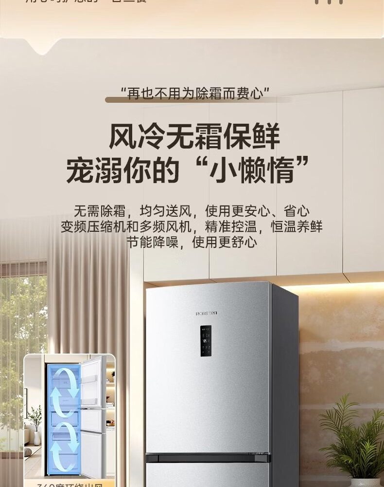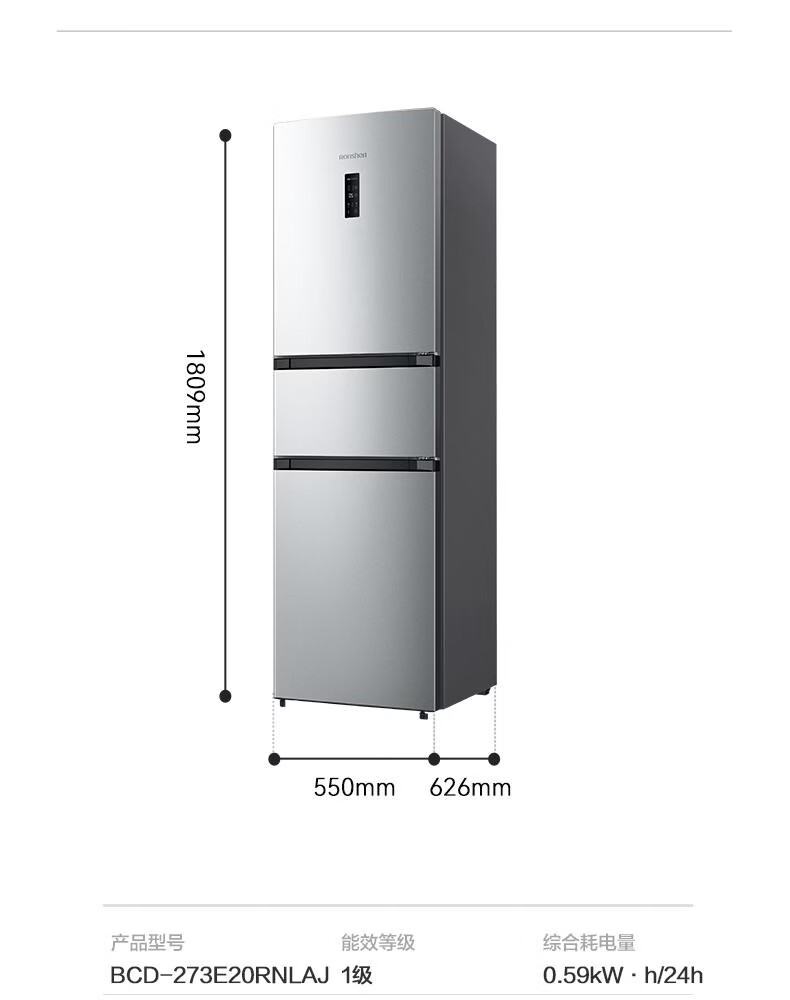 容声273L三门小冰箱小户型超薄一级能效风冷无霜变频节能出租房家用以旧换新BCD-273E20RNLAJ