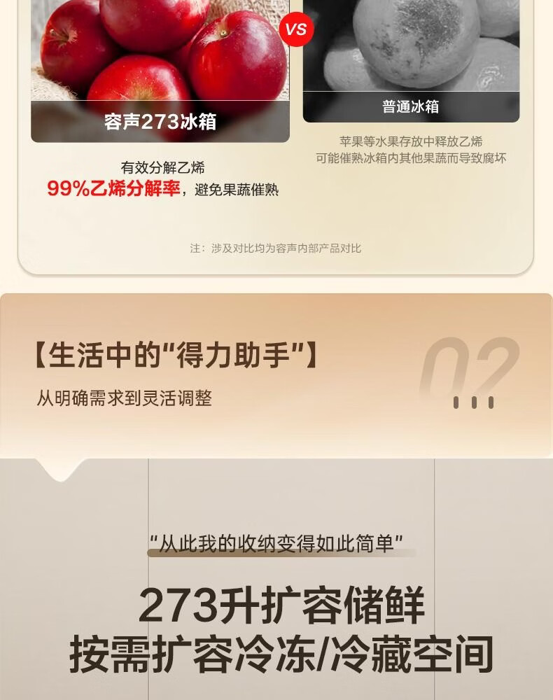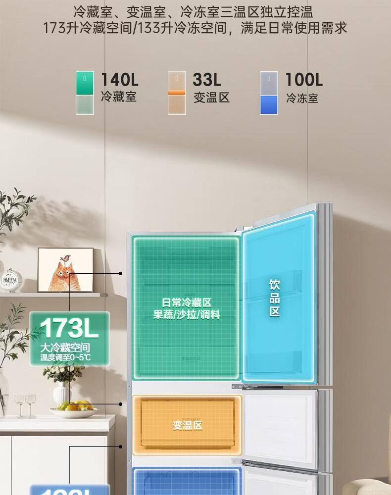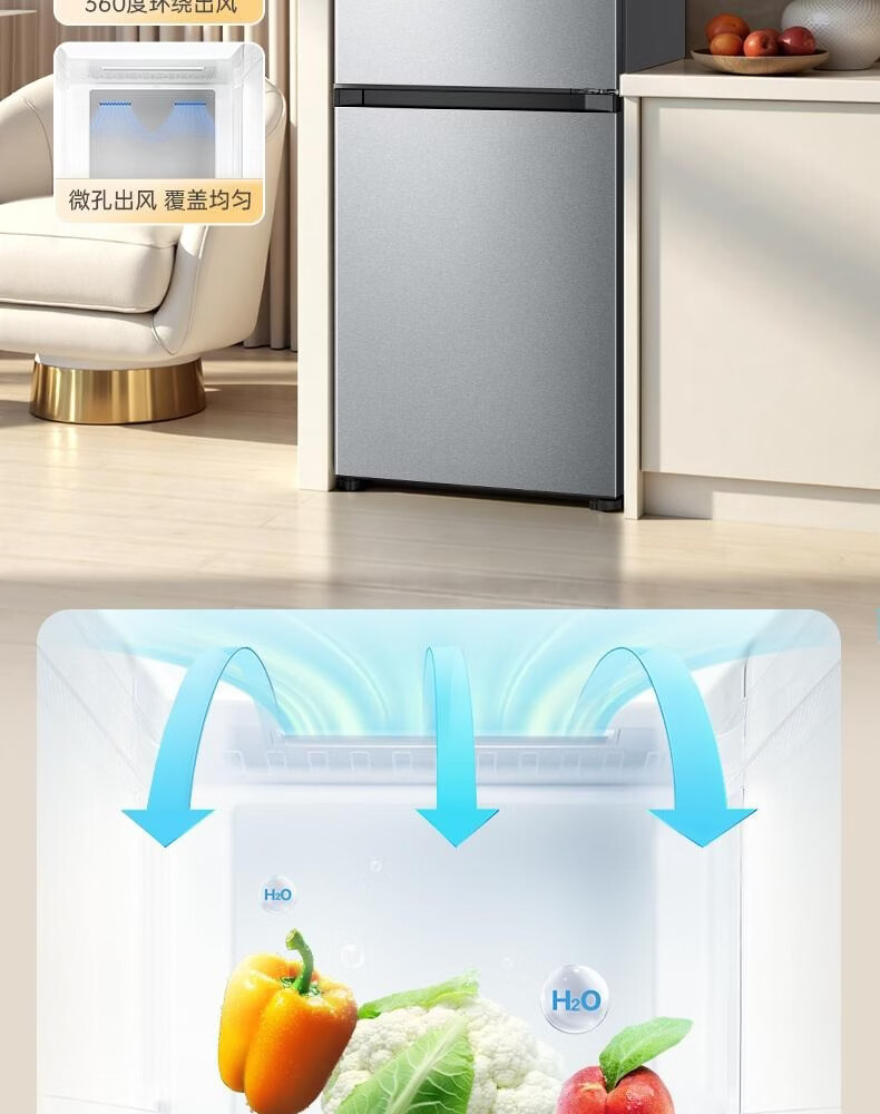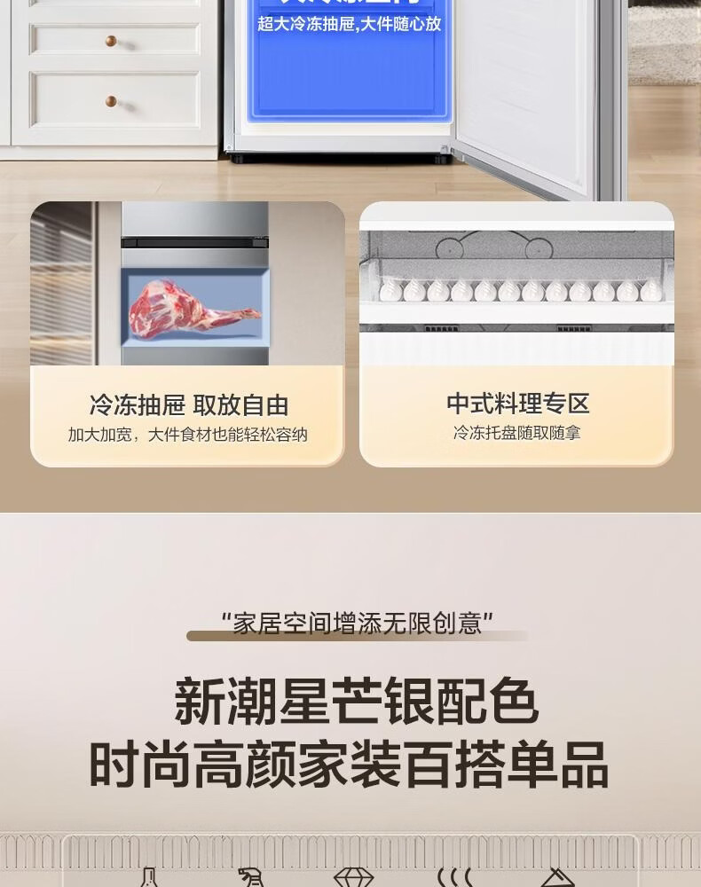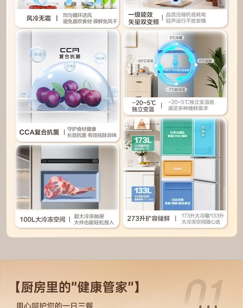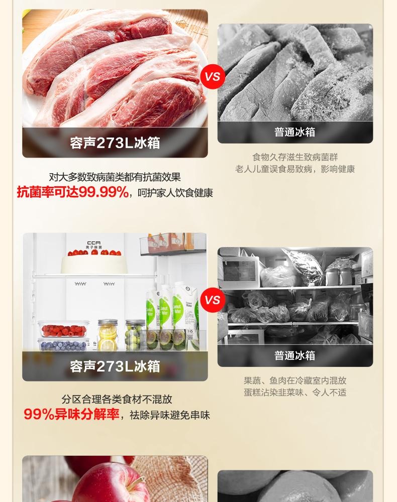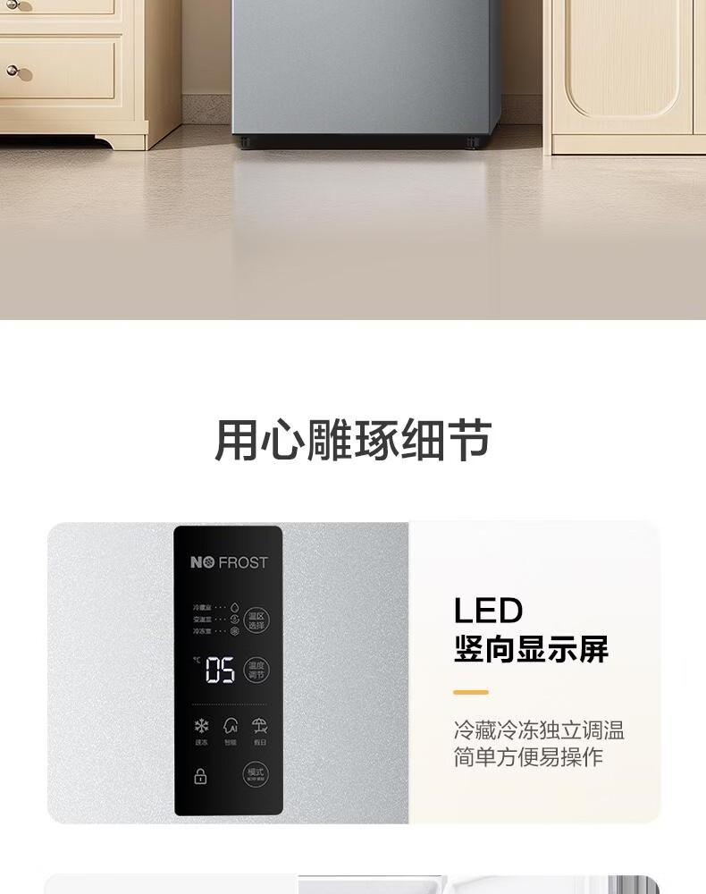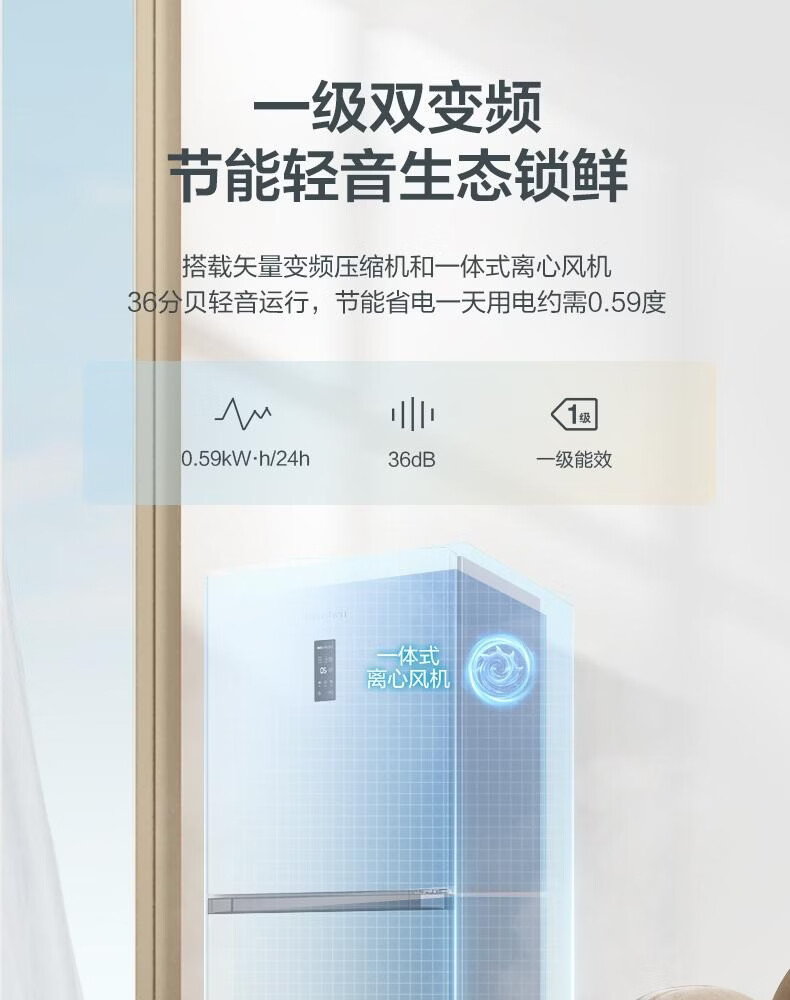 容声273L三门小冰箱小户型超薄一级能效风冷无霜变频节能出租房家用以旧换新BCD-273E20RNLAJ
