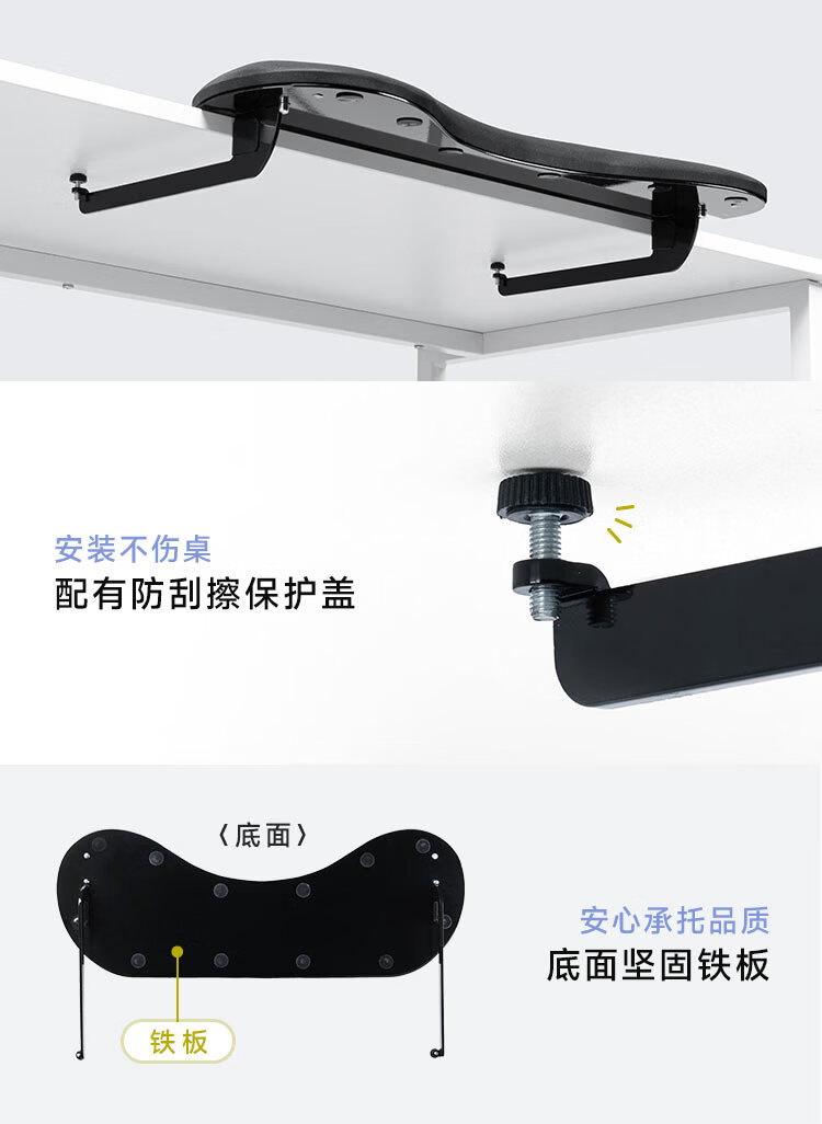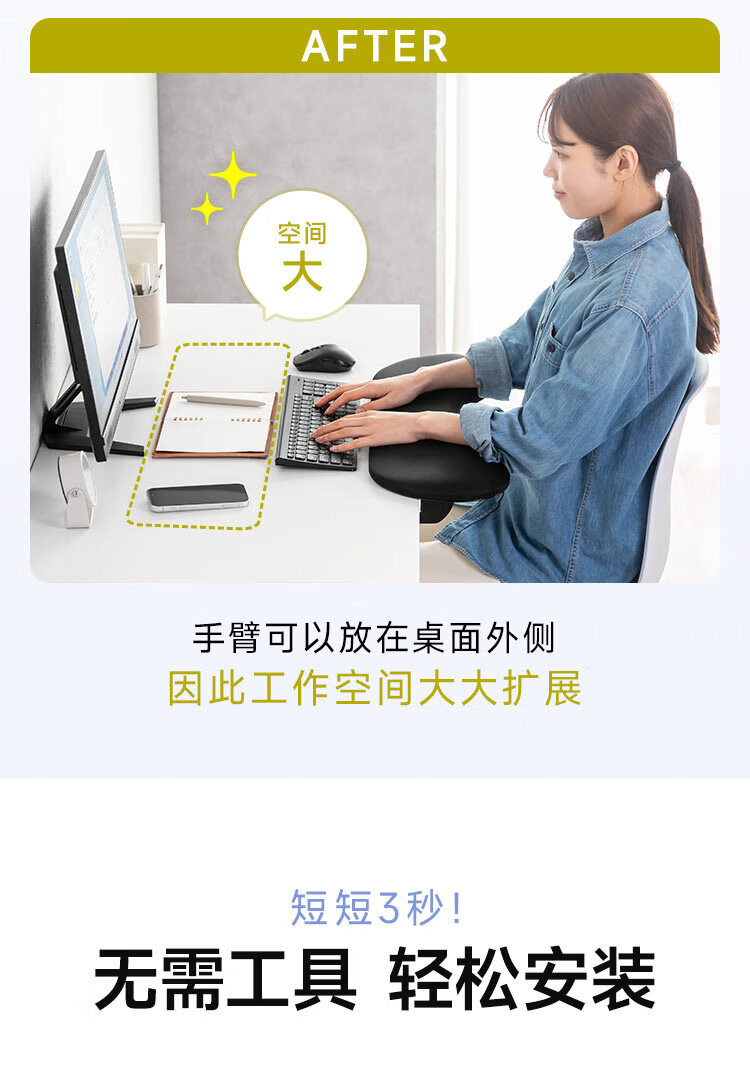 山业sanwa supply人体工学键盘托架护腕垫肘托架托台 支架臂桌面延长板拓展板 电脑鼠标收纳 免打孔 免打孔【人体工学】【桌板适用厚度 8-30mm】