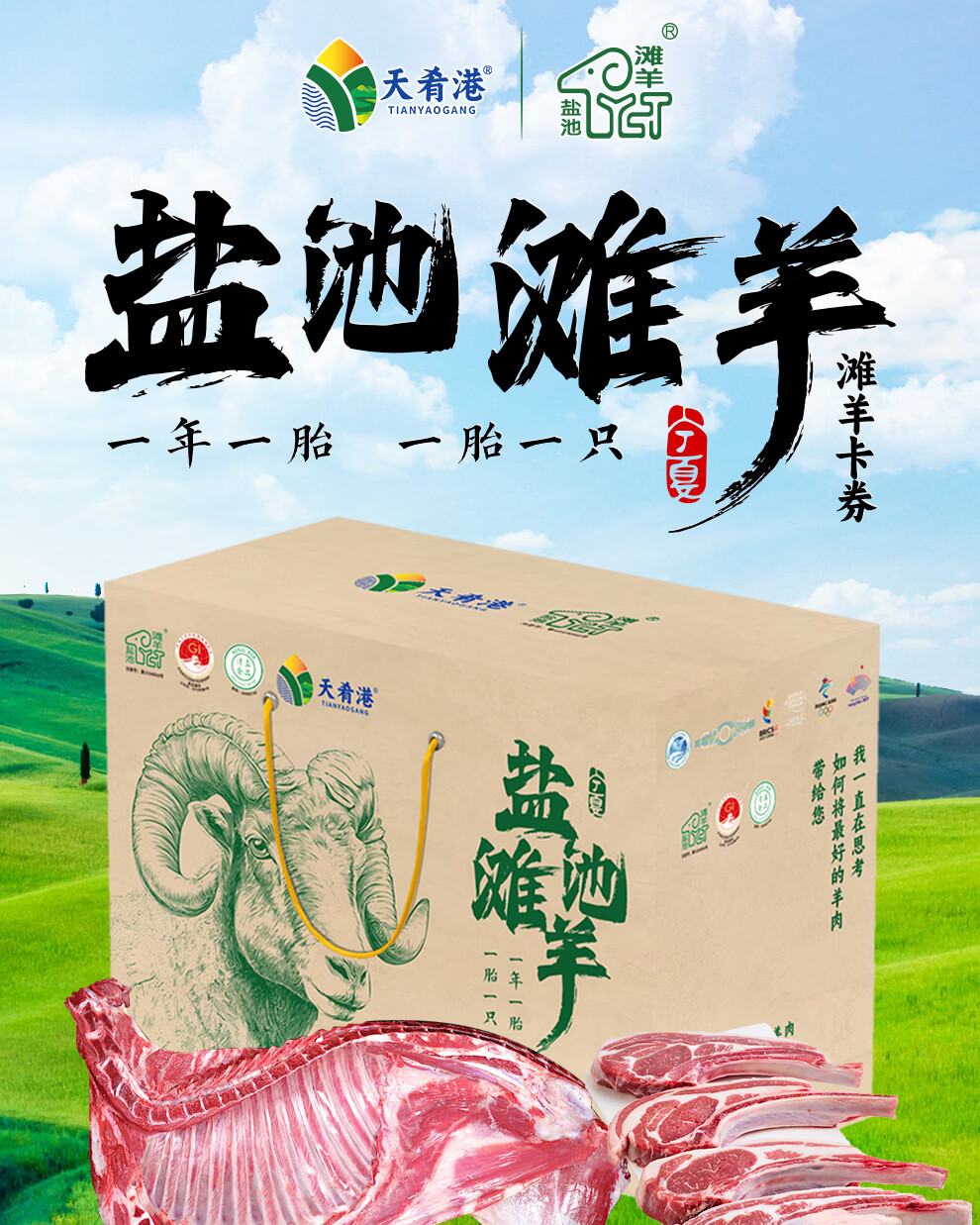 天肴港宁夏盐池滩羊清真生鲜羊肉整半只羊食材火锅烧烤食材直发 【小家庭尝鲜装】盐池滩羊 4 斤