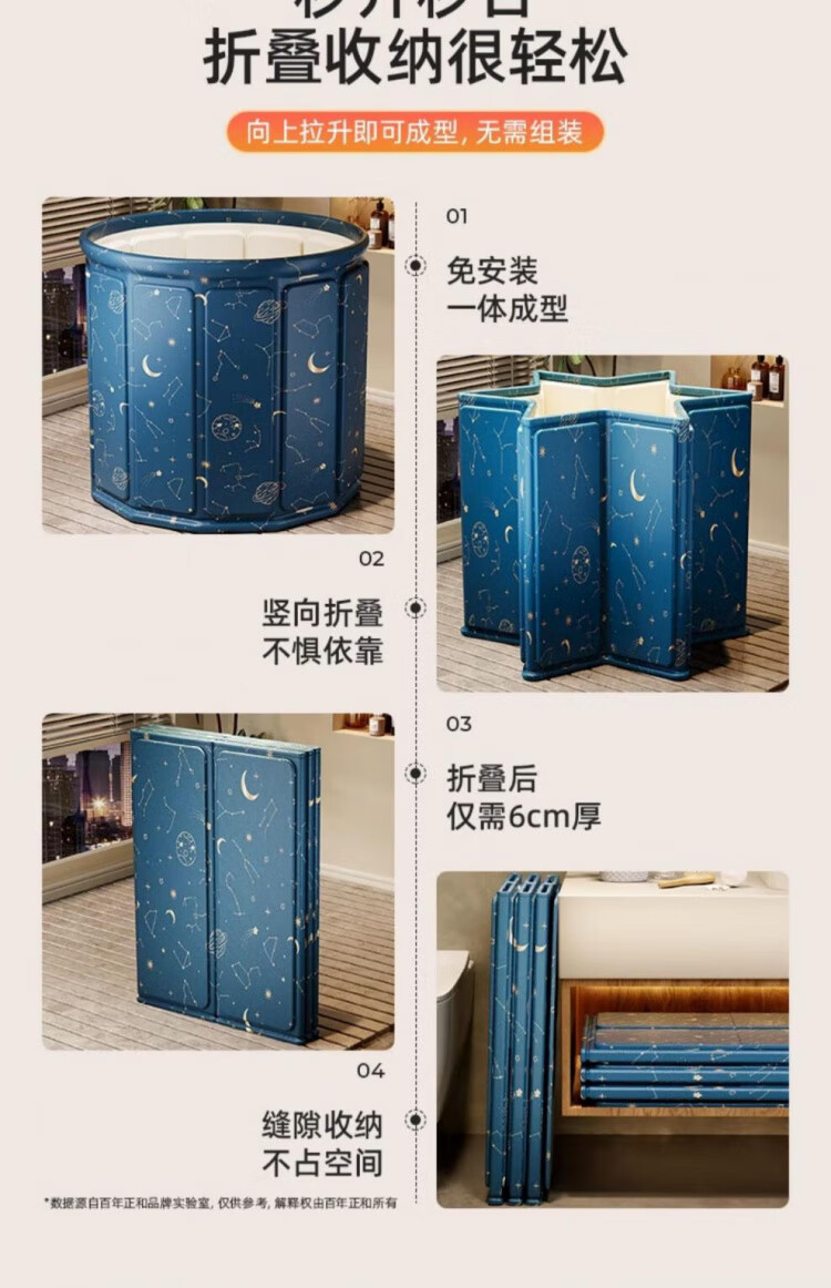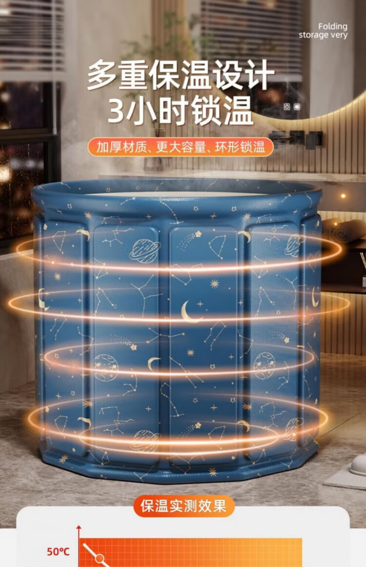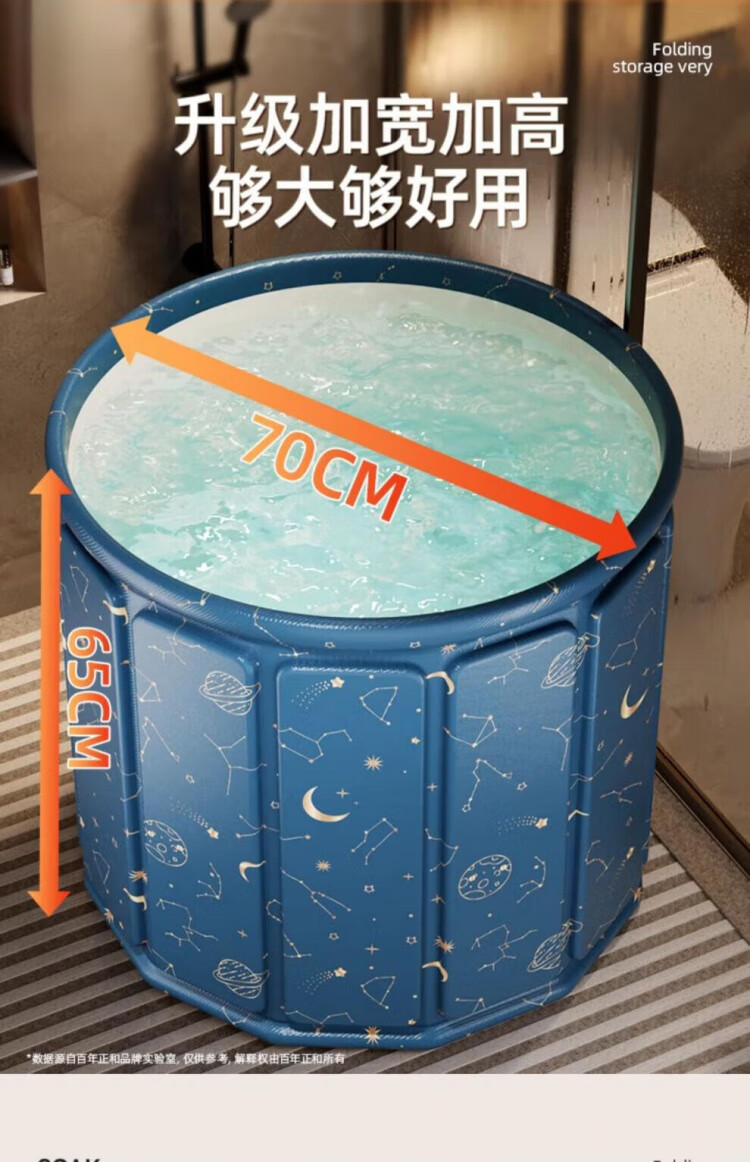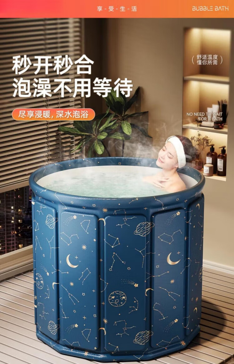 JFHSBS德国泡澡桶盆洗澡桶可折叠大人用浴桶成年人沐浴加热折叠浴缸家用 【碎金星河】70公分 浴袋*5