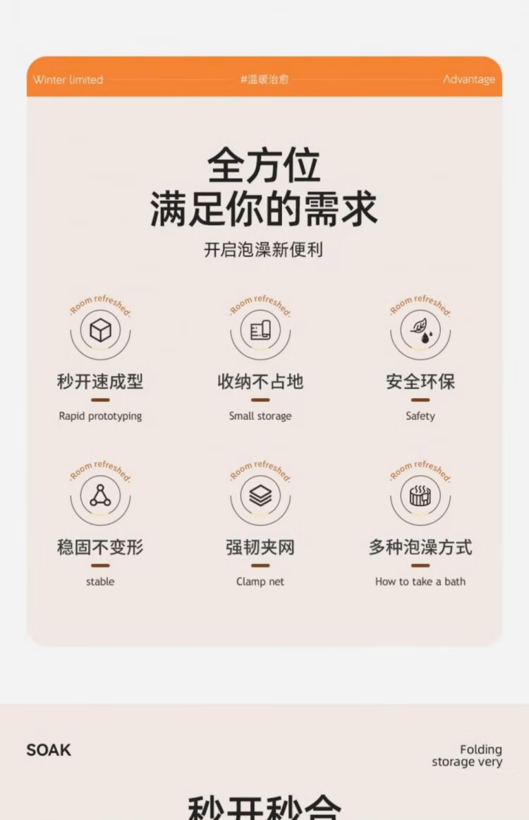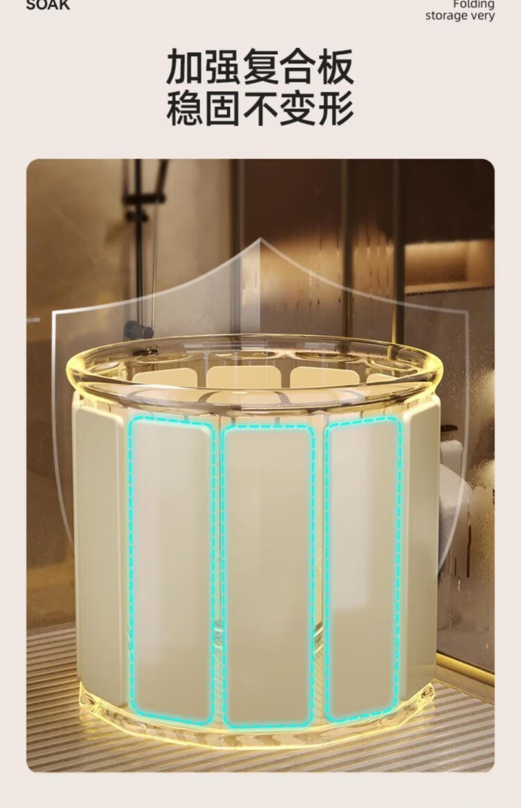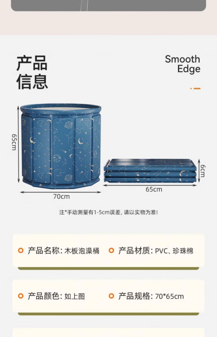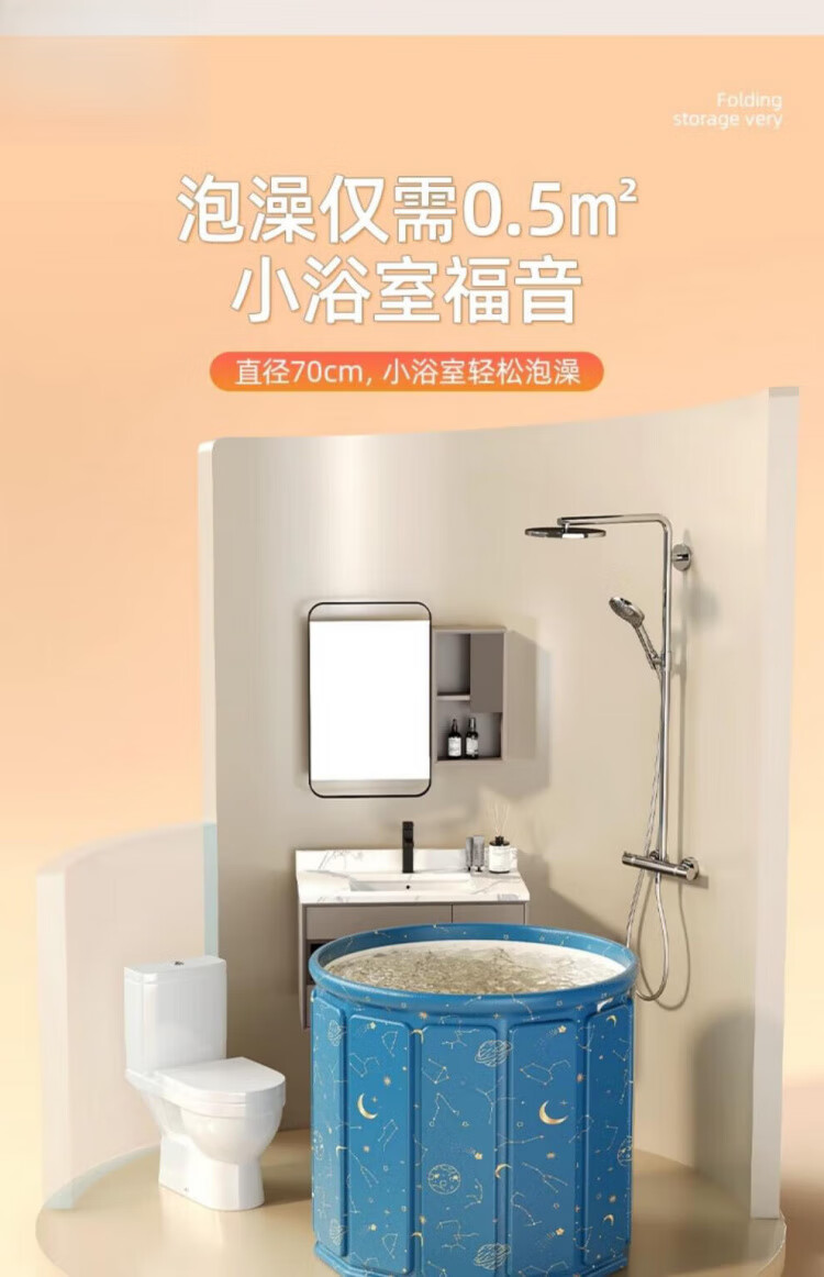 JFHSBS德国泡澡桶盆洗澡桶可折叠大人用浴桶成年人沐浴加热折叠浴缸家用 【碎金星河】70公分 浴袋*5