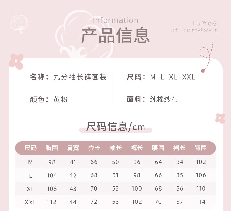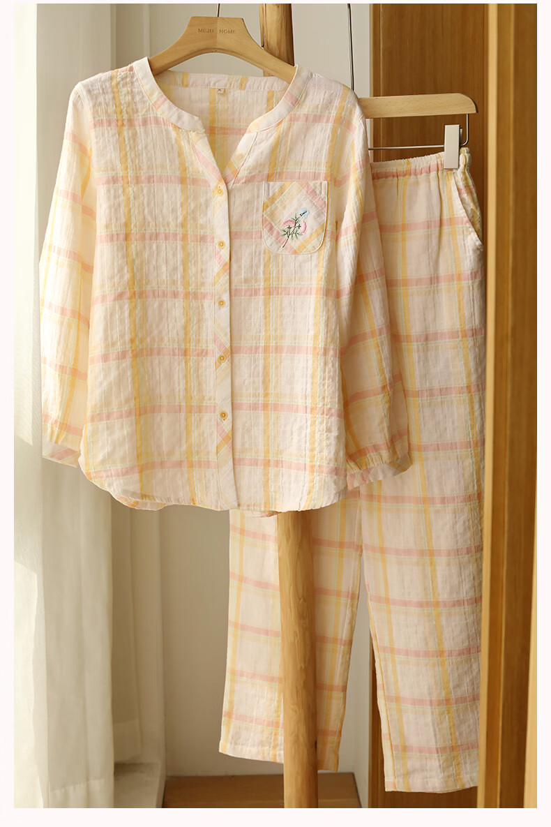 蔓秋 MEJU睡衣女秋季纯棉女士长袖长裤套装家居服套装 黄色 M 110斤以内