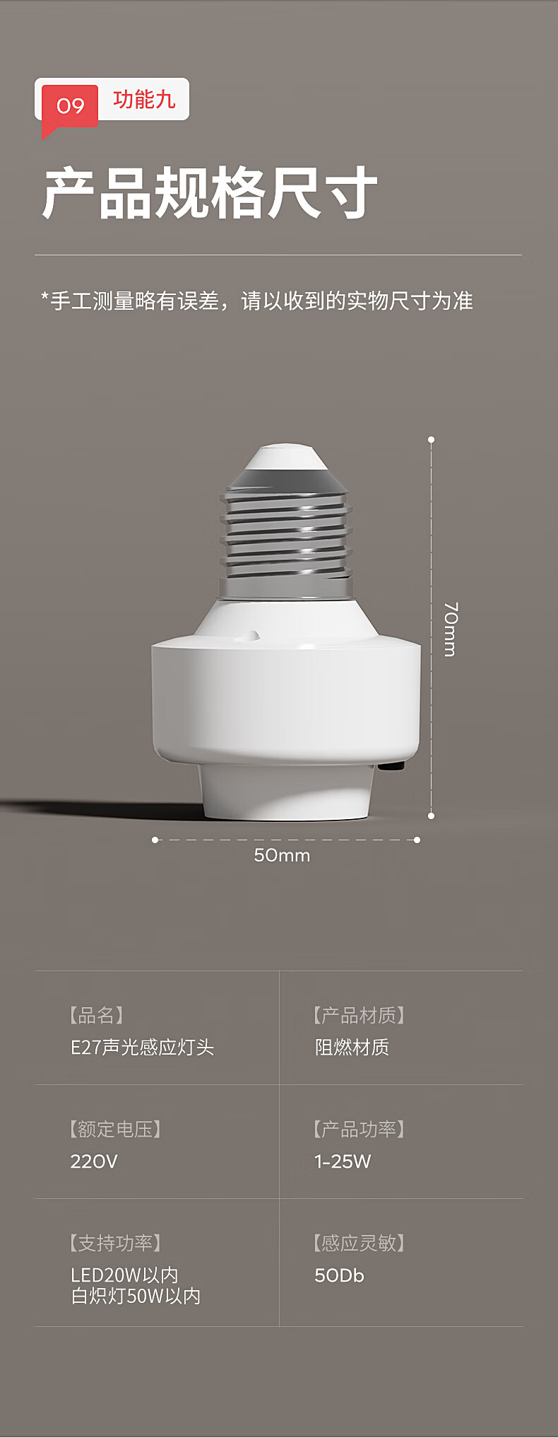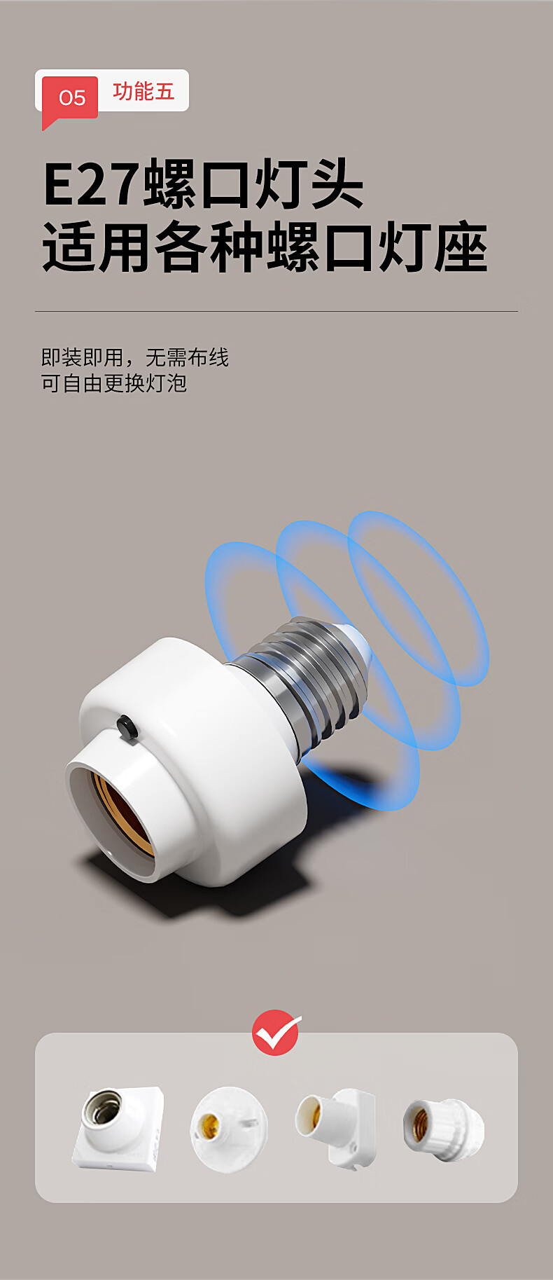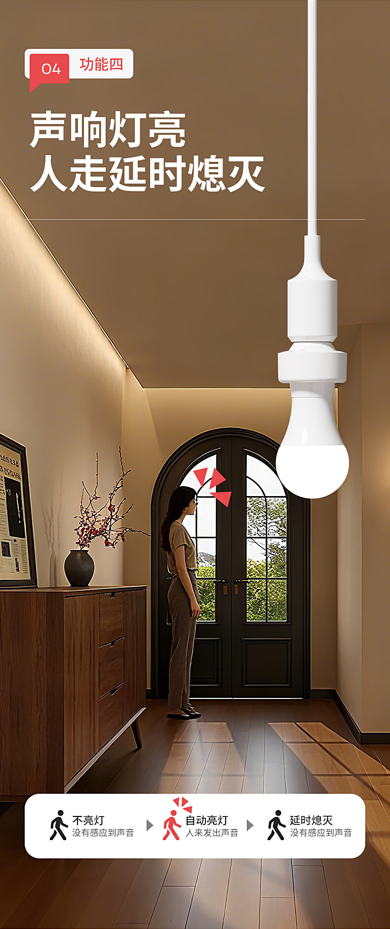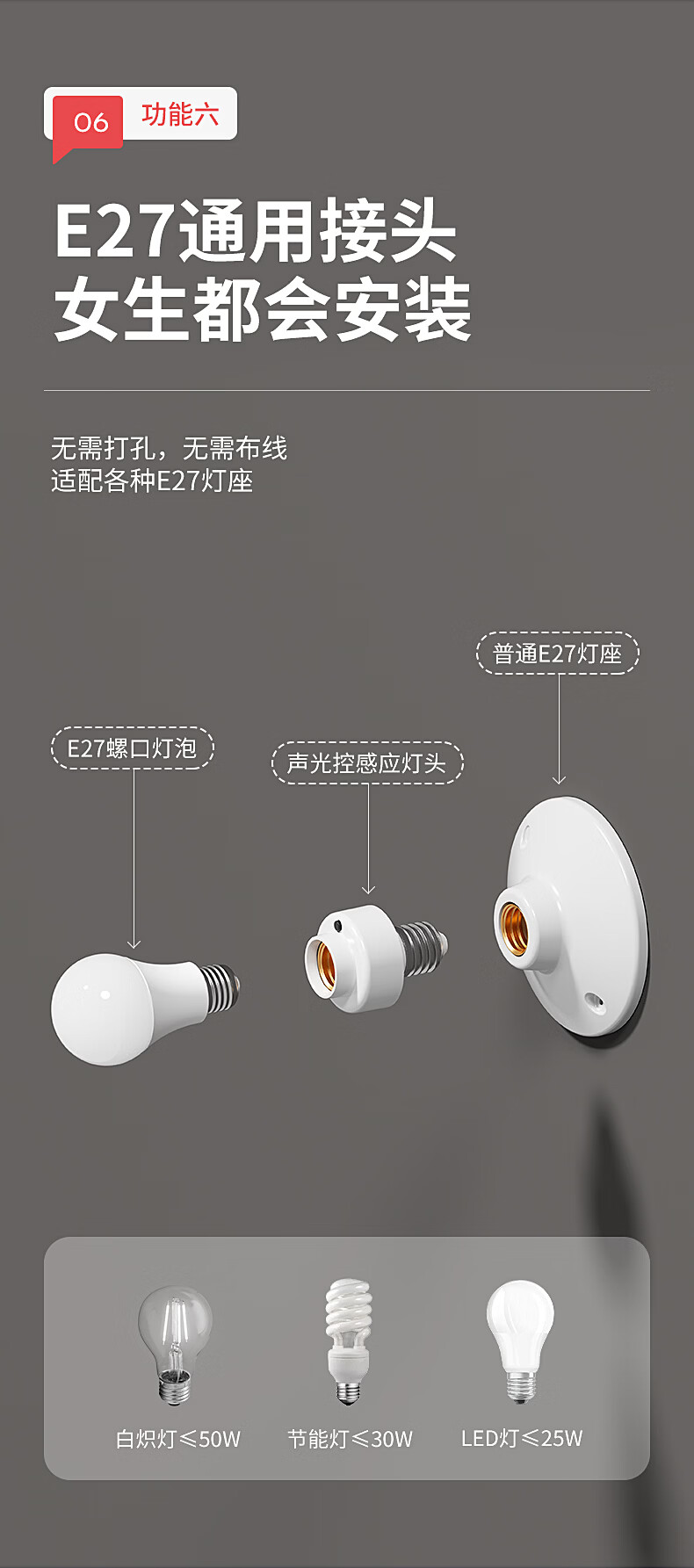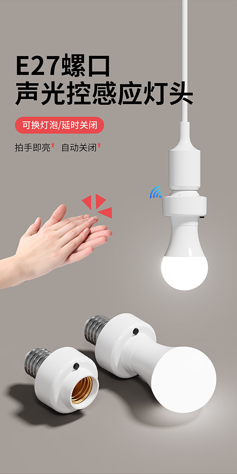 国际电工E27螺口声光控灯头LED节能声控感应灯座车库楼道走廊延时灯泡底座 声光控感应灯头【无灯泡】