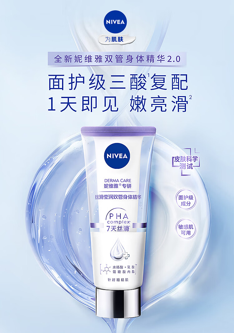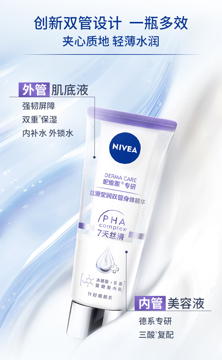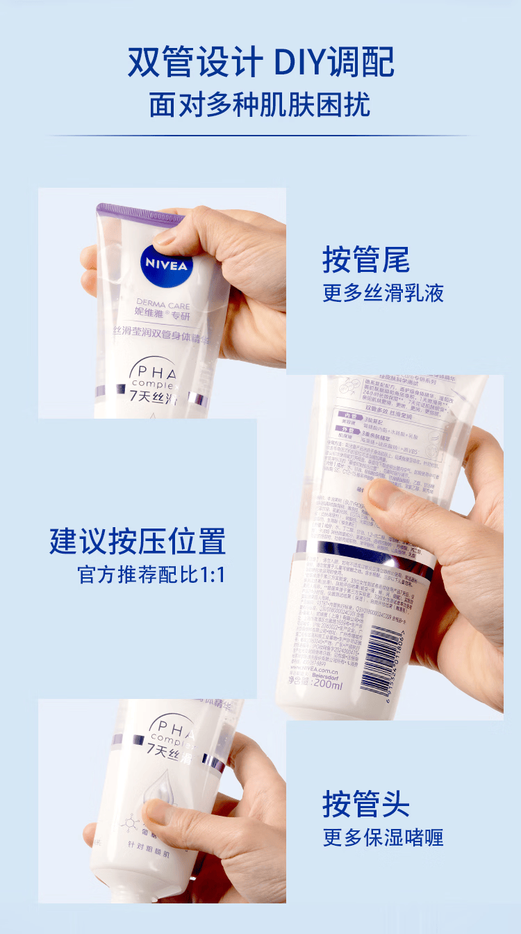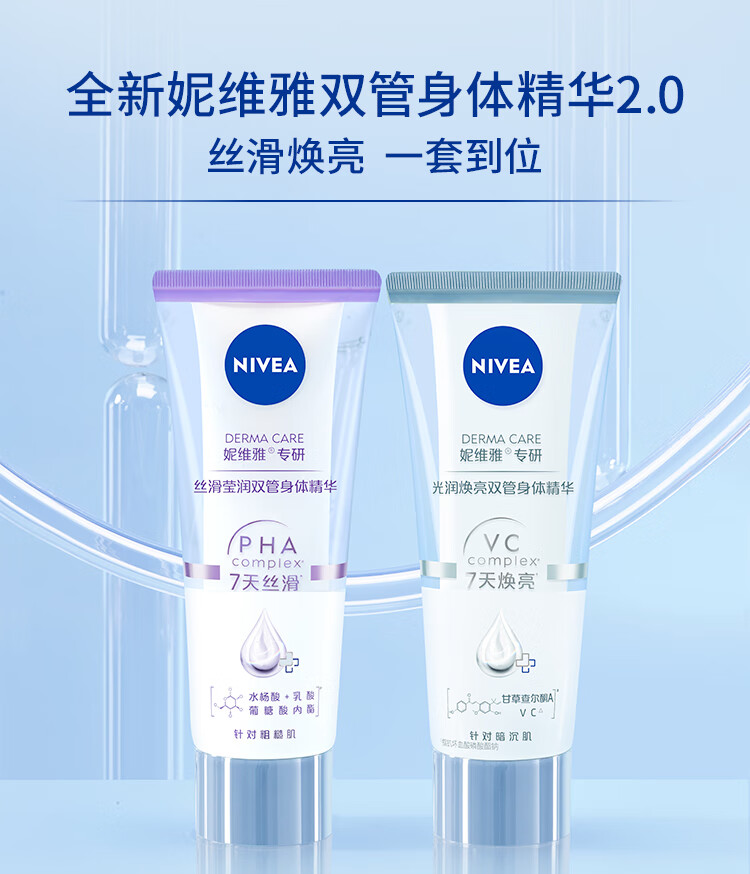 妮维雅(NIVEA)孙颖莎同款丝滑莹润双管身体精华乳女士200ml果酸保湿