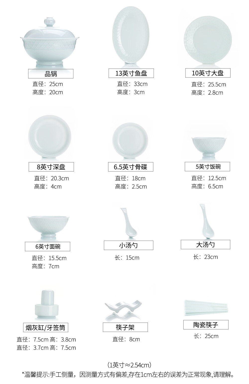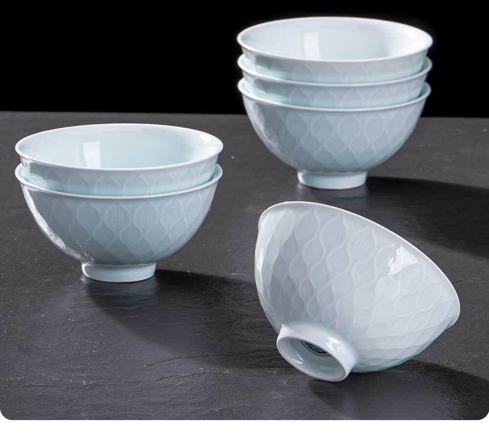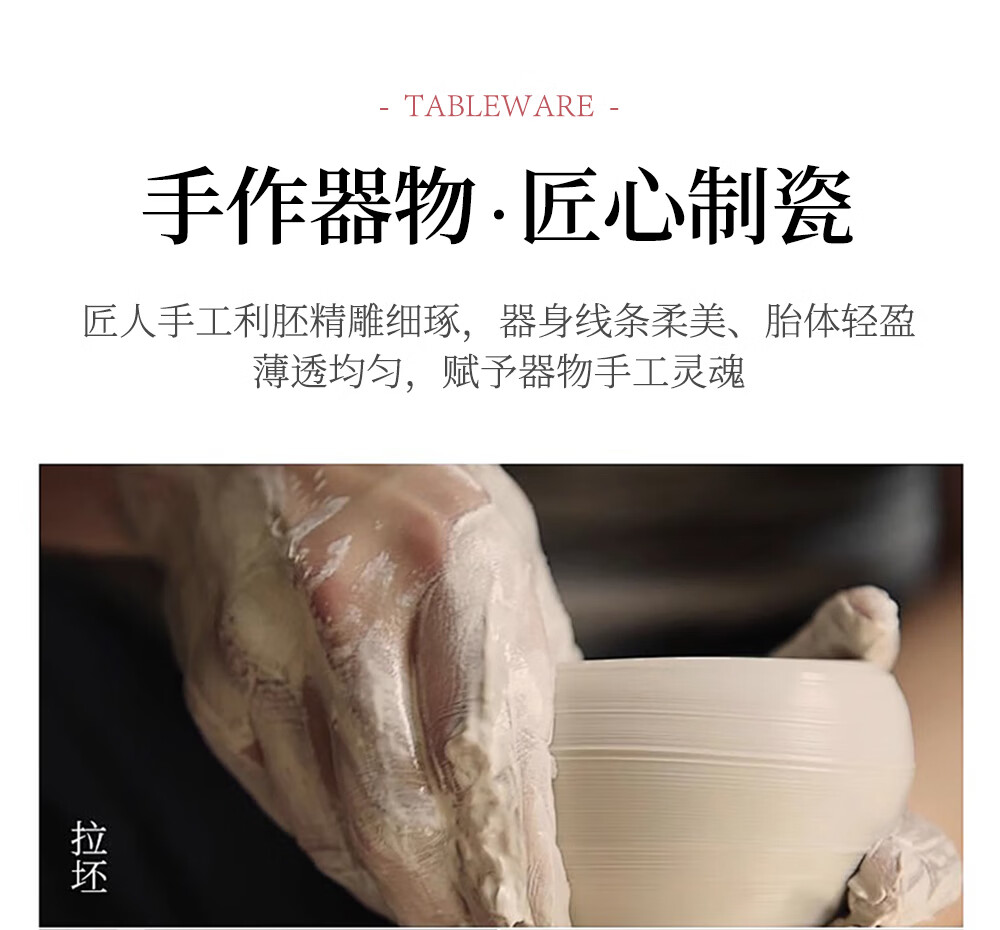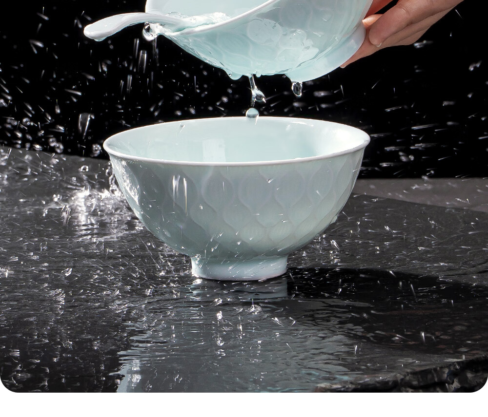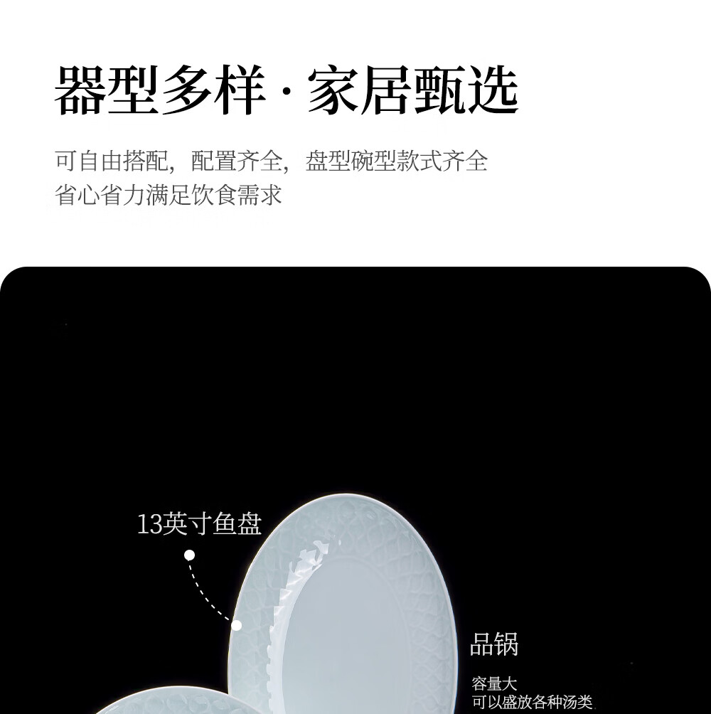 韵之和碗碟盘景德镇原矿釉高岭土高温青瓷餐具浮雕碗具整套家用盘子送礼 国色天香-56件8人食配品锅