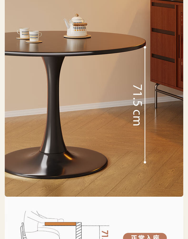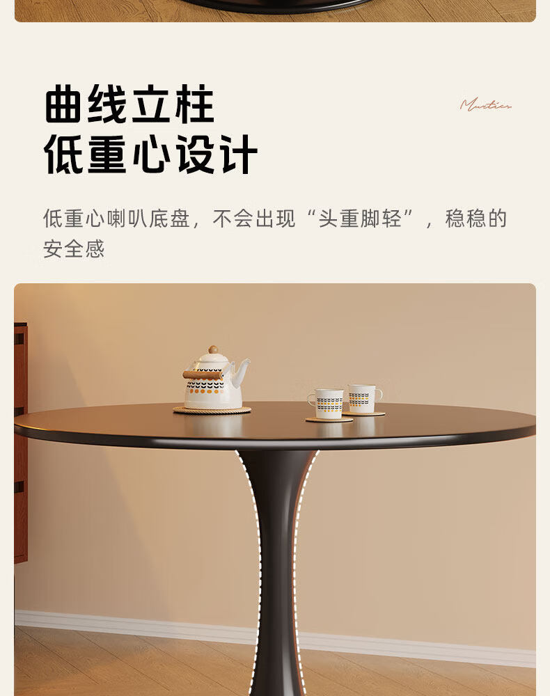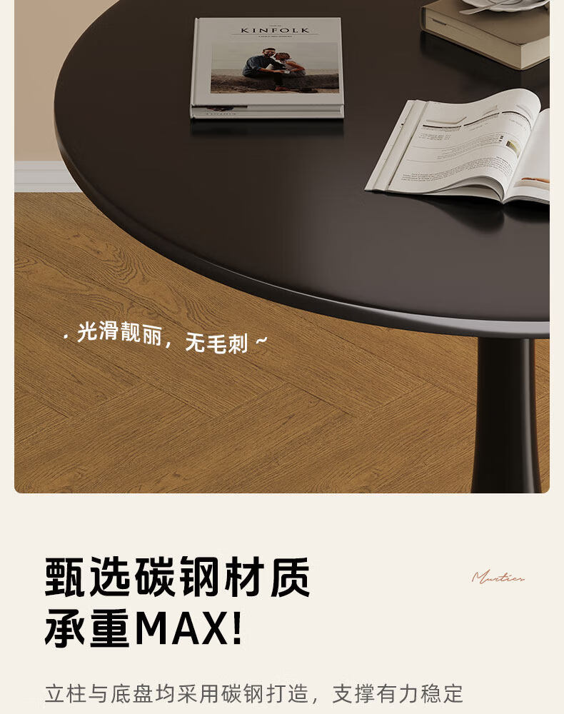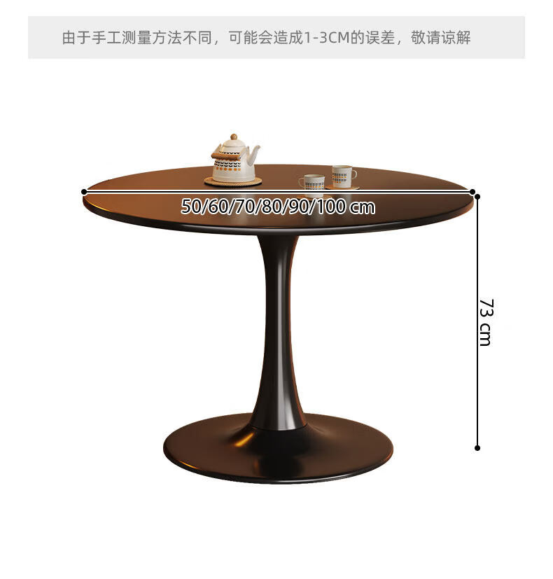 树浩餐桌阳台茶桌茶台轻奢洽谈桌家用吃饭圆桌小户型书桌出租房工作台 【加固烤漆钢架】绅士黑50cm直径圆桌