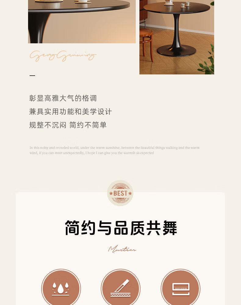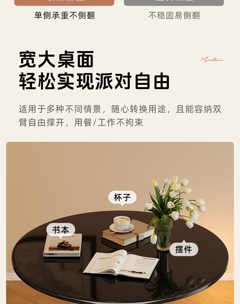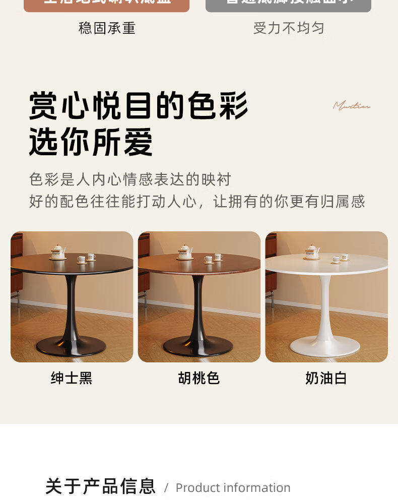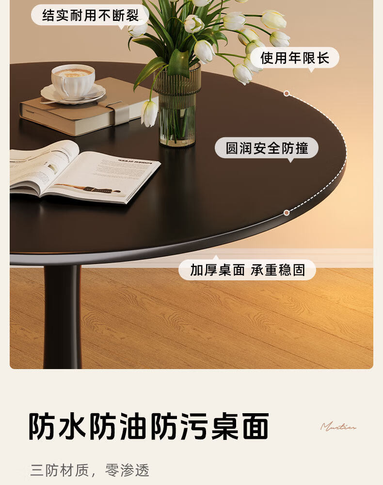 树浩餐桌阳台茶桌茶台轻奢洽谈桌家用吃饭圆桌小户型书桌出租房工作台 【加固烤漆钢架】绅士黑50cm直径圆桌