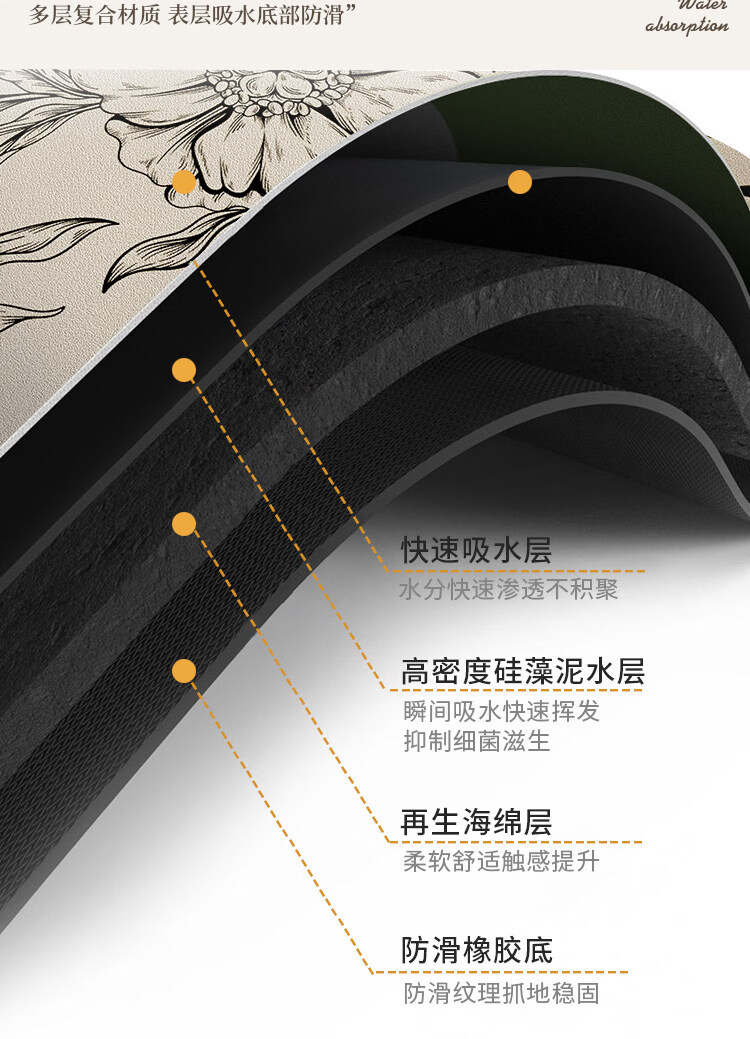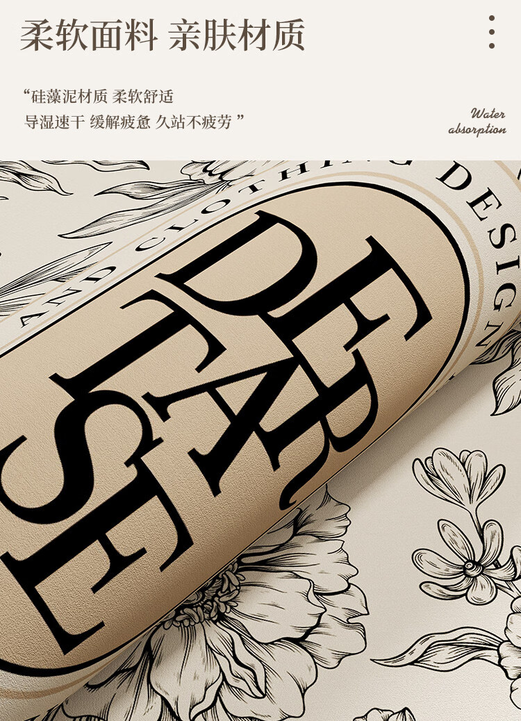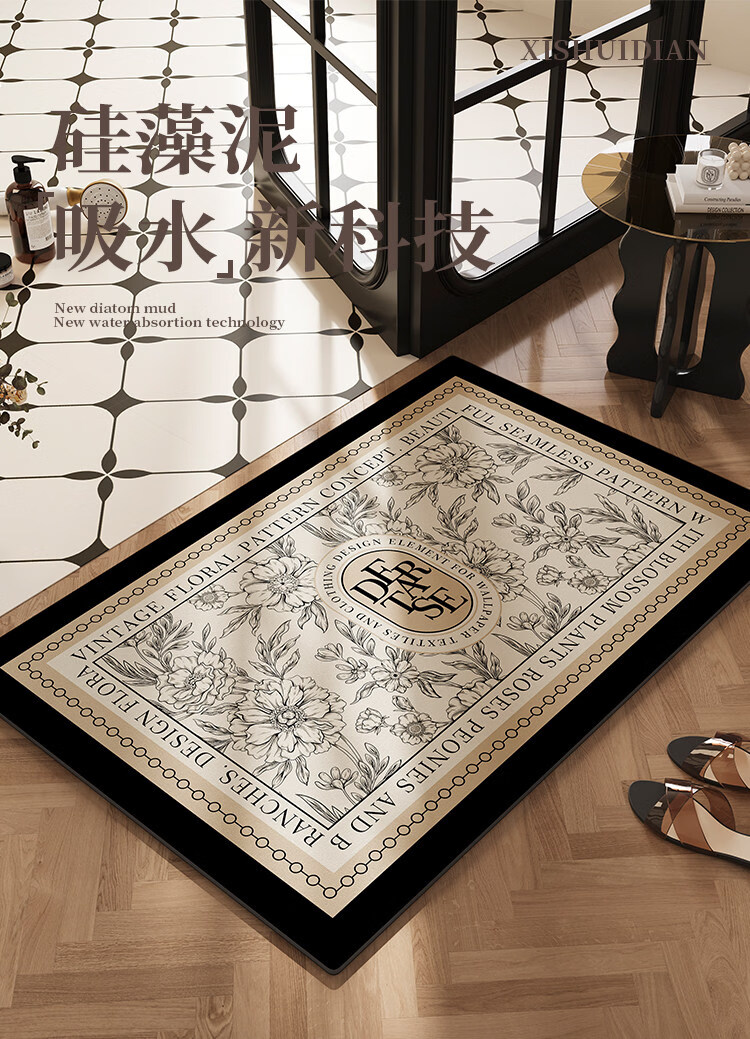 DONOYA 多罗亚硅藻泥卫生间地垫浴室门口吸水地垫2026新款浴室厕所防滑垫脚垫 矽藻泥939美式田园 40cm*60cm 【吸水速干】