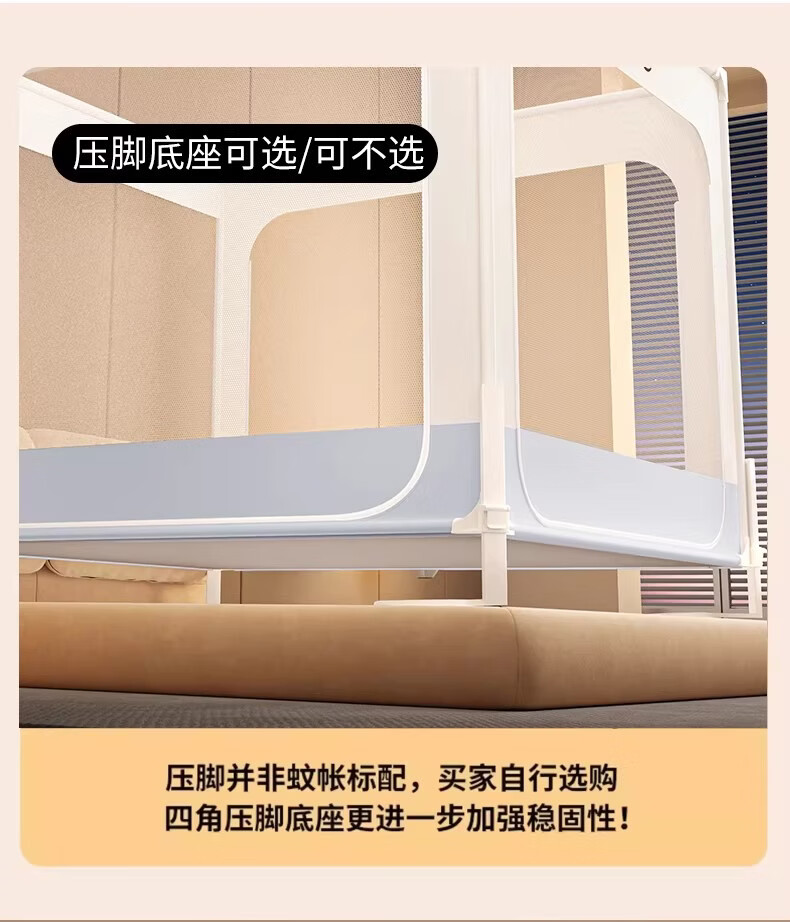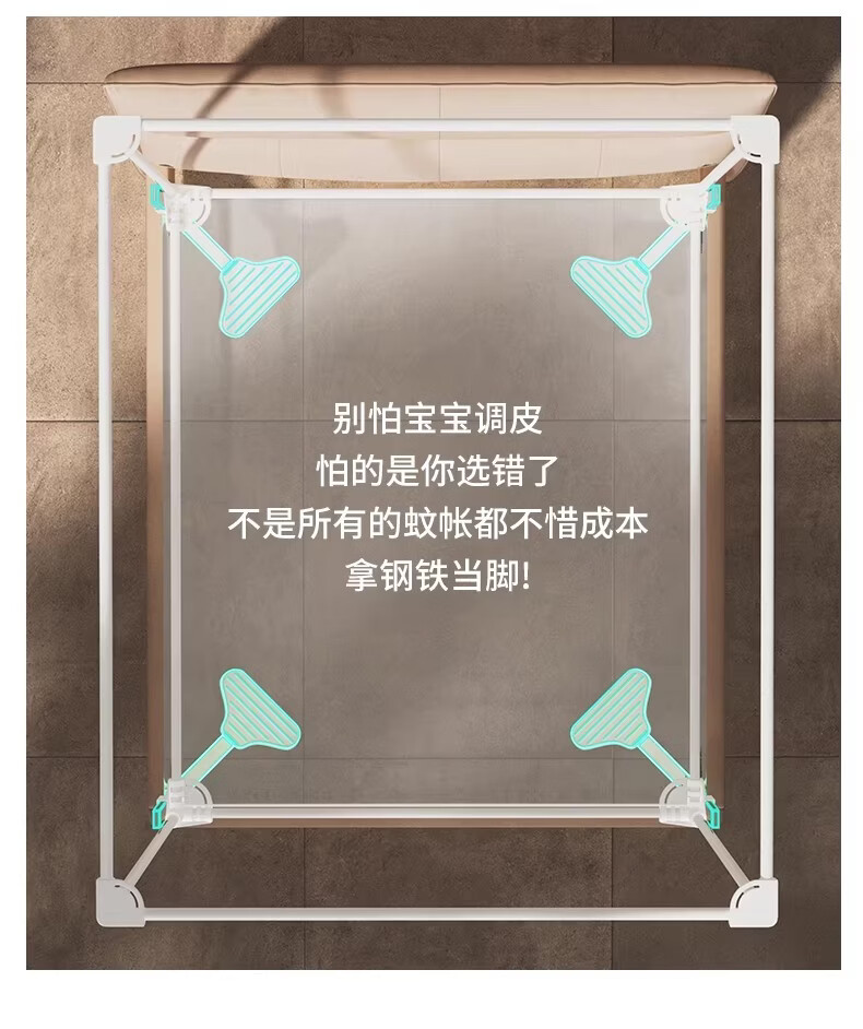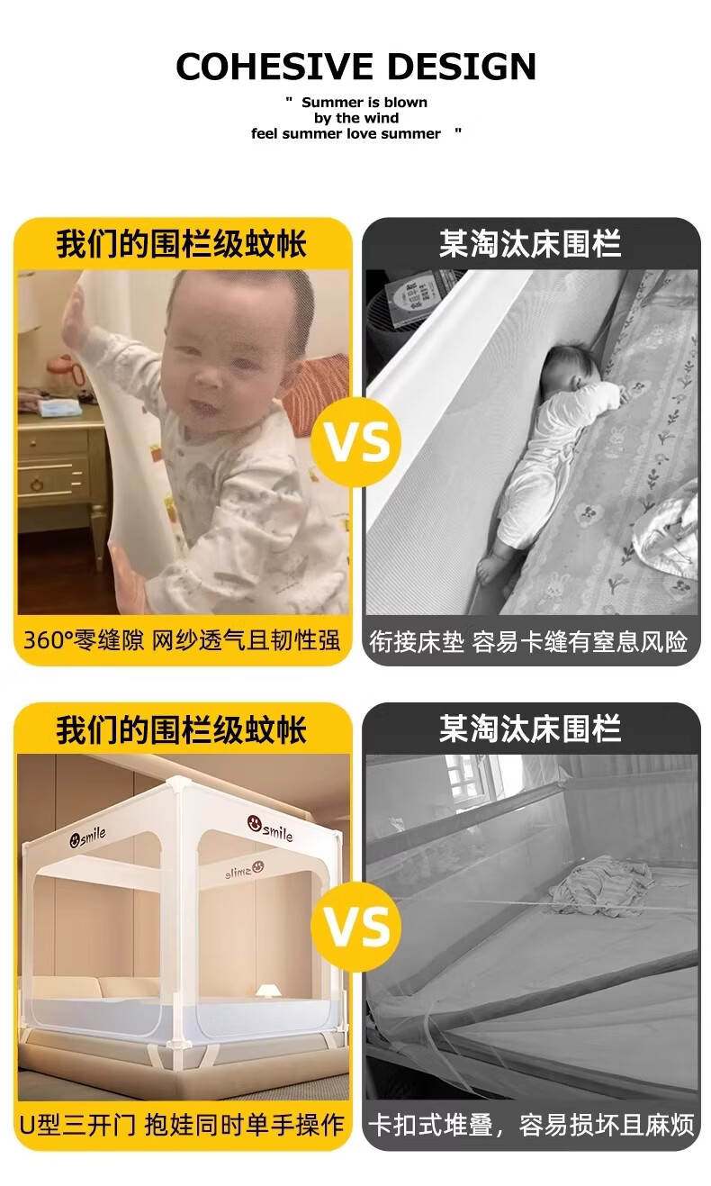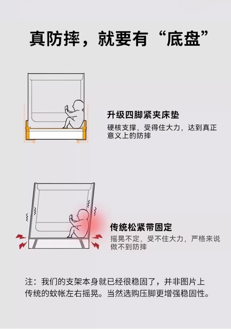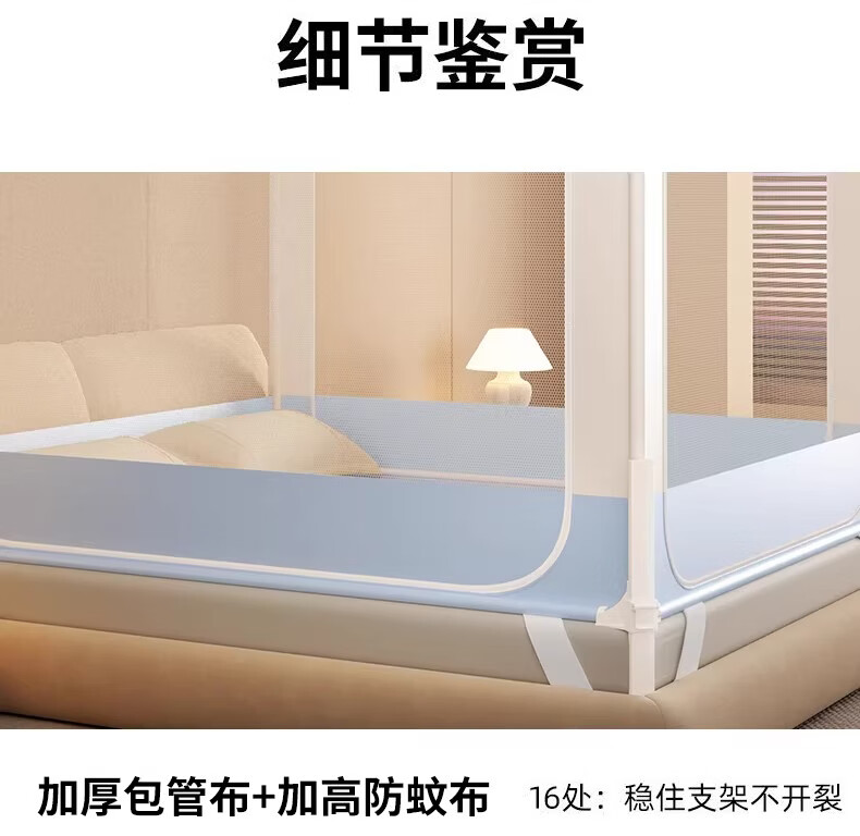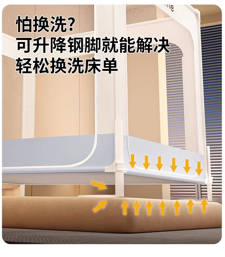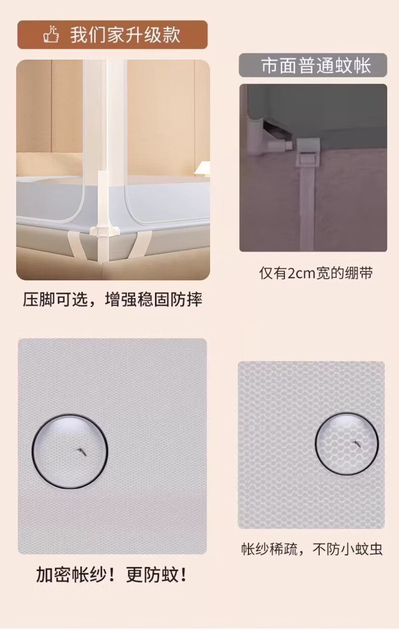 无印良品防摔蚊帐1.8x2米家用一体式免安装床围栏全底三开门蚊帐防摔婴儿 星辰-粉色【升级防摔 全钢脚架固定】 150cm*200cm*170cm 自连接支架