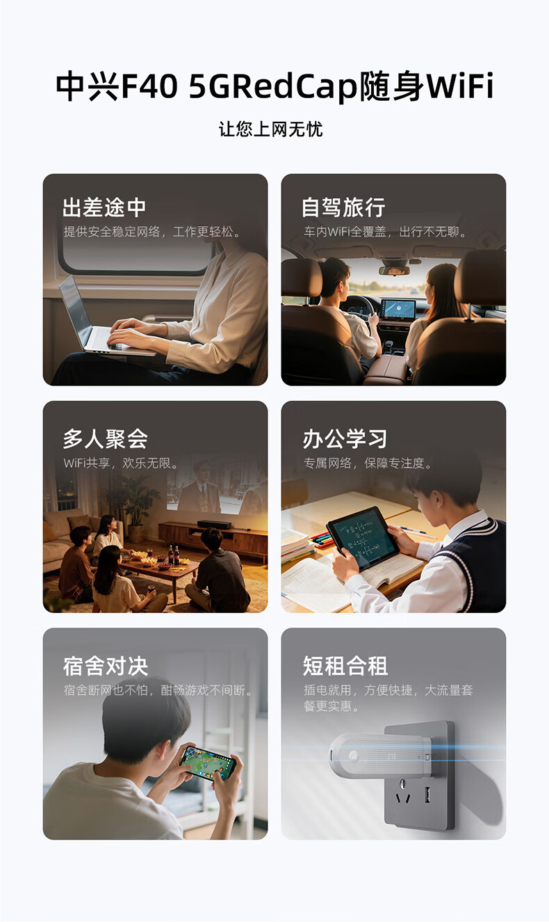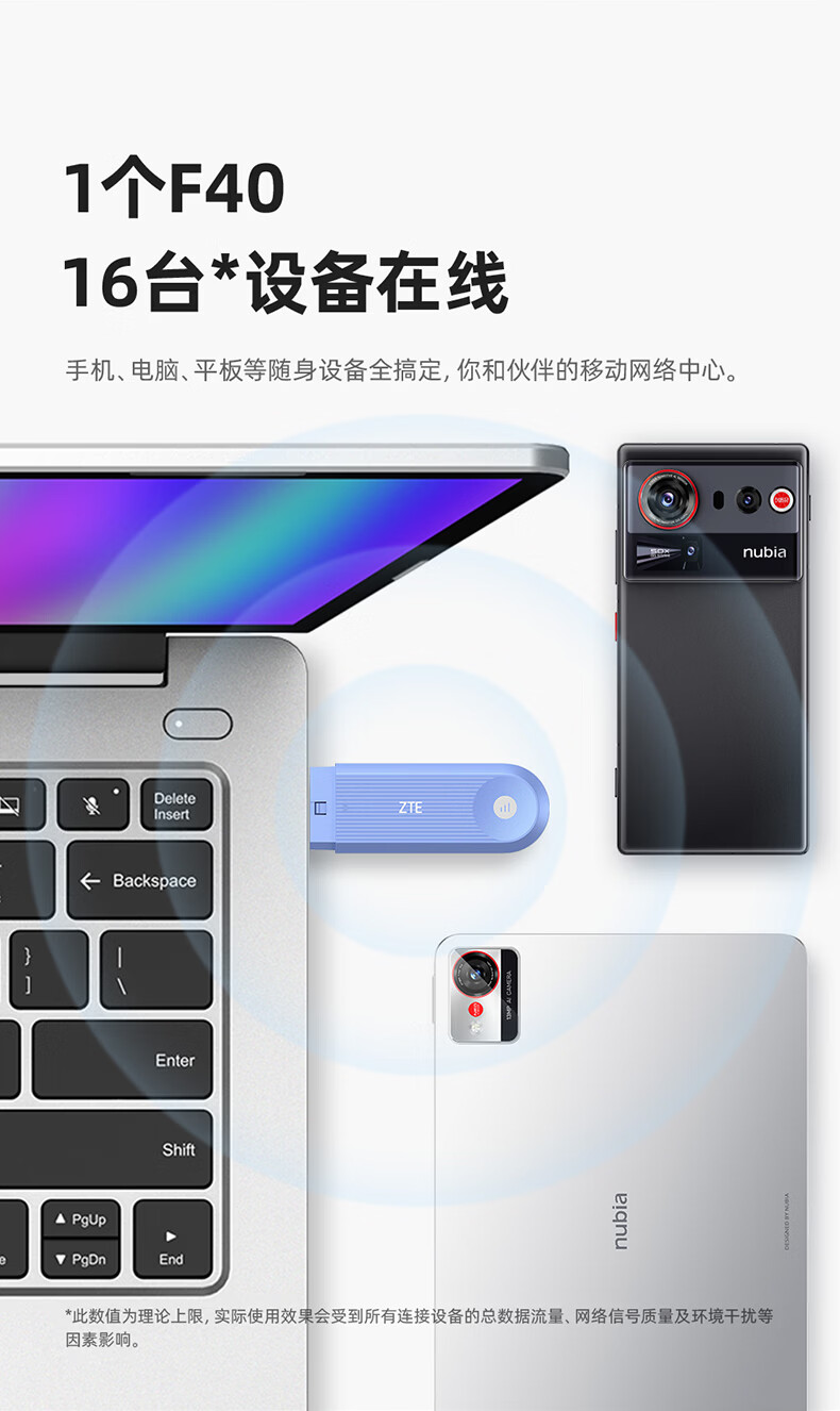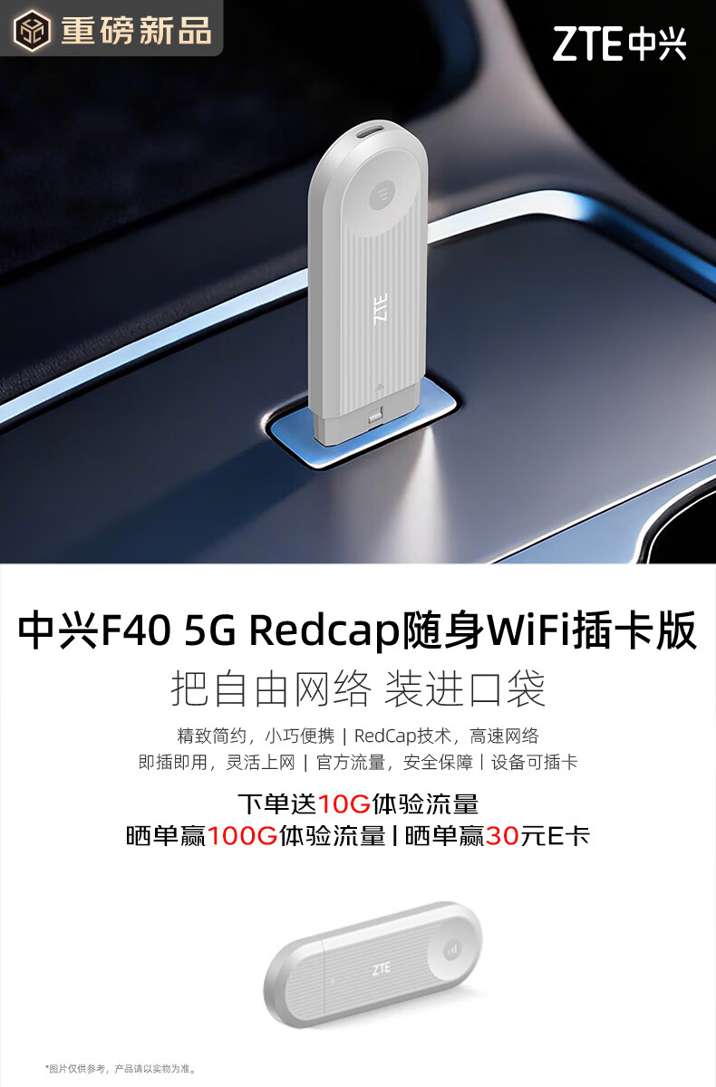中兴(ZTE)F40 5G RedCap随身wifi6可插卡/轻量化5G移动wifi/无线网便携式路由器热点车载笔记本电脑上网流量