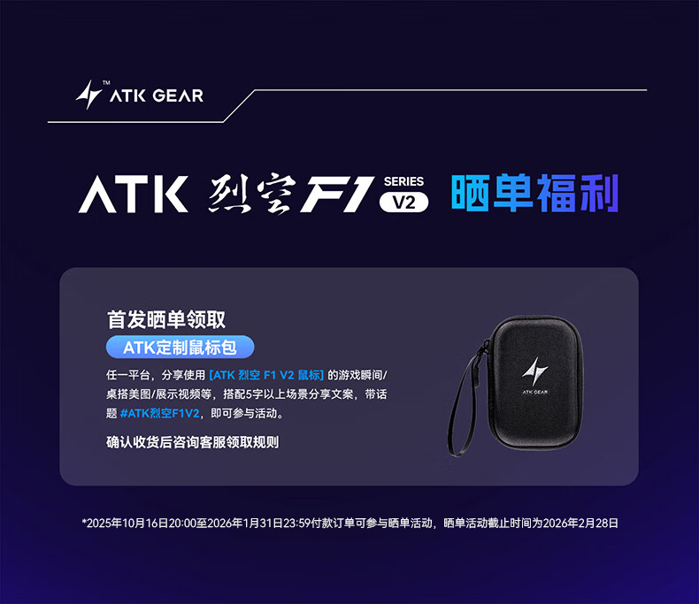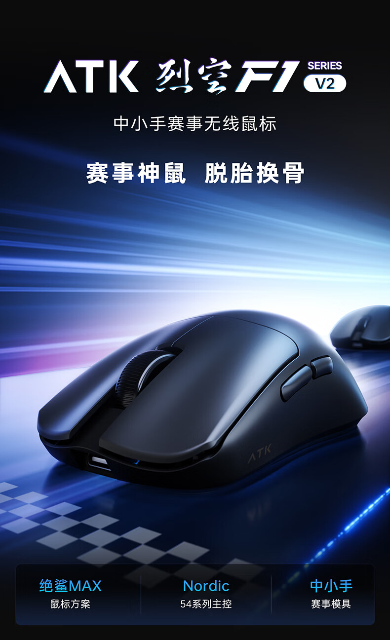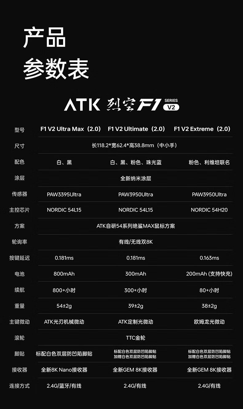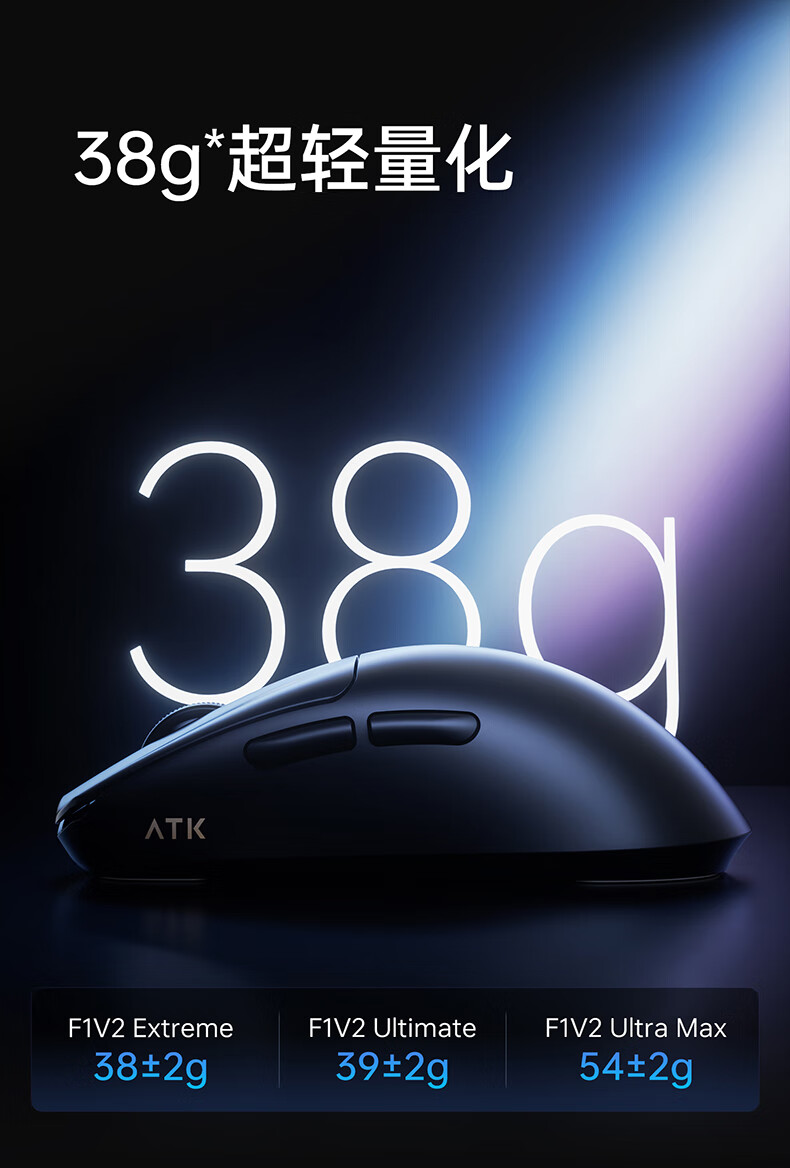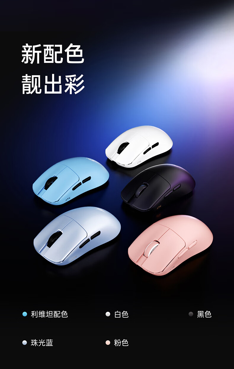 ATK烈空F1V2无线鼠标 有线/无线双模电竞鼠标轻量化人体工学电竞办公游戏鼠标 F1V2大师版2.0粉色