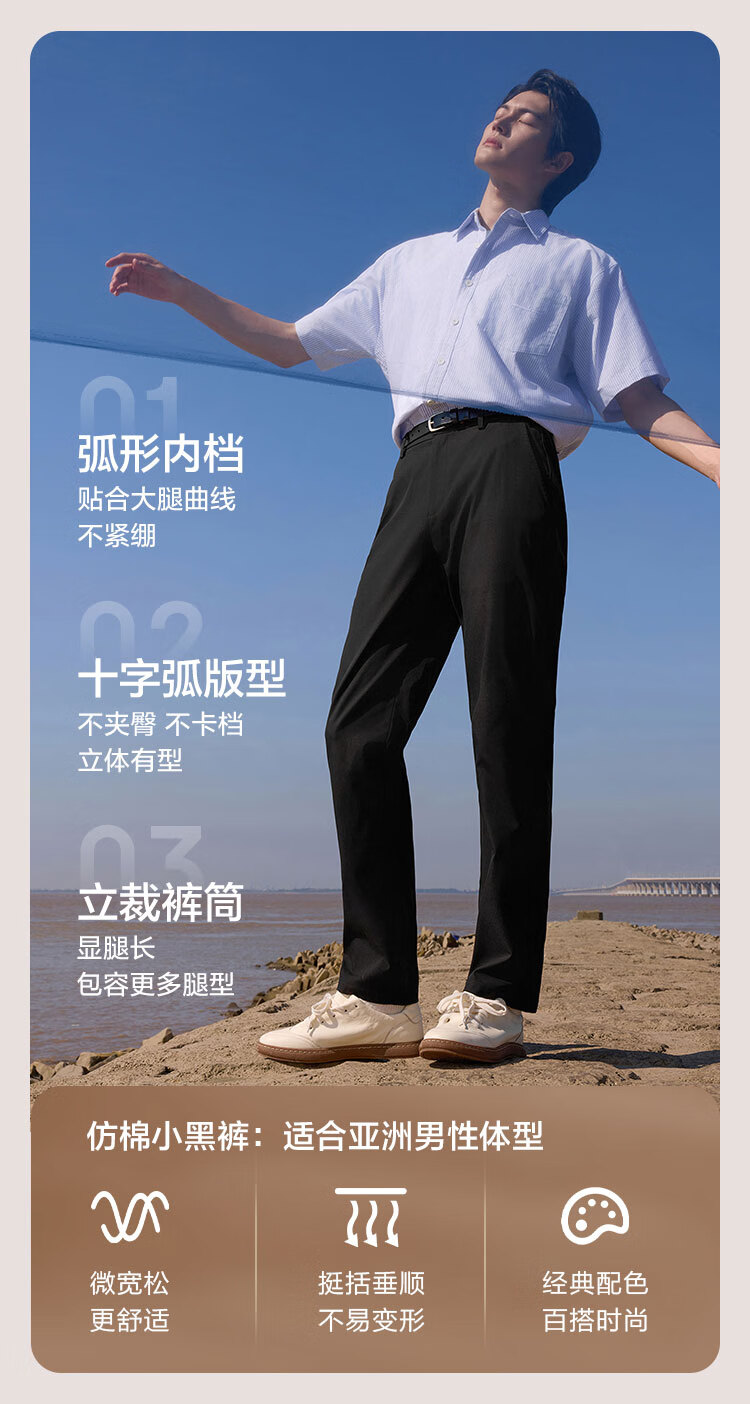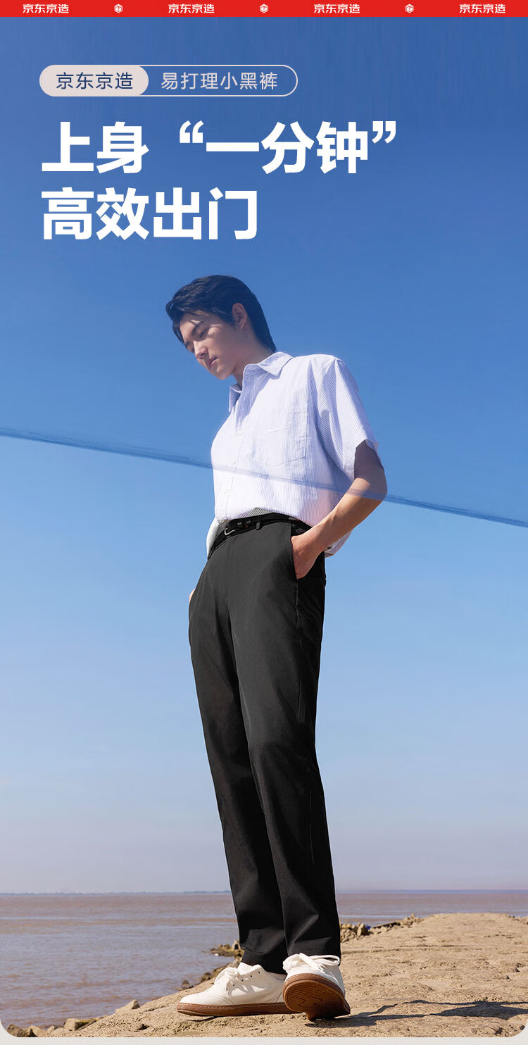 京东京造【舒适高弹】男士休闲裤四季百搭裤子男直筒西裤男裤 黑2.0 2XL