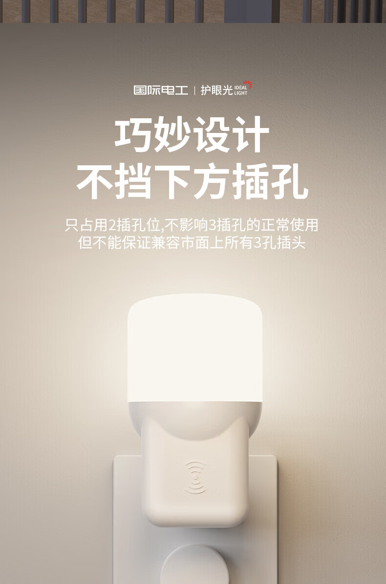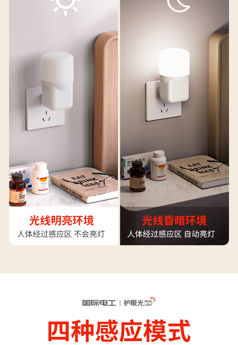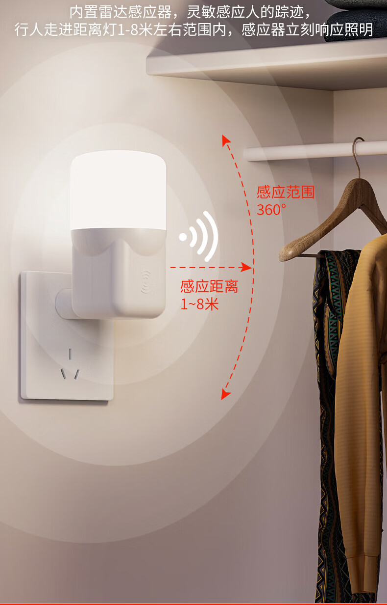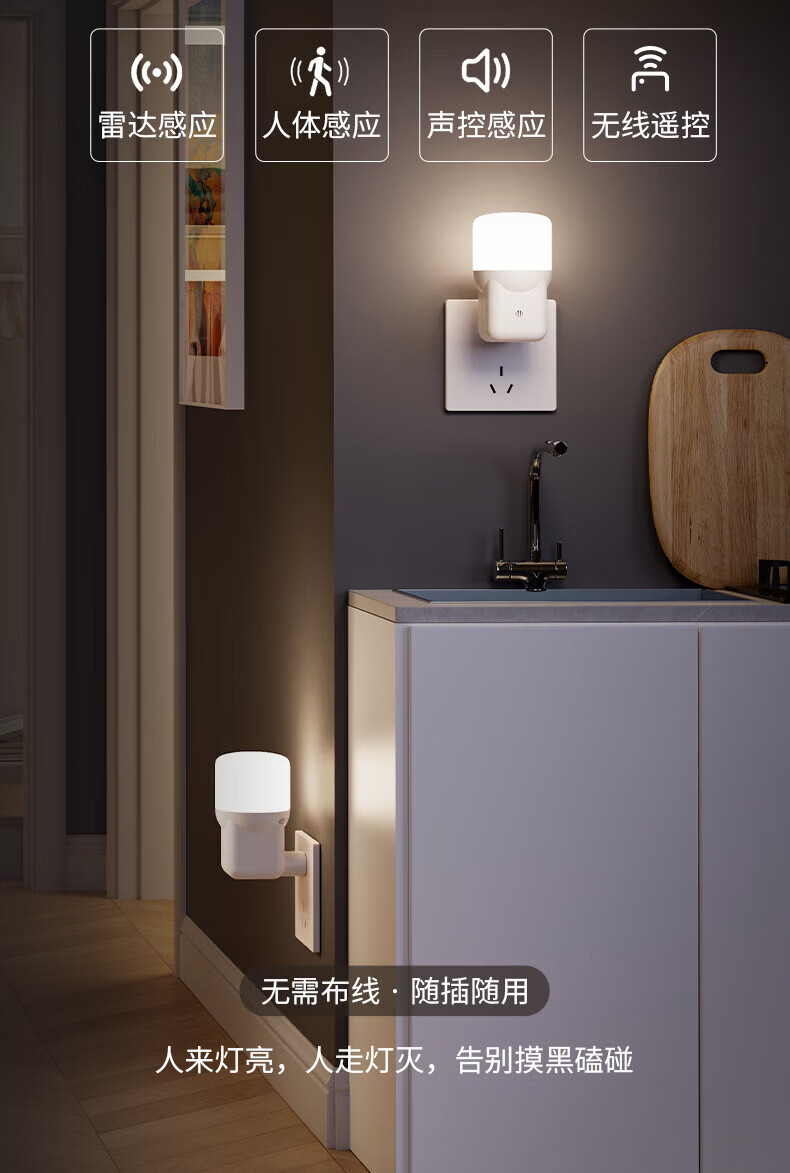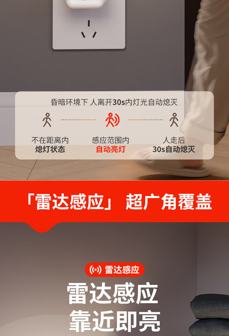 国际电工(FDD)智能人体感应地脚灯卧室睡眠夜间床头灯入户门雷达感应插电小夜灯 雷达感应小夜灯+6W【即插即用】