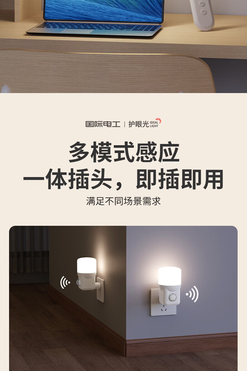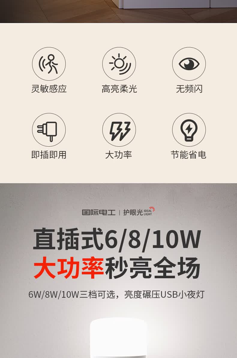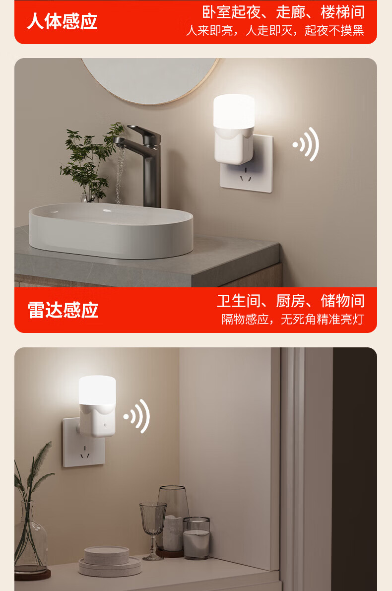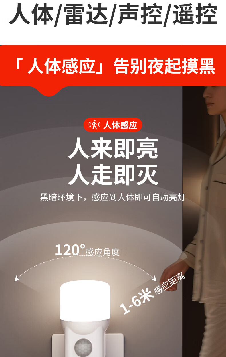 国际电工(FDD)智能人体感应地脚灯卧室睡眠夜间床头灯入户门雷达感应插电小夜灯 雷达感应小夜灯+6W【即插即用】