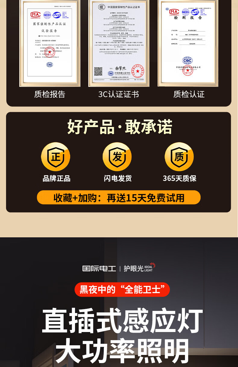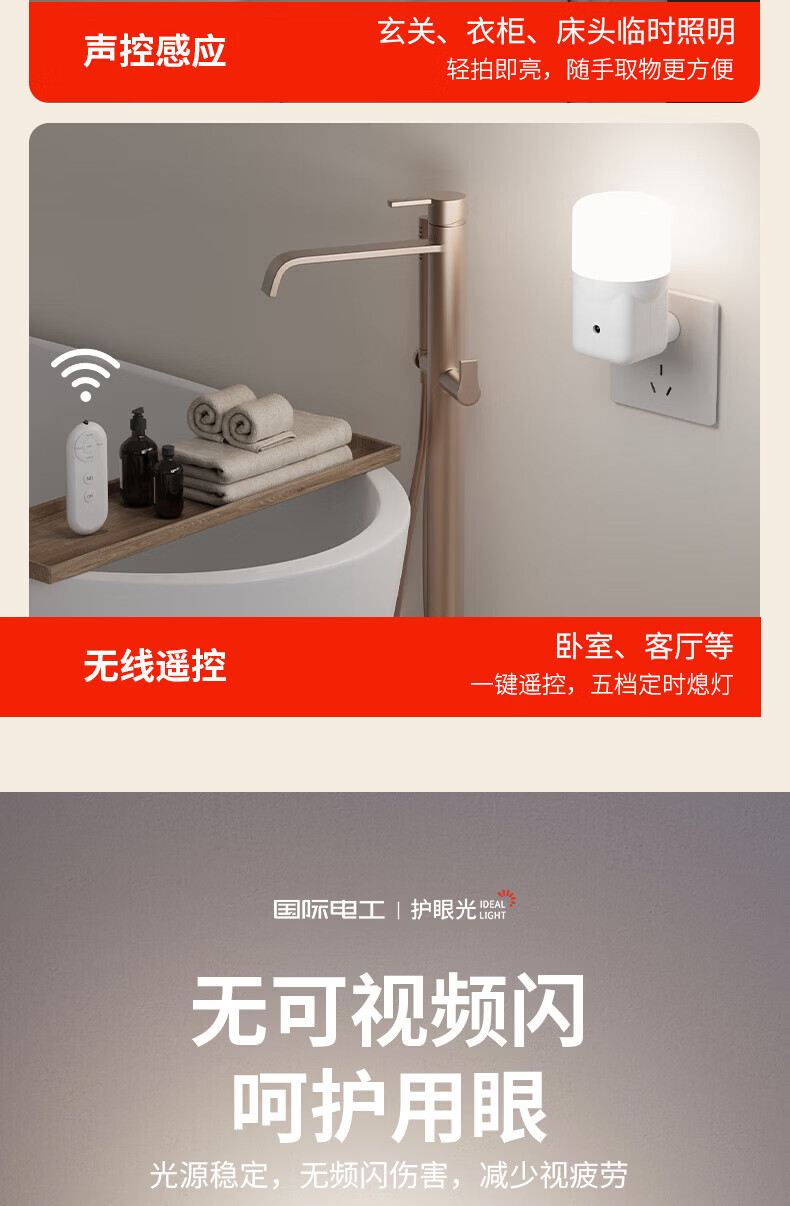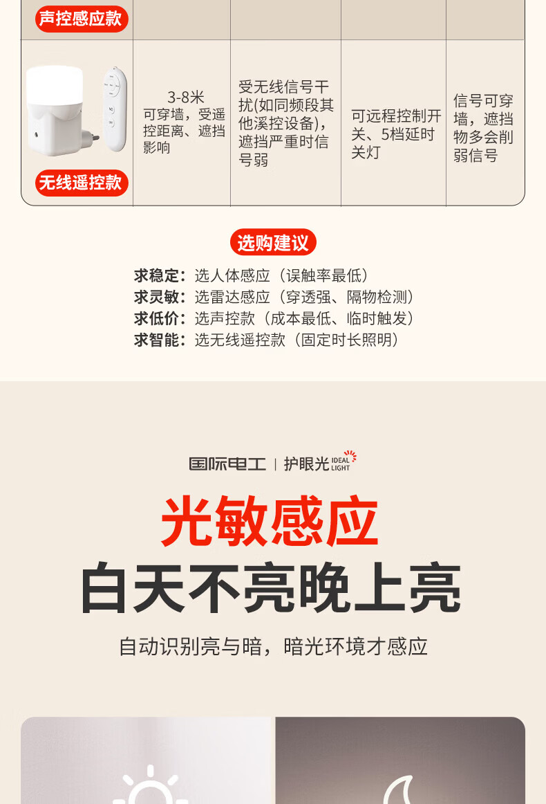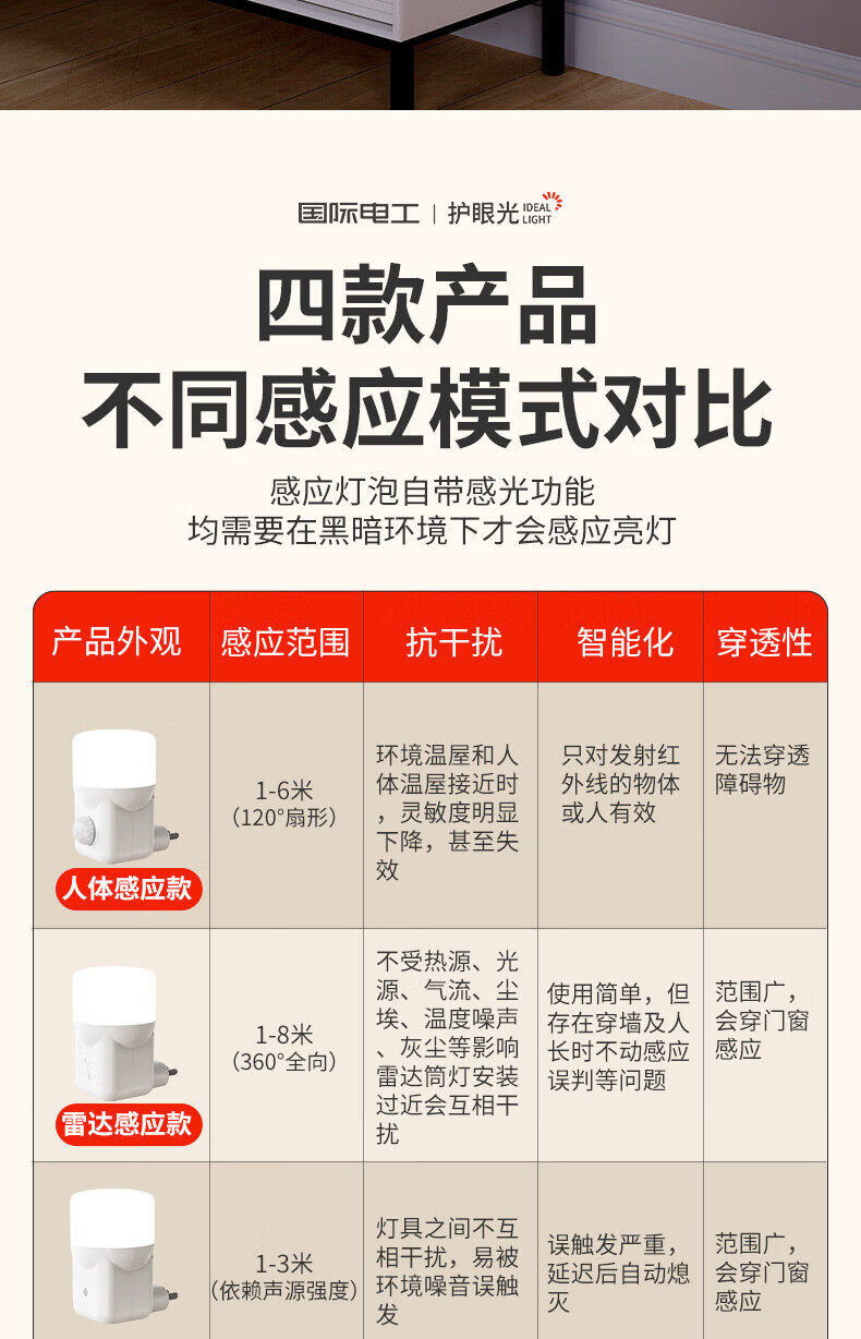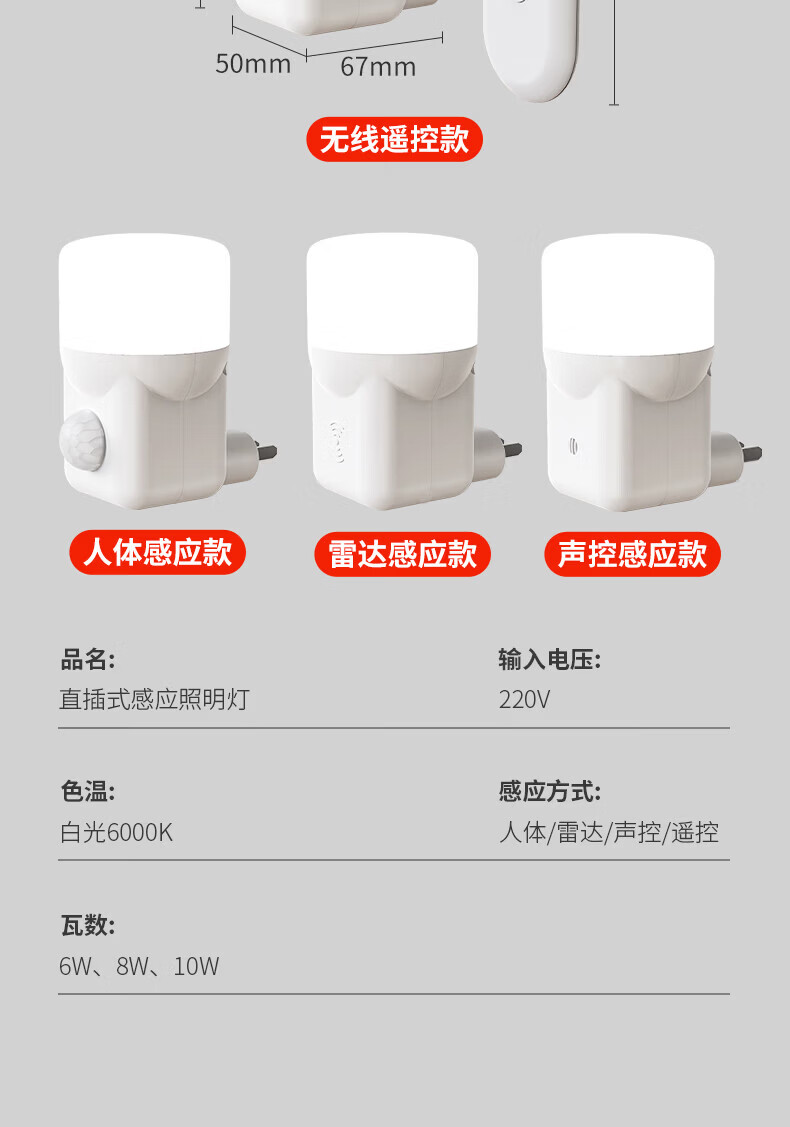 国际电工(FDD)智能人体感应地脚灯卧室睡眠夜间床头灯入户门雷达感应插电小夜灯 雷达感应小夜灯+6W【即插即用】