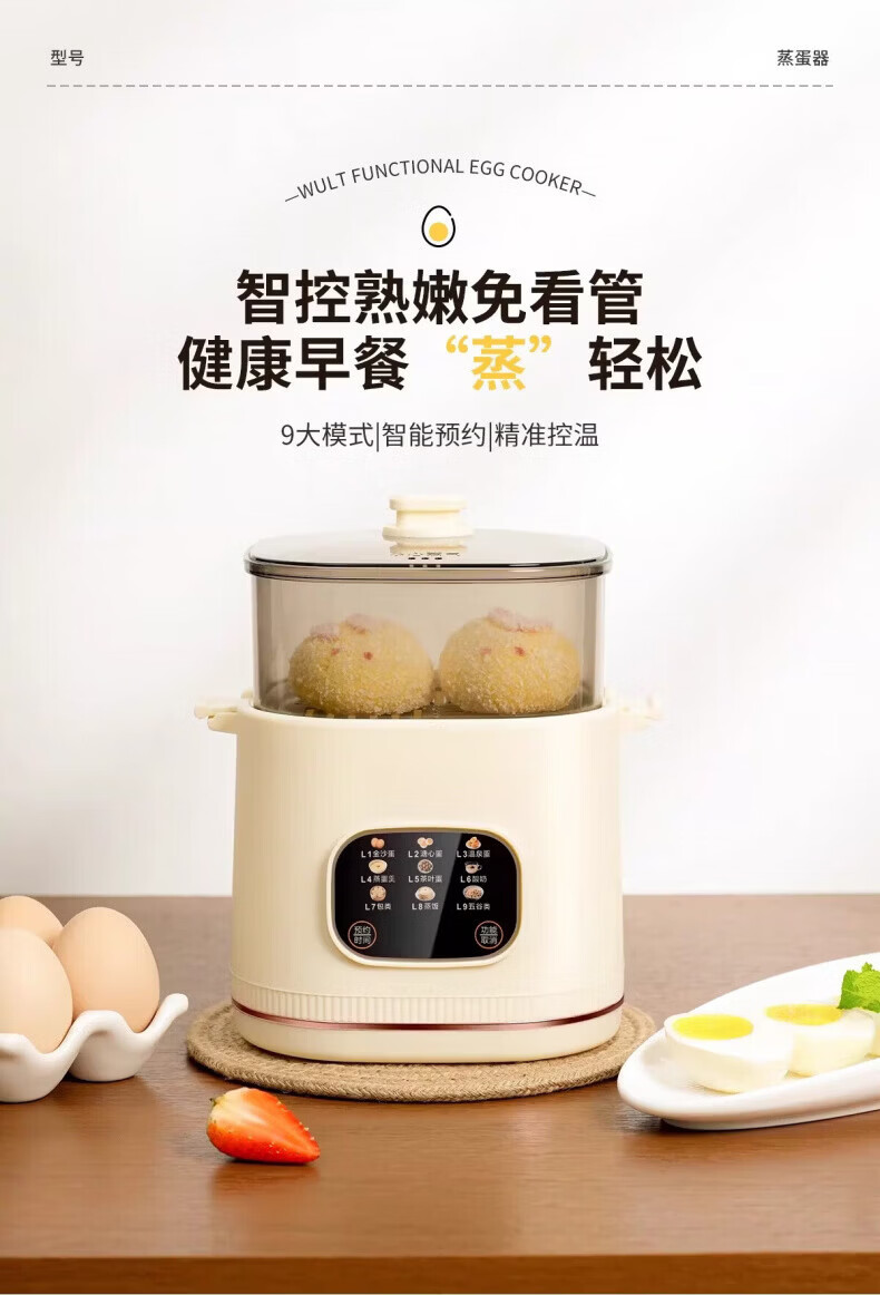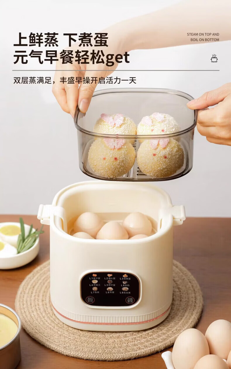 RASW德国煮蛋器蒸锅一体早餐机蒸蛋器家用小型煮蛋神器智能自动断电定时预约多功能早餐机溏心蛋保温 双层 【尊享款】赠不锈钢蒸蛋架和蒸蛋盘