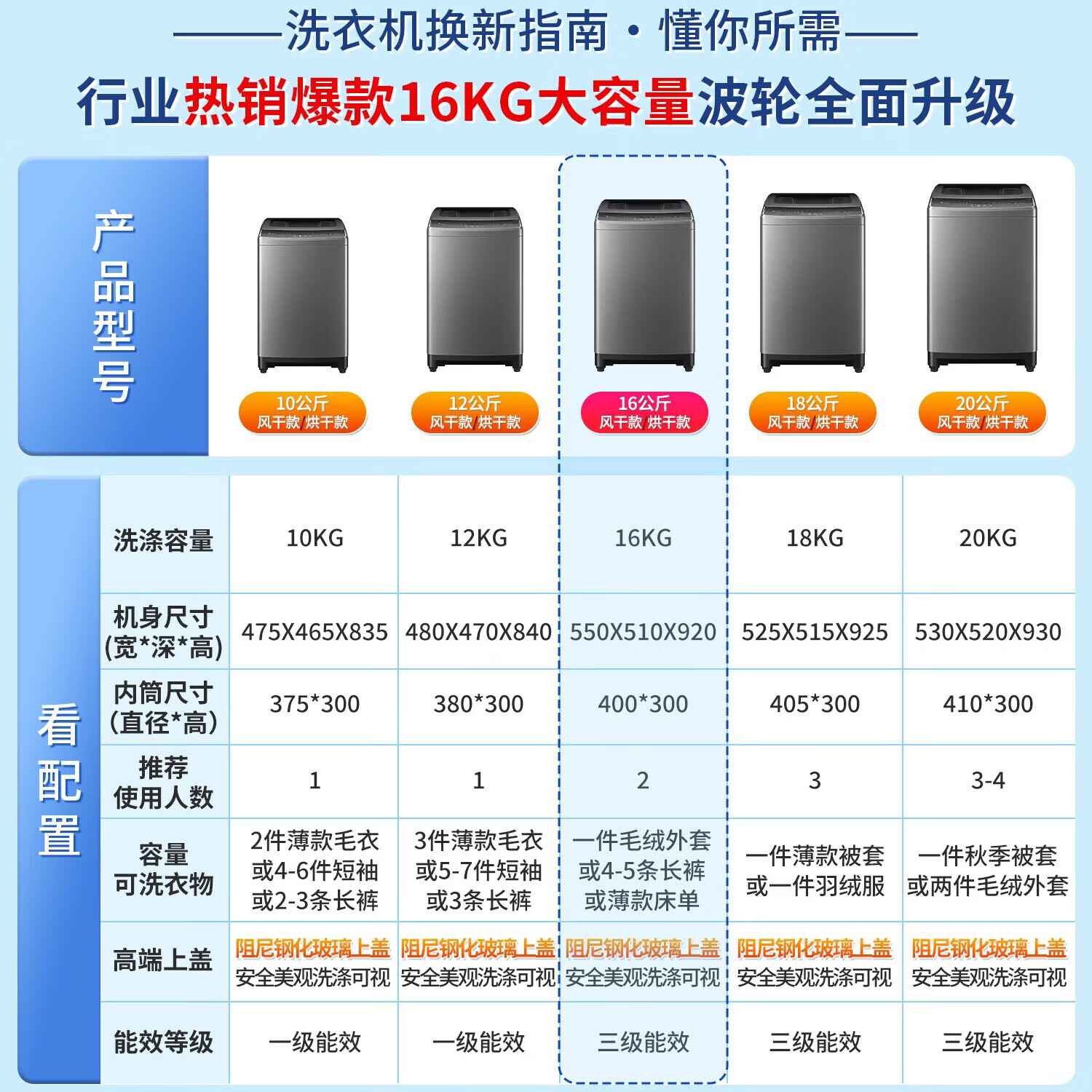 Heiai洗衣机全自动一级能效家商两用双蓝光波轮洗护防缠绕智能除菌洗脱烘一体机直排式大容量 10KG【双蓝光风干+旋涡风暴洗+防缠绕内桶】 波轮