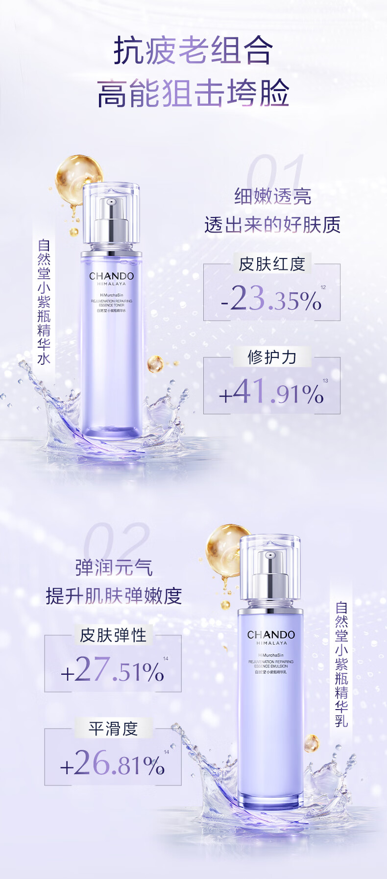 自然堂【周翊然同款】小紫瓶水乳礼盒2件套装抗疲老礼盒生日礼物女