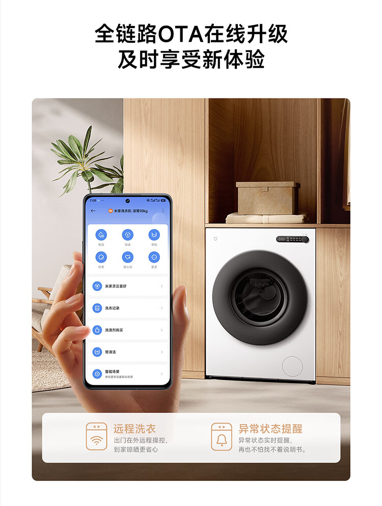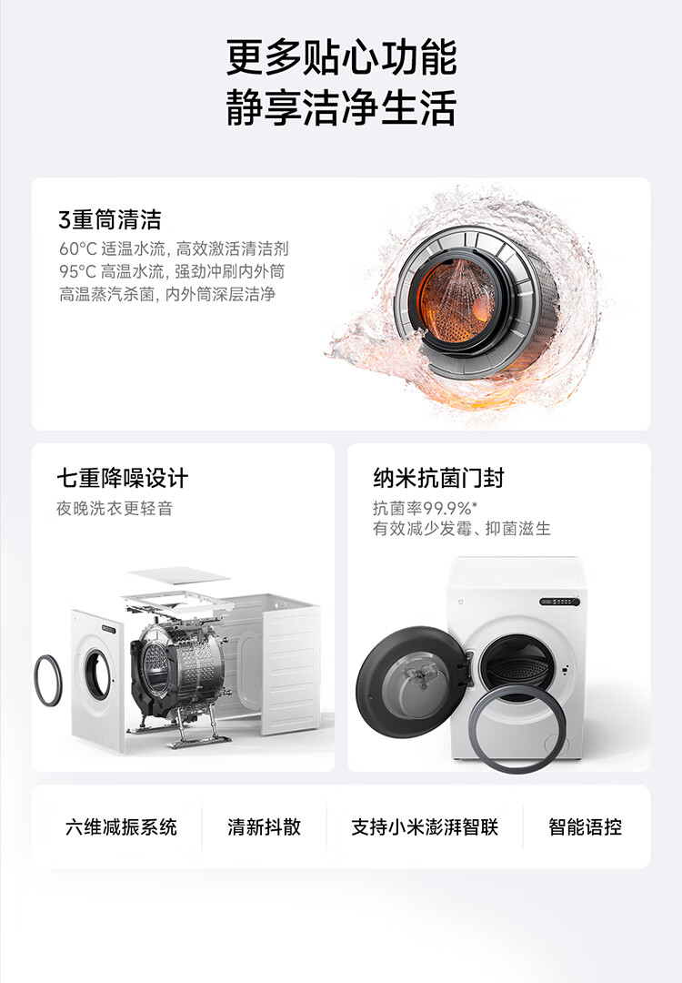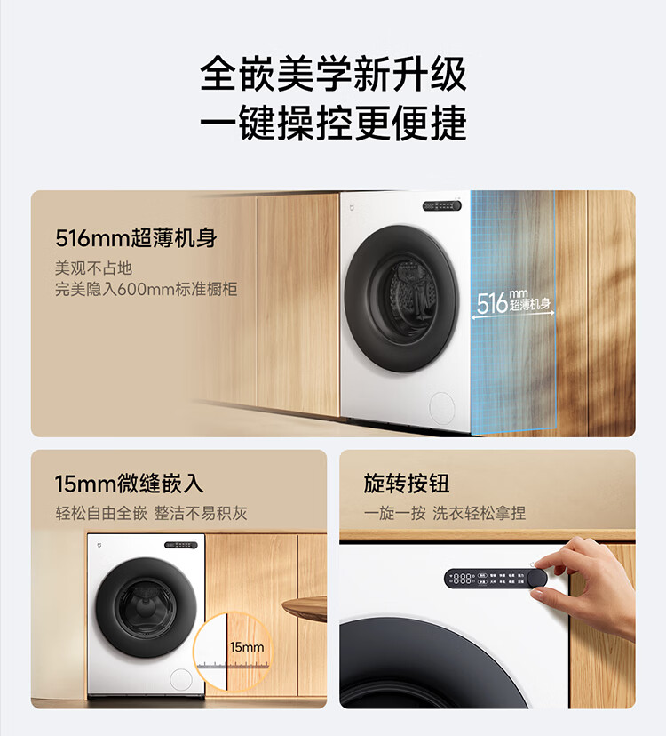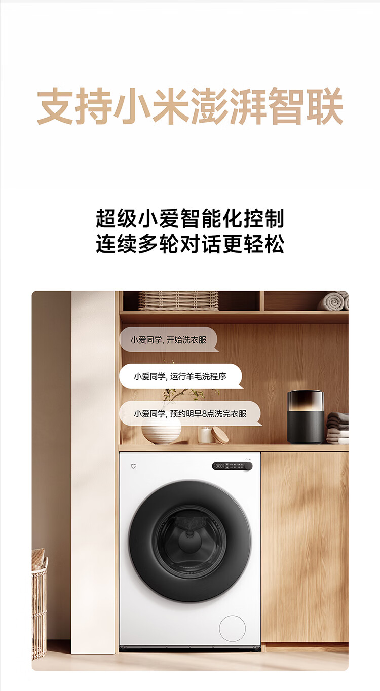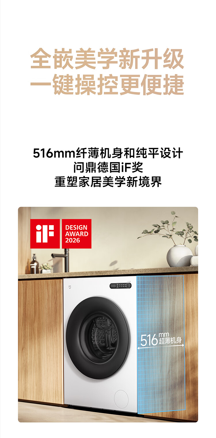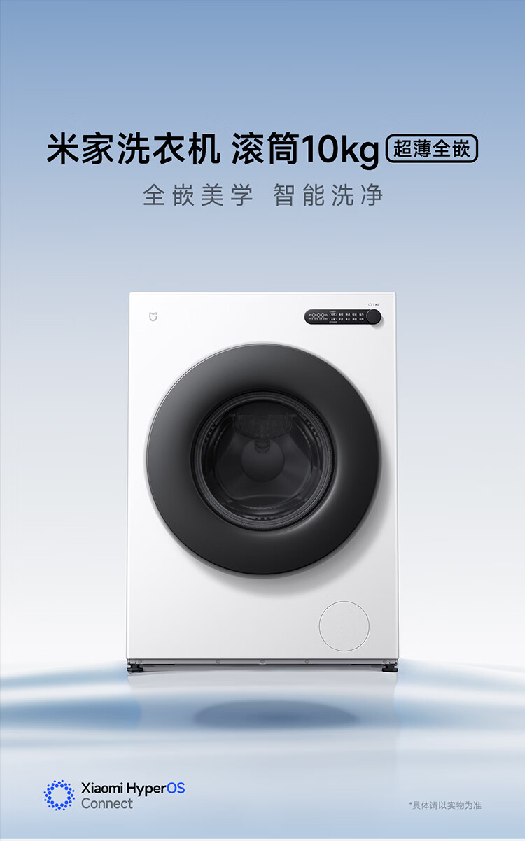 小米(MI)米家10公斤滚筒洗衣机家用大容量 超薄全嵌 525mm大筒径 一级能效1.25高洗净比 全自动白色升级款 米家 滚筒单洗 10kg XQG100MJ204