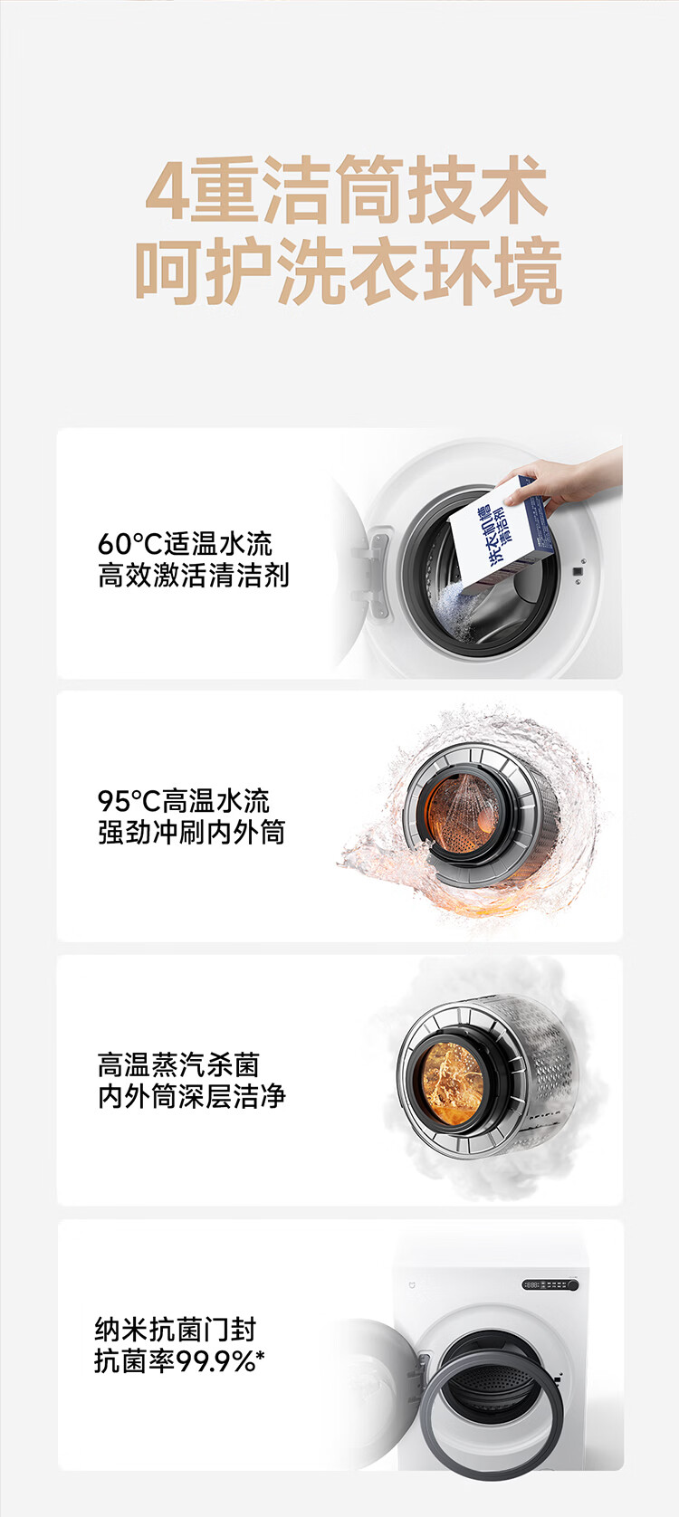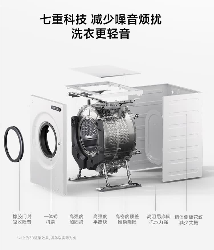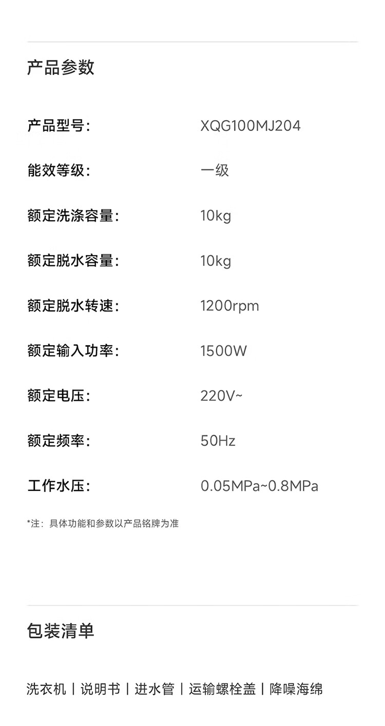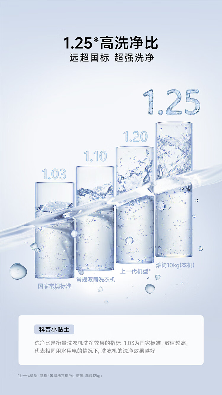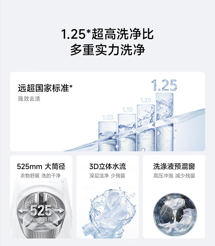 小米(MI)米家10公斤滚筒洗衣机家用大容量 超薄全嵌 525mm大筒径 一级能效1.25高洗净比 全自动白色升级款 米家 滚筒单洗 10kg XQG100MJ204