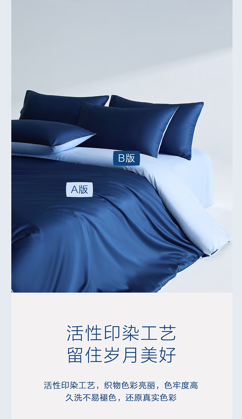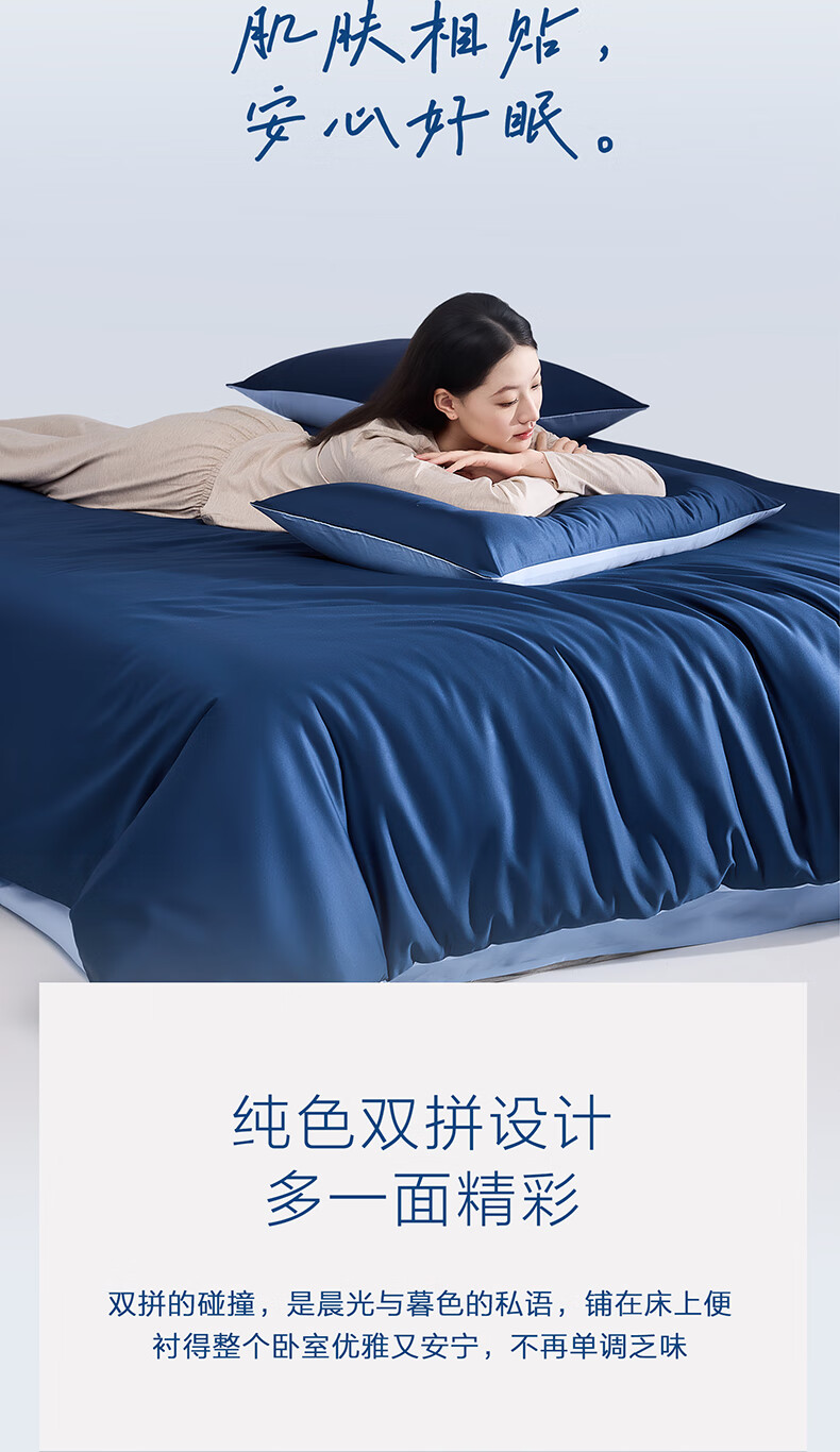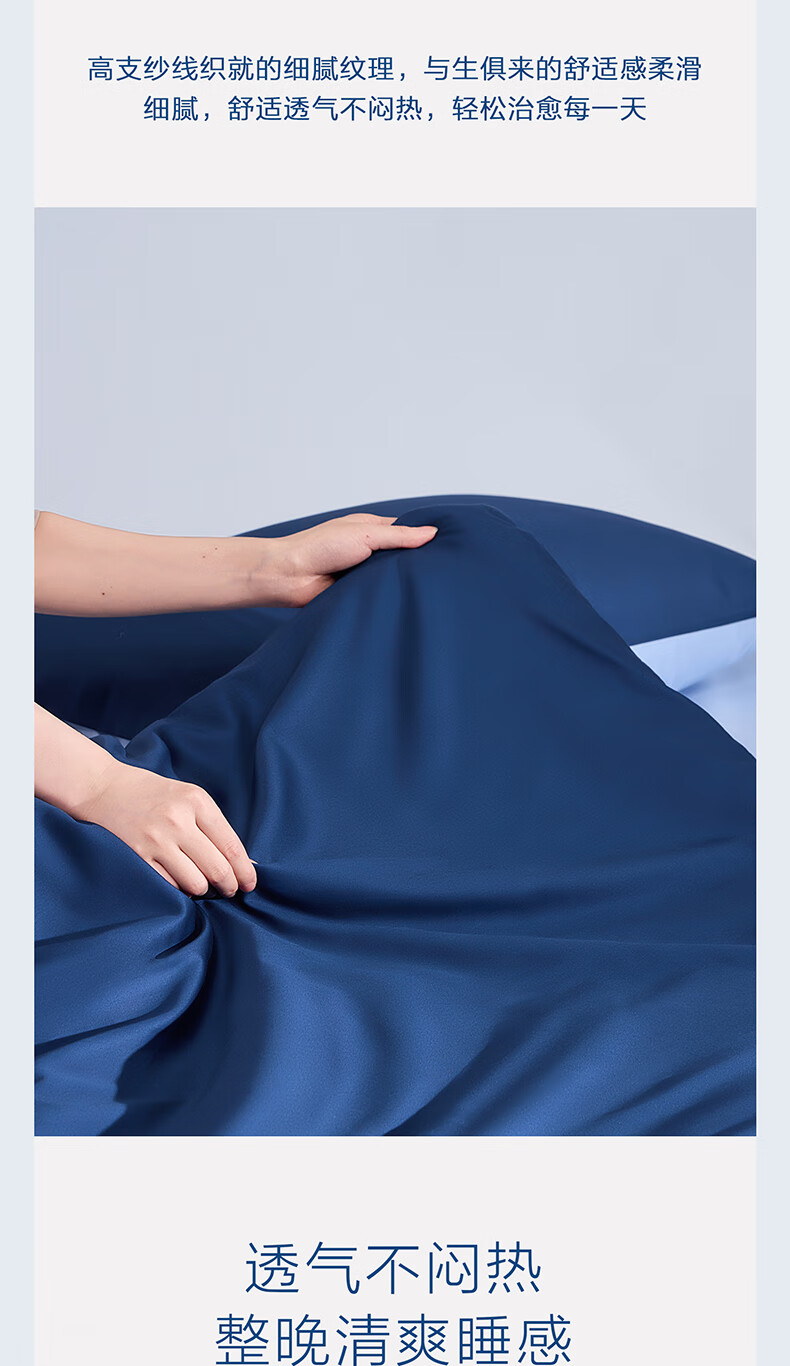 海澜之家(HLA)抗菌冰丝四件套A类裸睡单人夏天凉感轻奢套件床单被罩床上三件套 深蓝【抗菌冰丝 A类裸睡级】 三件套被套150*200 床单款 160*230
