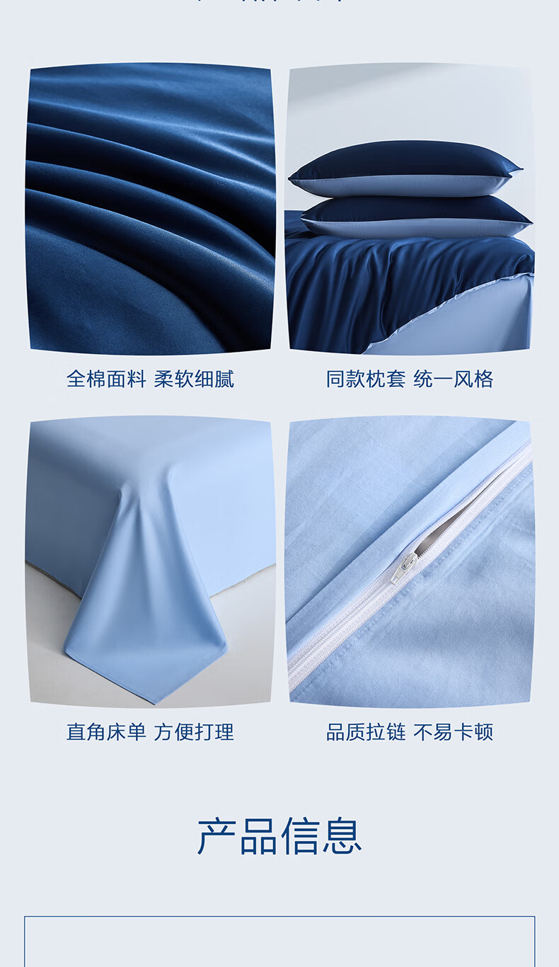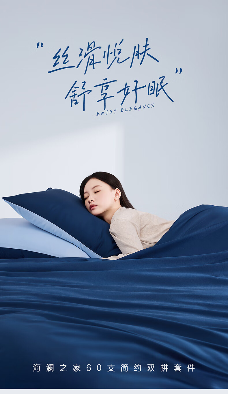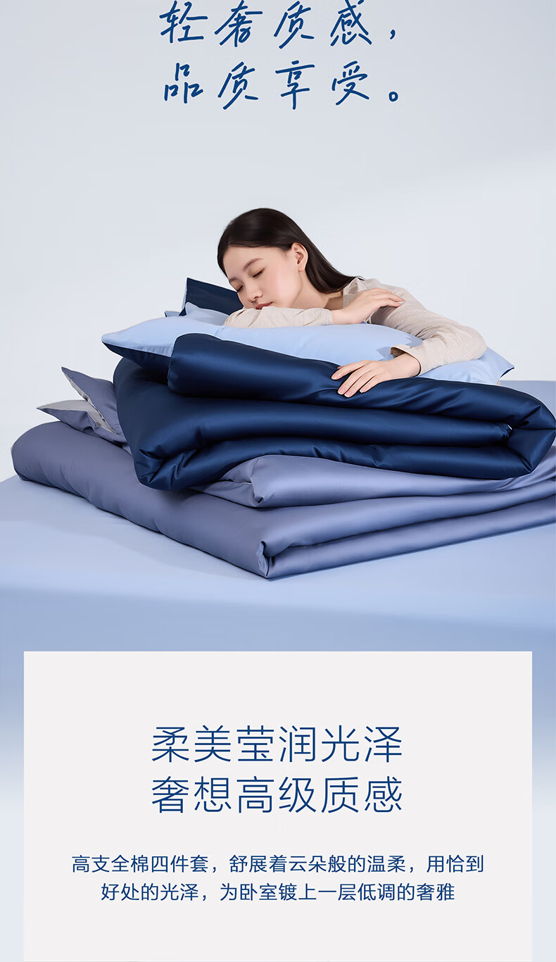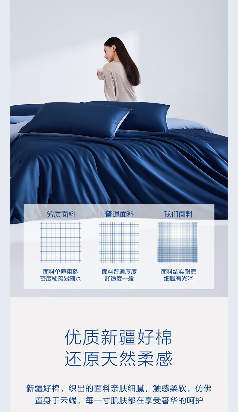海澜之家(HLA)抗菌冰丝四件套A类裸睡单人夏天凉感轻奢套件床单被罩床上三件套 深蓝【抗菌冰丝 A类裸睡级】 三件套被套150*200 床单款 160*230