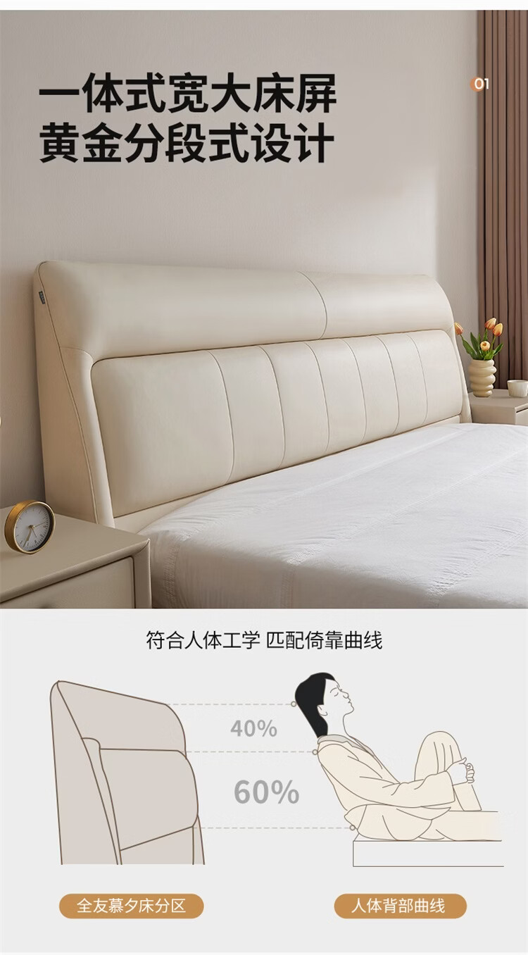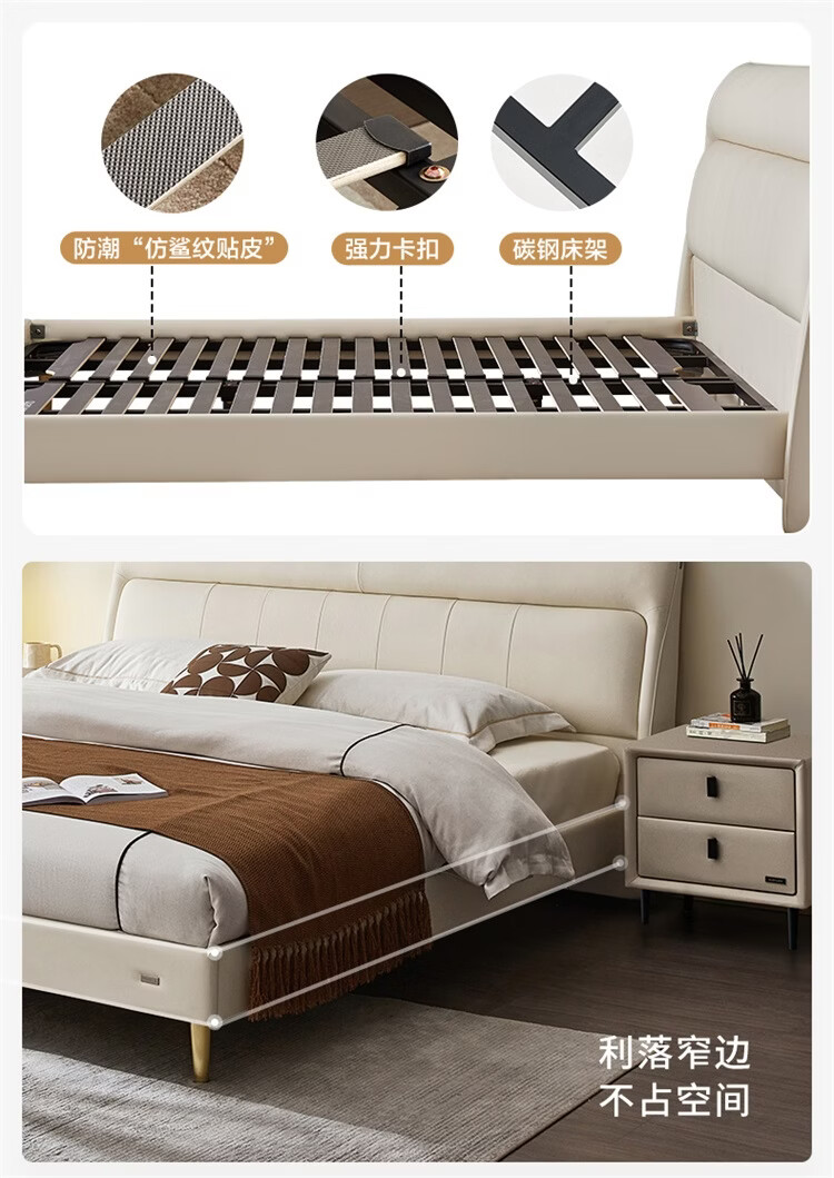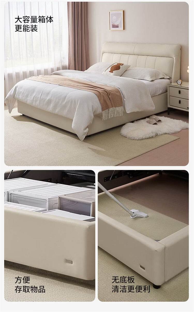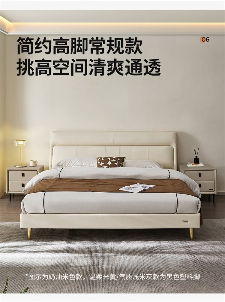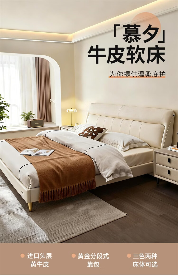 CBD家居现代简约真皮软包床双人主卧大床奶油风婚床头层牛皮甜心悬浮 甜心悬浮-奶油白单床 卷帘排骨架 1500*2000
