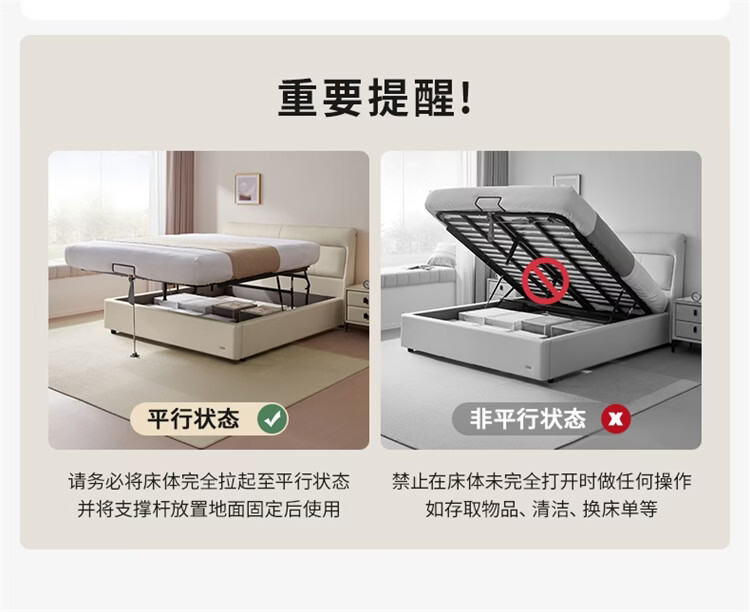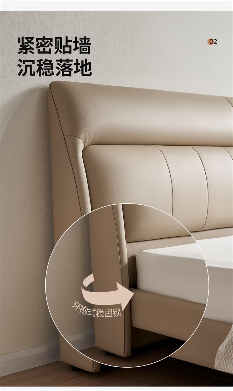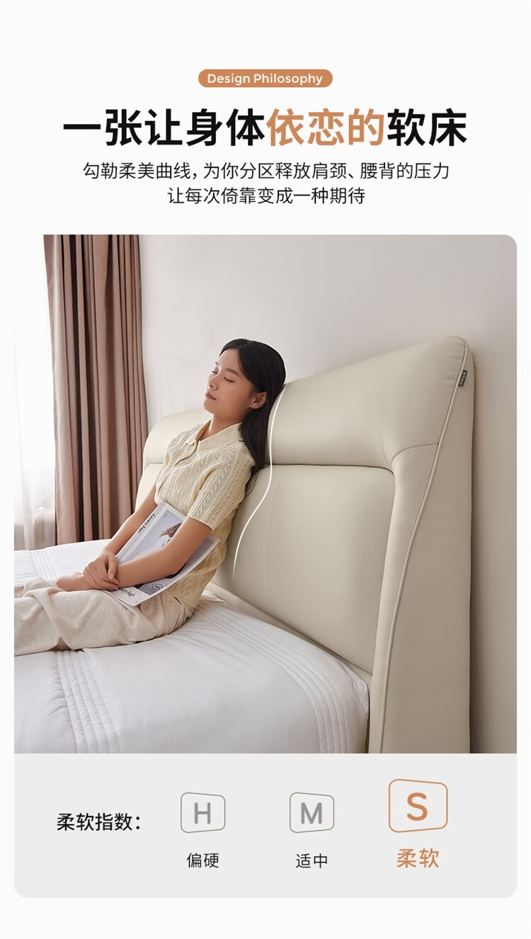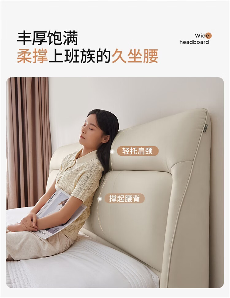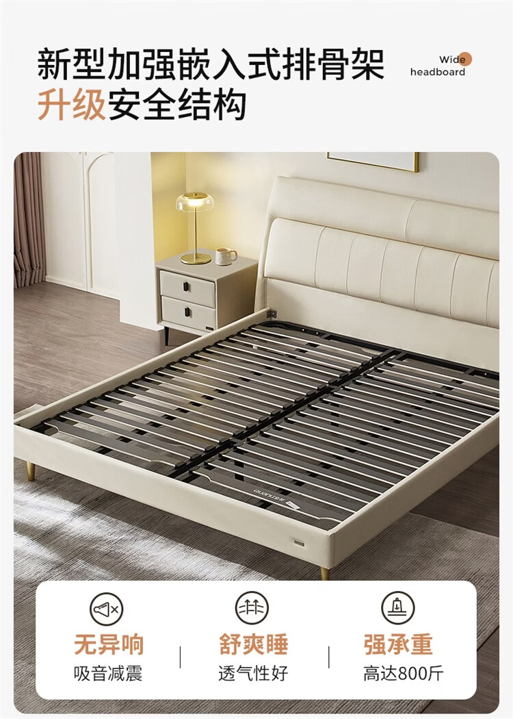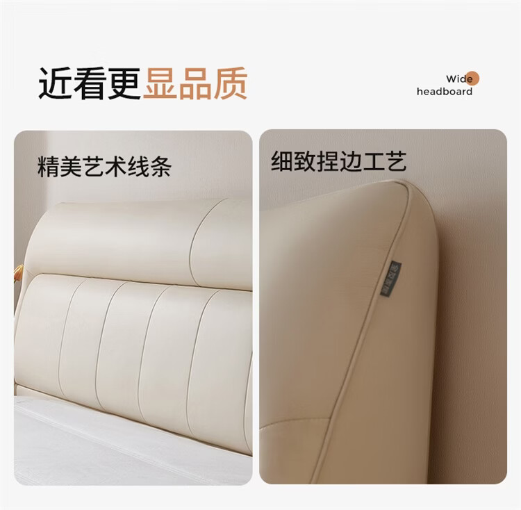 CBD家居现代简约真皮软包床双人主卧大床奶油风婚床头层牛皮甜心悬浮 甜心悬浮-奶油白单床 卷帘排骨架 1500*2000