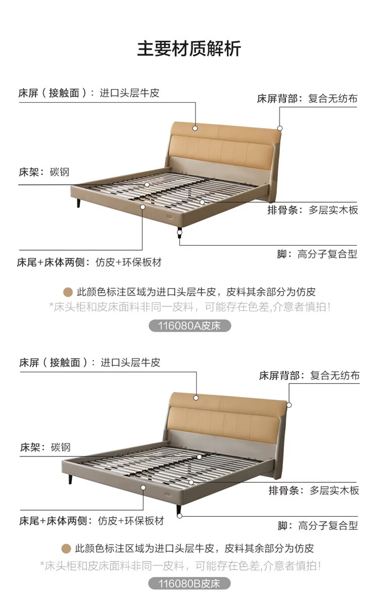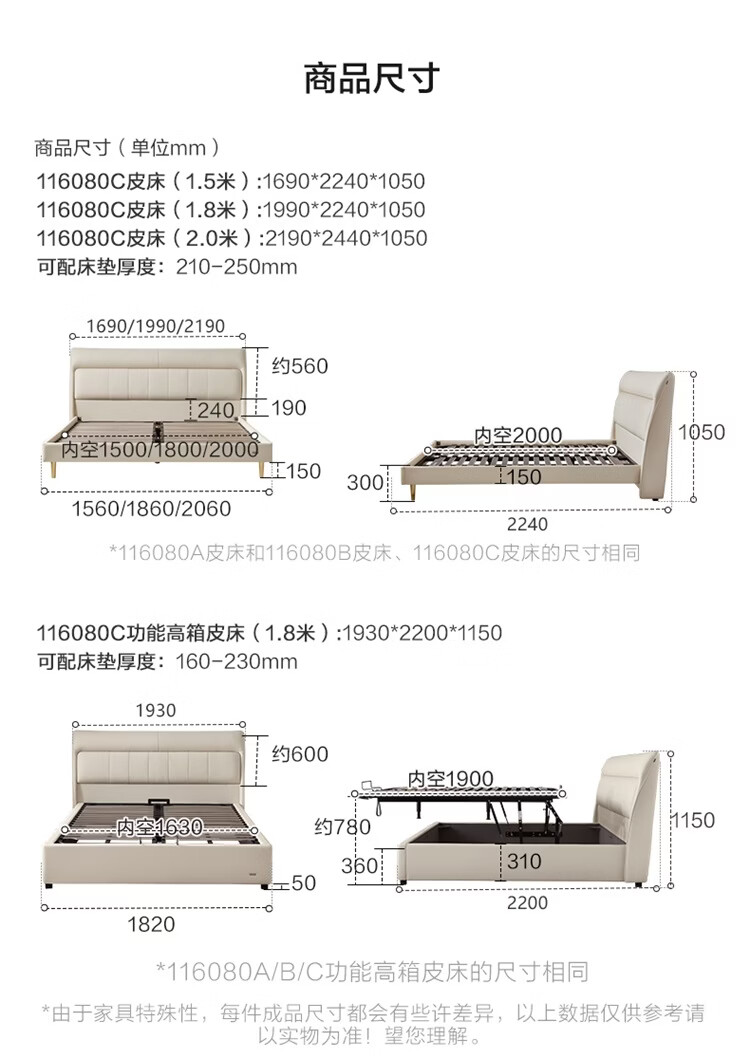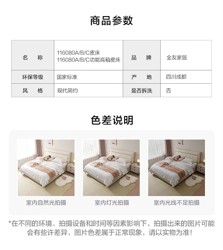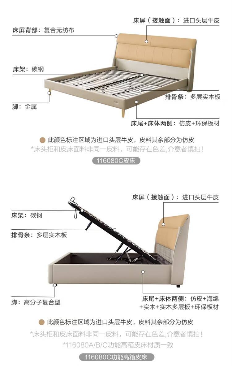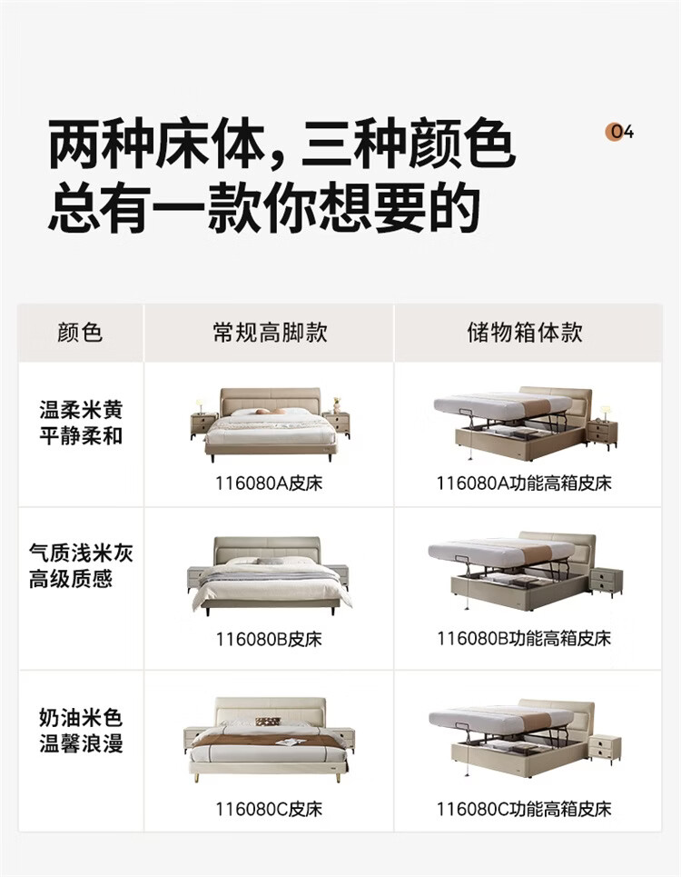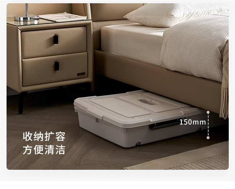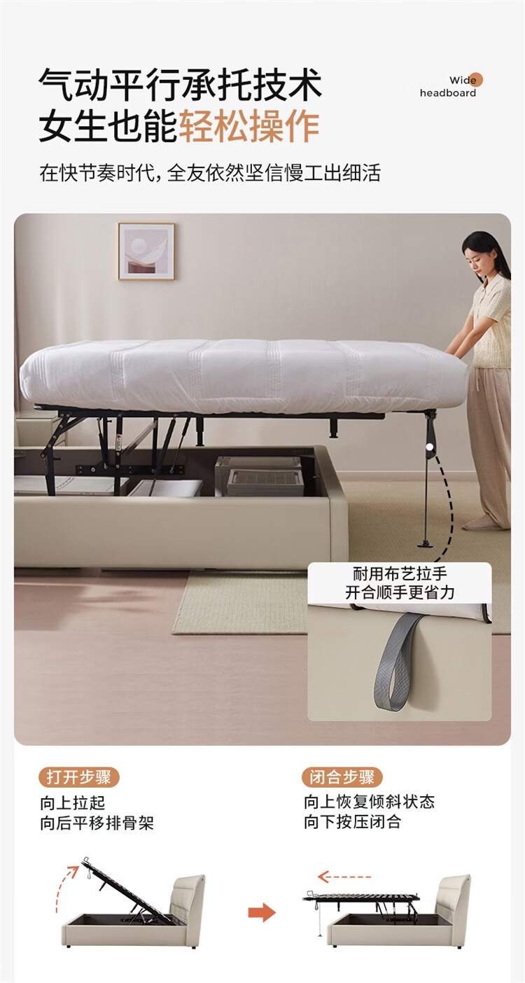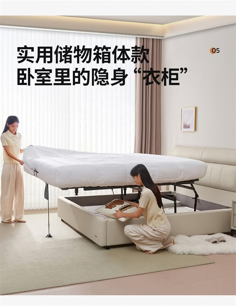 全友(QUANU)家居慕夕真皮储物床主卧室头层牛皮双人大床储物落地床含床垫组合 【高脚款 | 米白】皮床+【乳胶紫罗兰护背系统】床垫 1.8米x2米