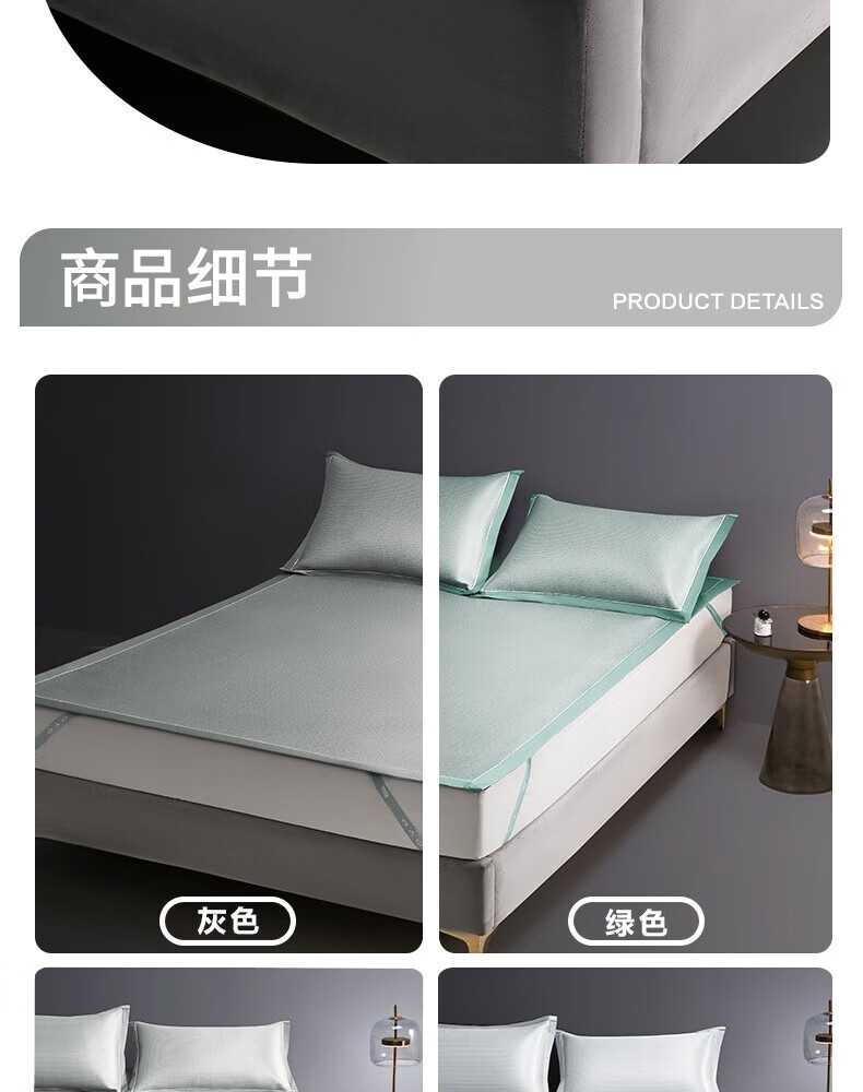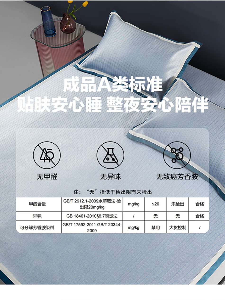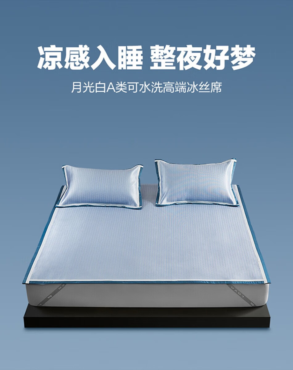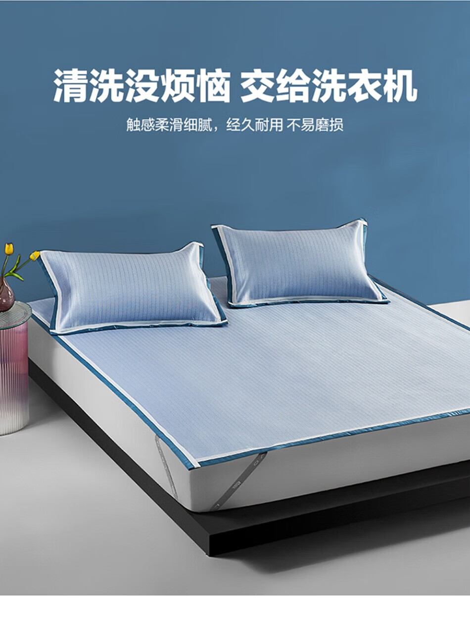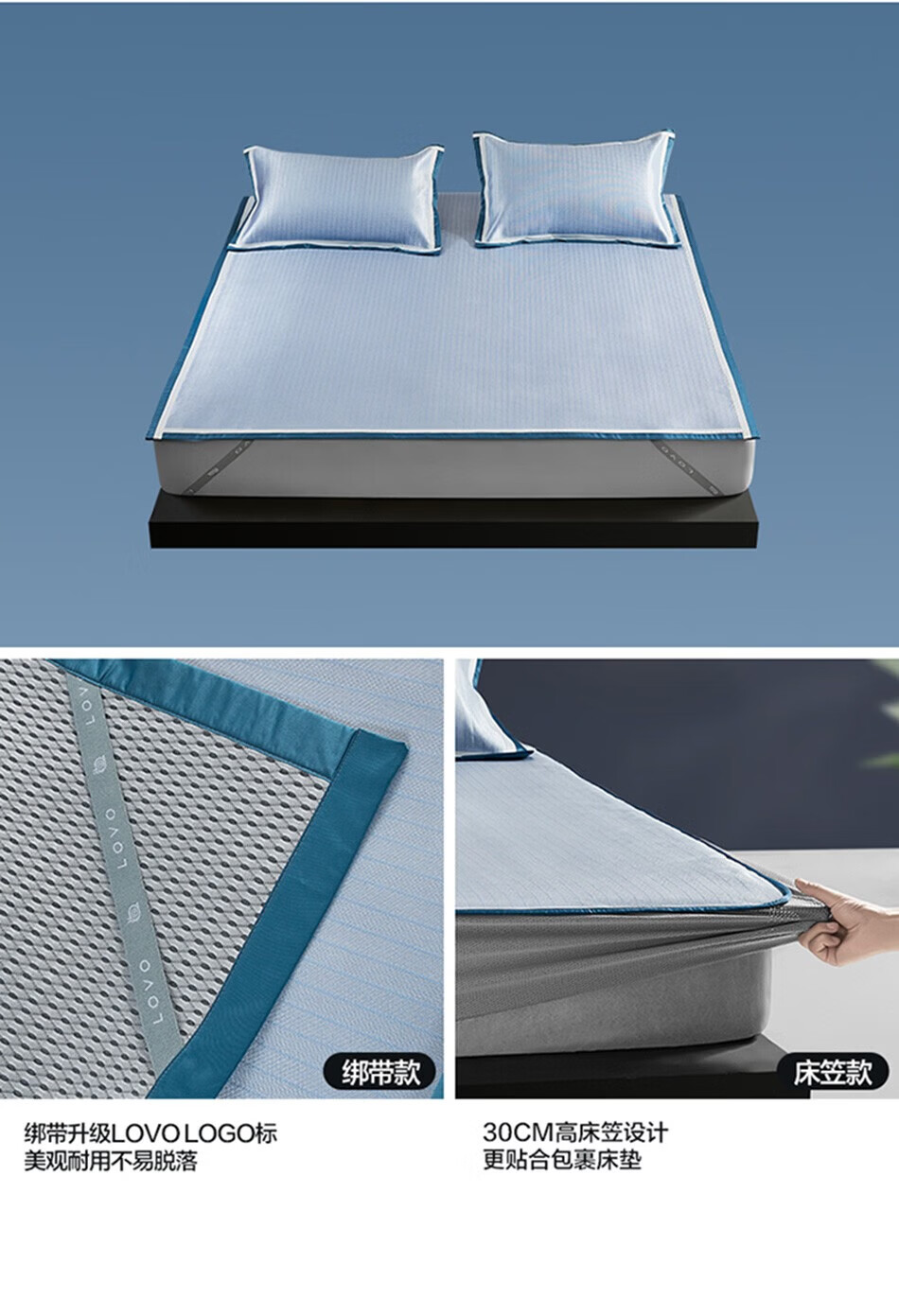 LOVO罗莱生活旗下品牌 A类可水洗凉席空调冰丝席可折叠高碳光软席子 【A类可水洗凉感席】绿-床笠款 两件套 120cm*200cm