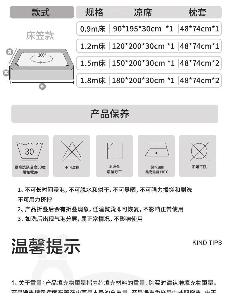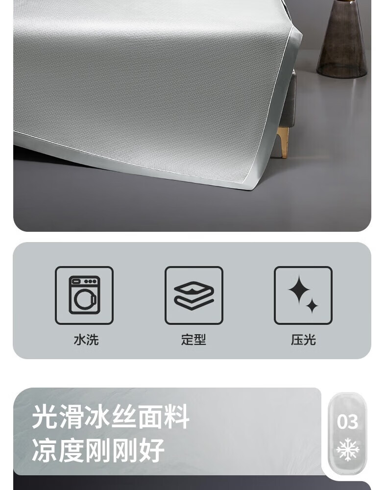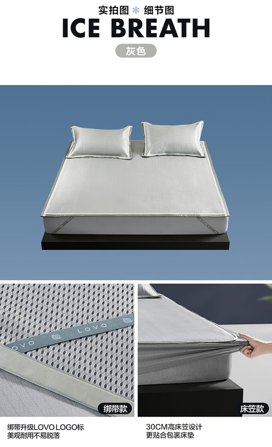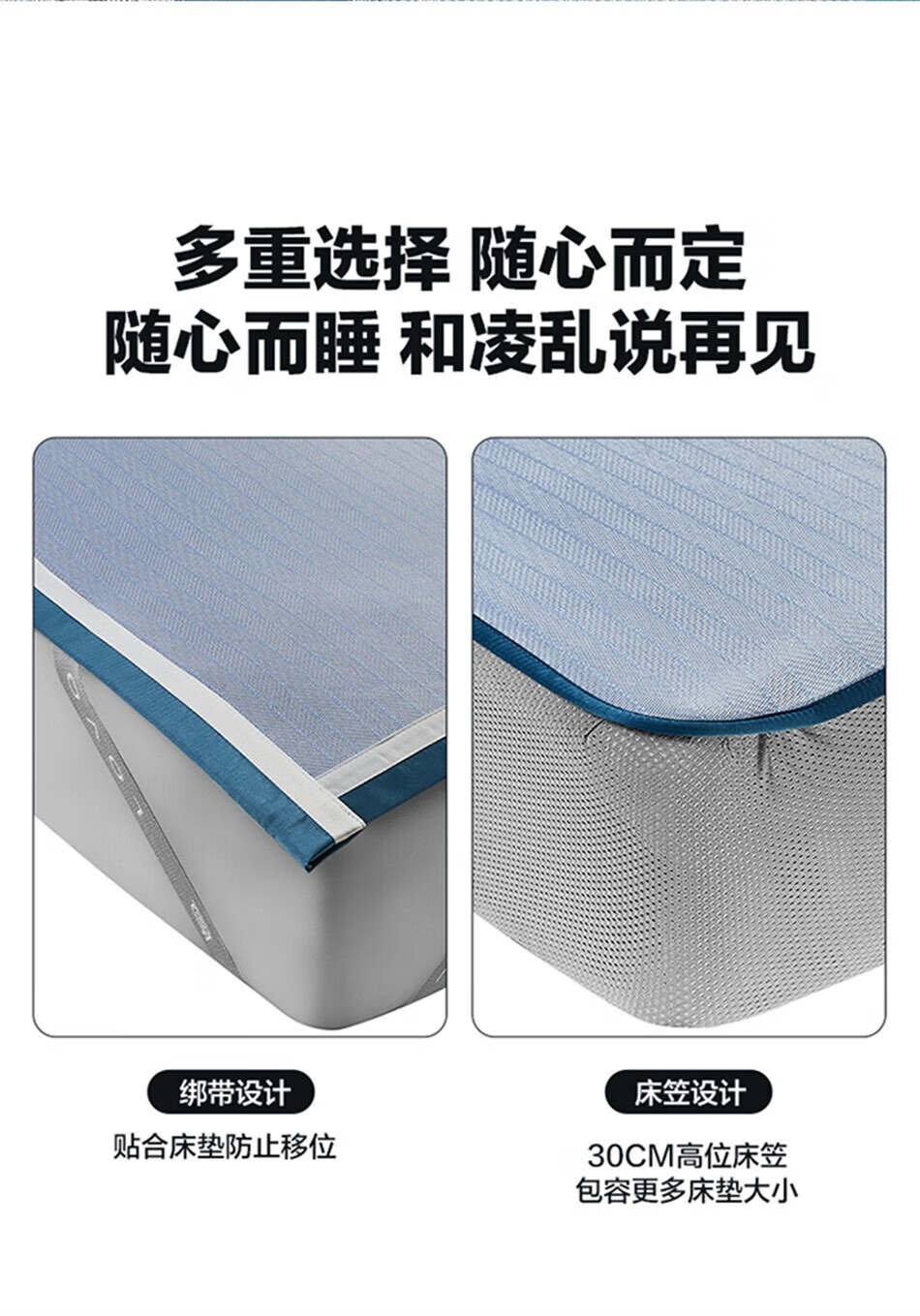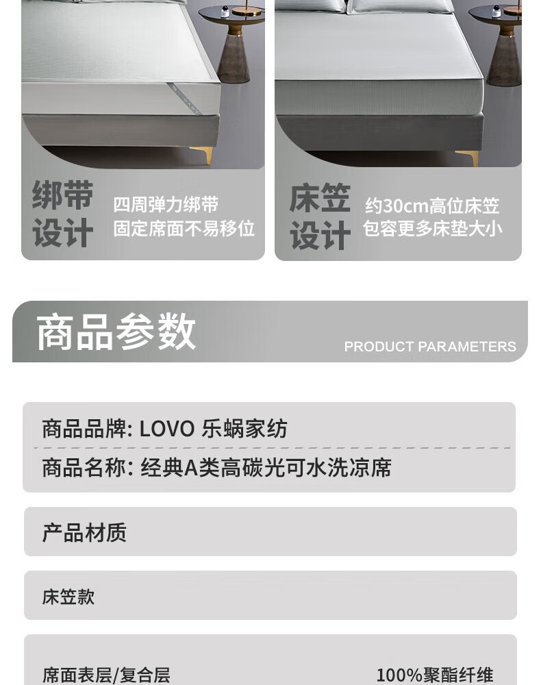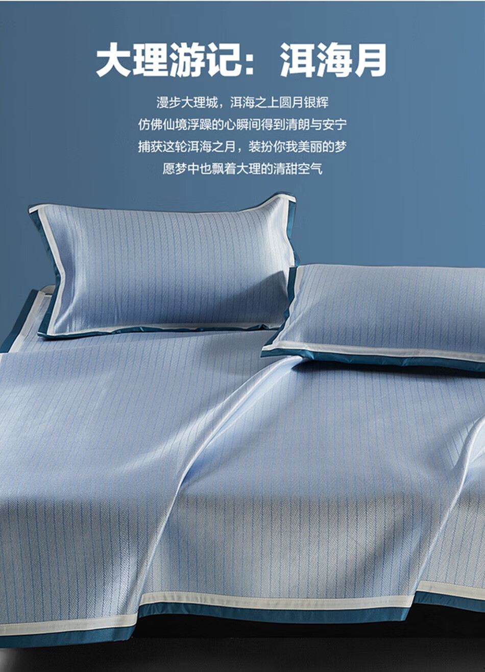 LOVO罗莱生活旗下品牌 A类可水洗凉席空调冰丝席可折叠高碳光软席子 【A类可水洗凉感席】绿-床笠款 两件套 120cm*200cm