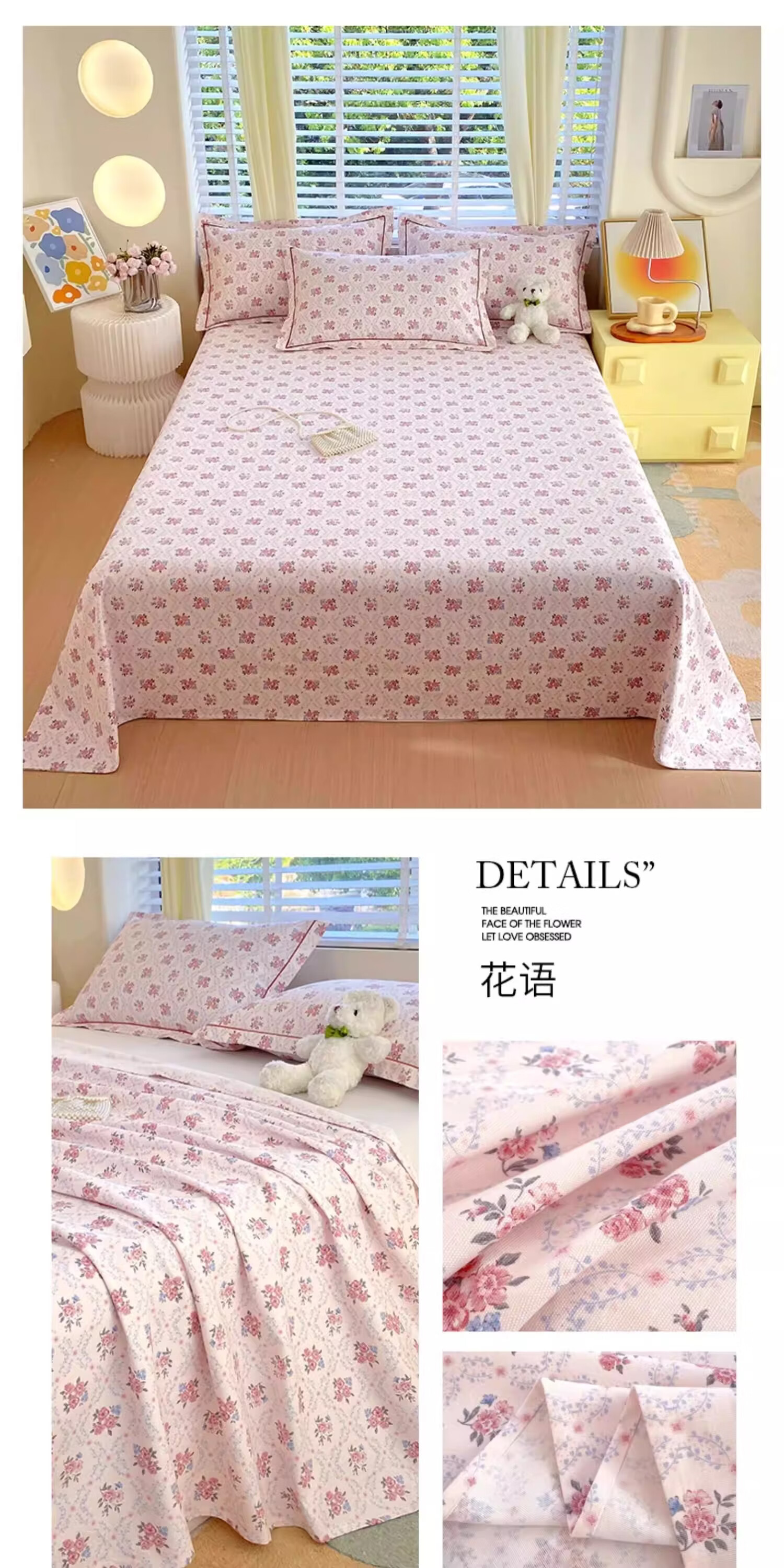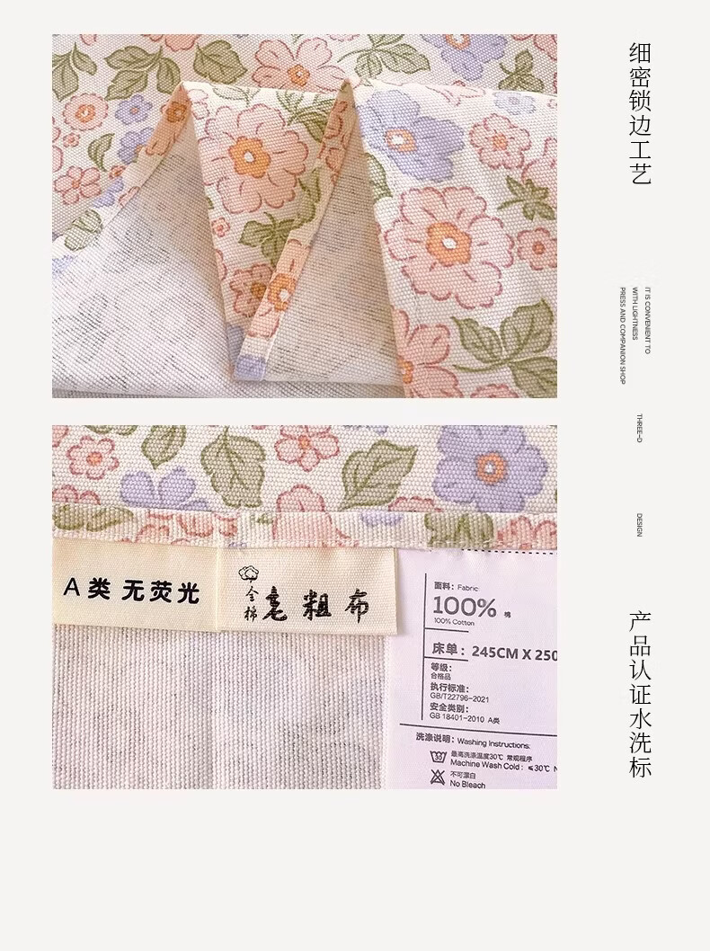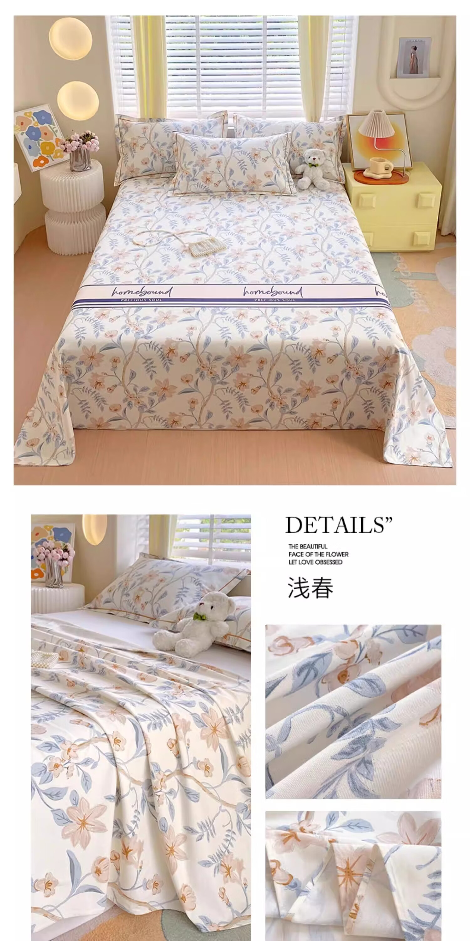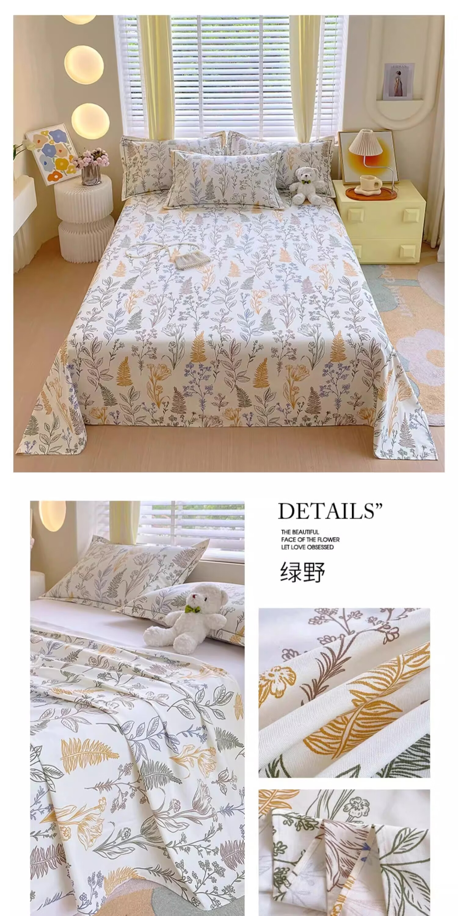 无印良品全棉床品四件套纯棉100%小清新花卉风单双人四季通用可裸睡三件套 苏屿【全棉面料 清新印花】 1.8m 床单款 被套200*230cm