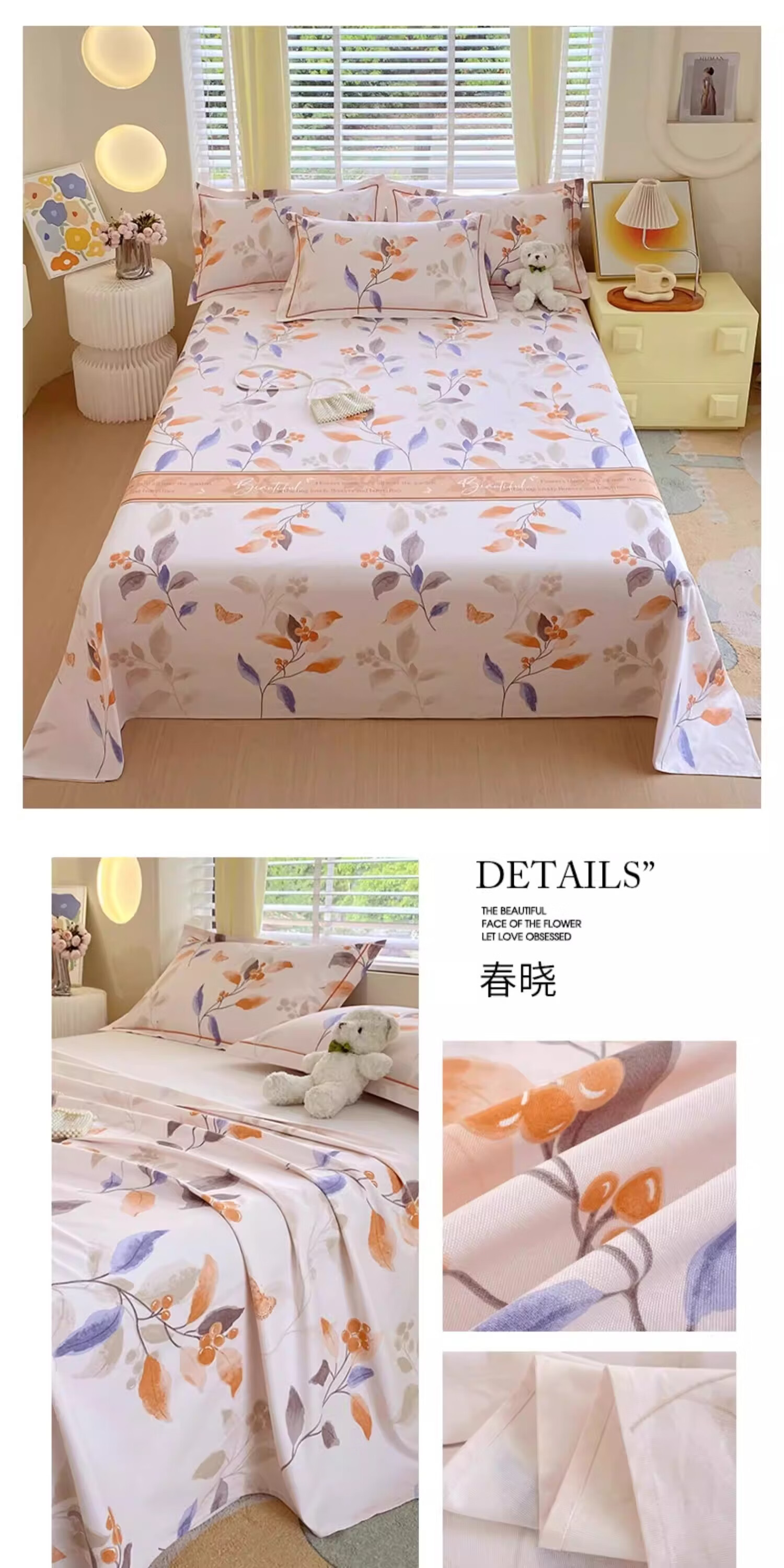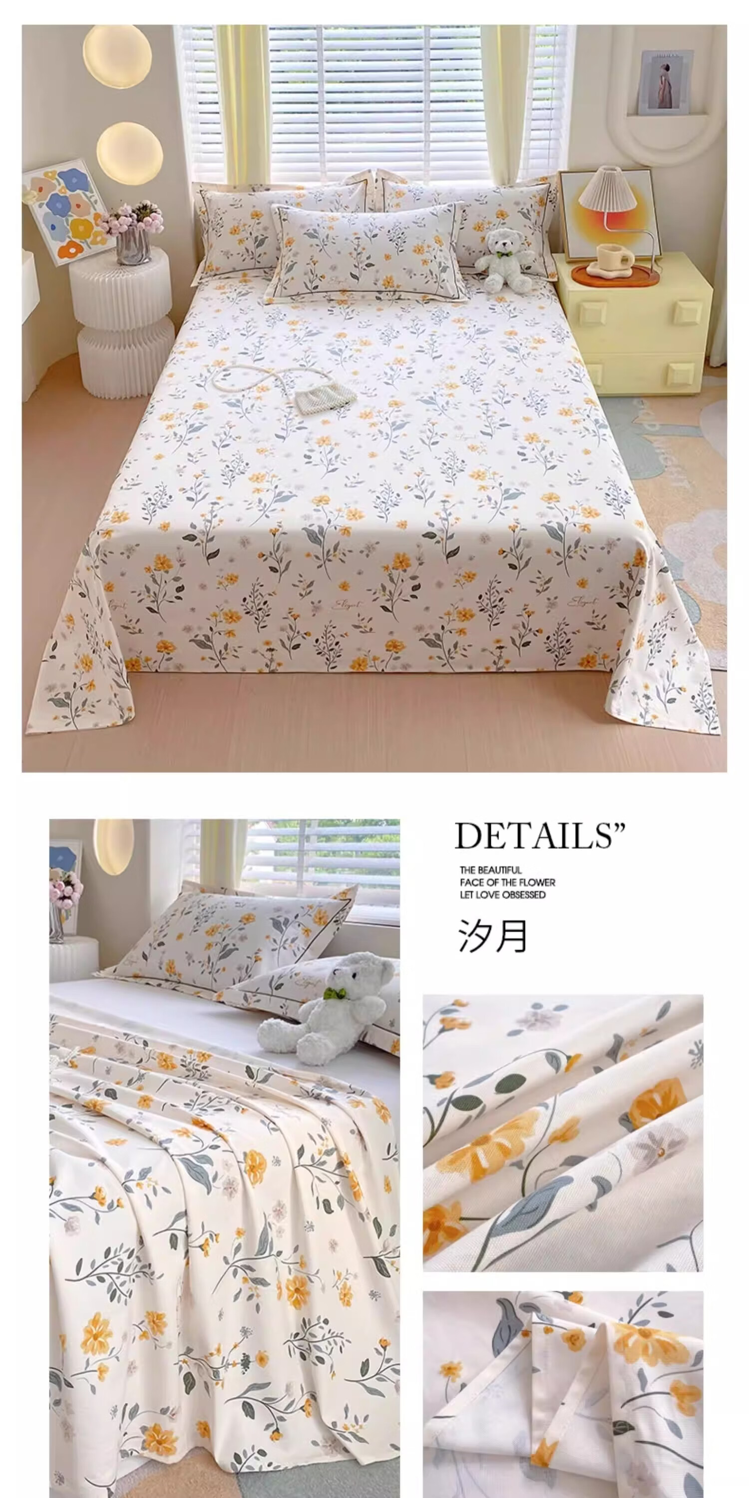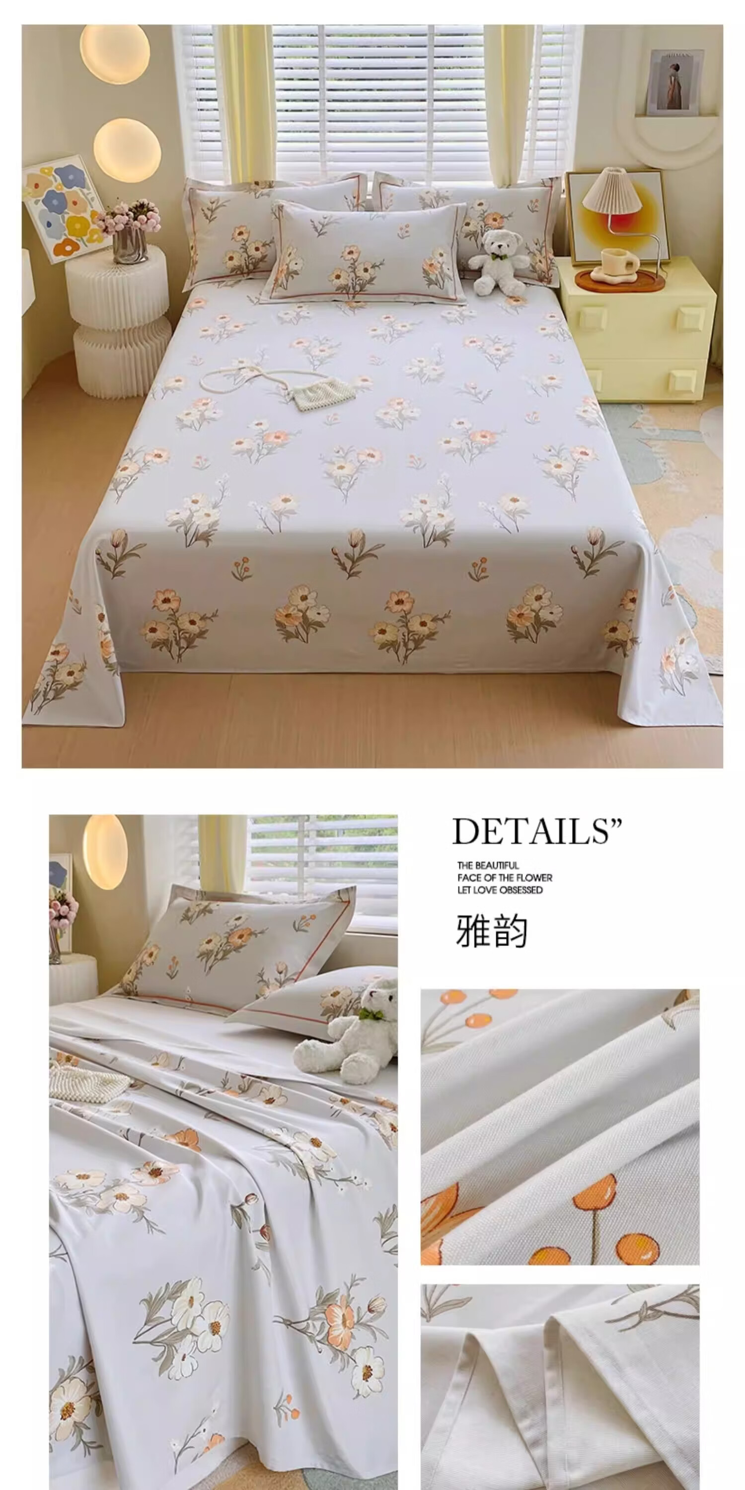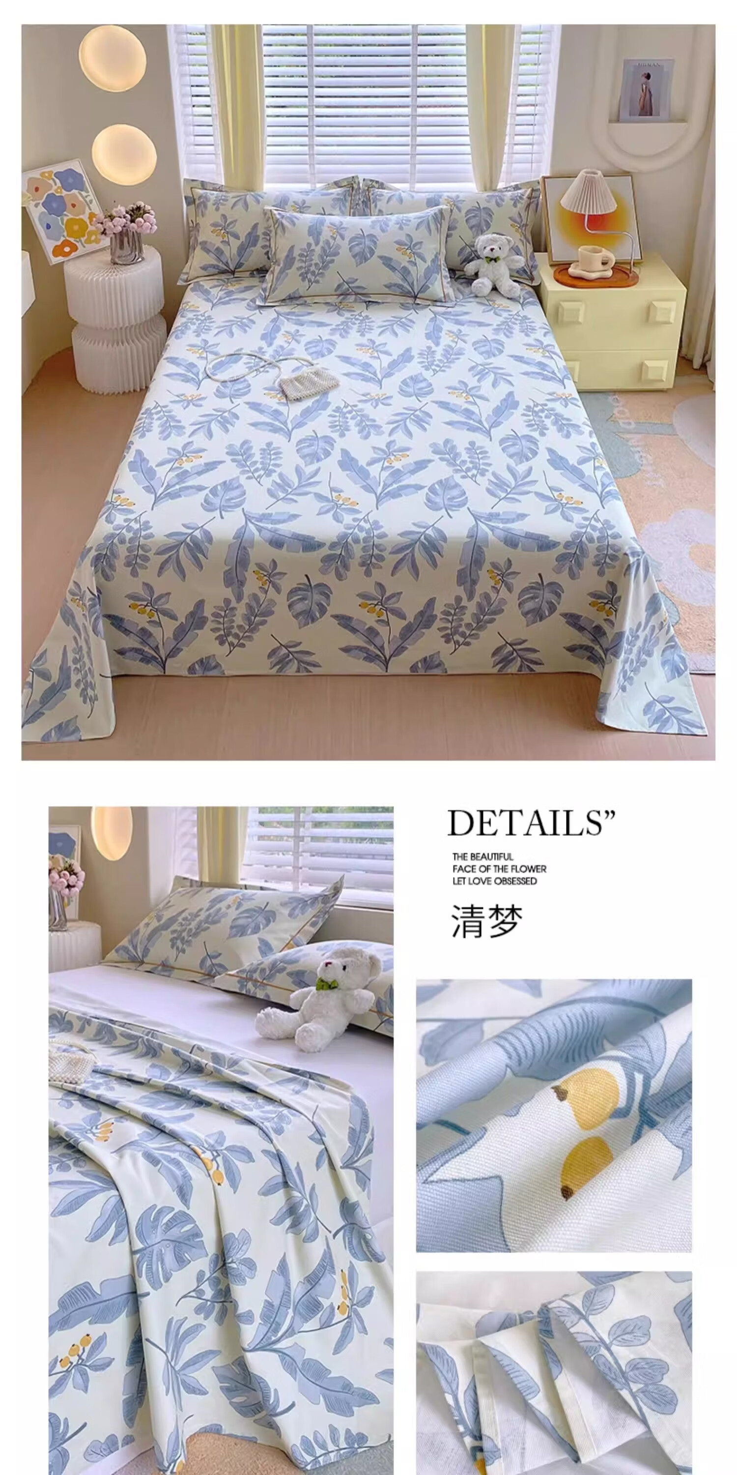 无印良品全棉床品四件套纯棉100%小清新花卉风单双人四季通用可裸睡三件套 苏屿【全棉面料 清新印花】 1.8m 床单款 被套200*230cm