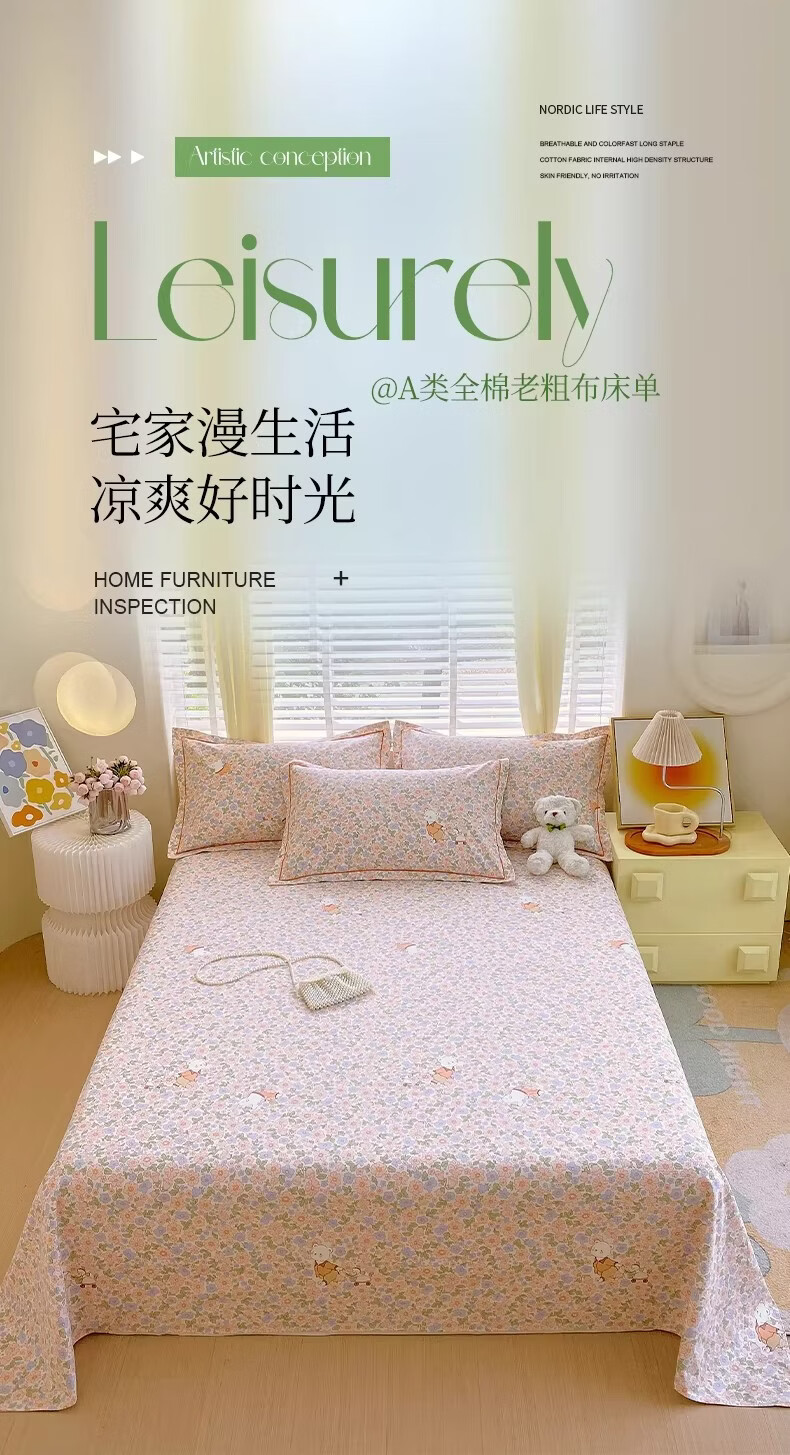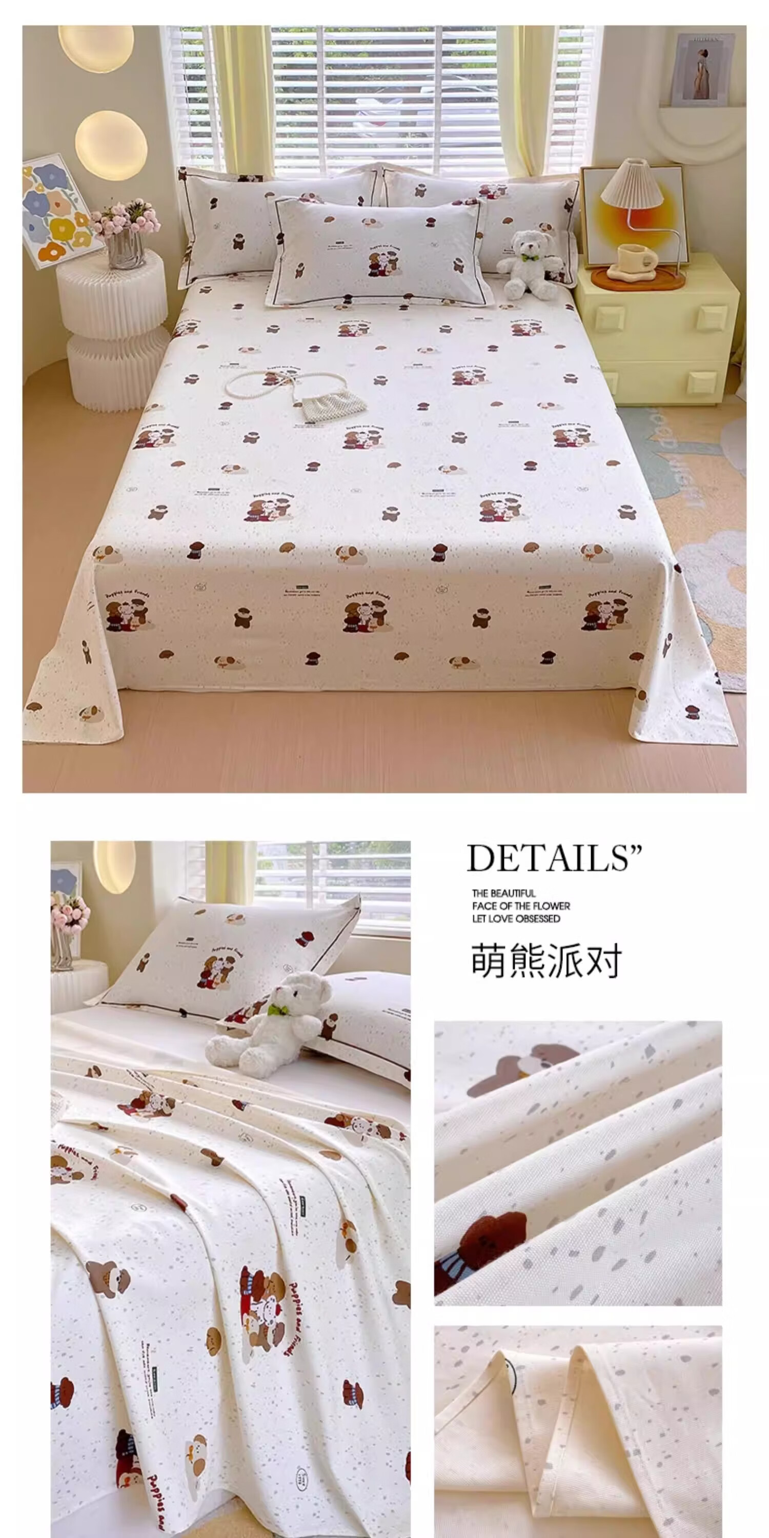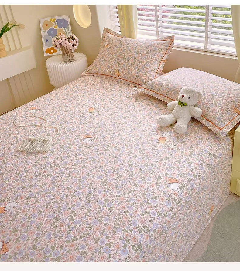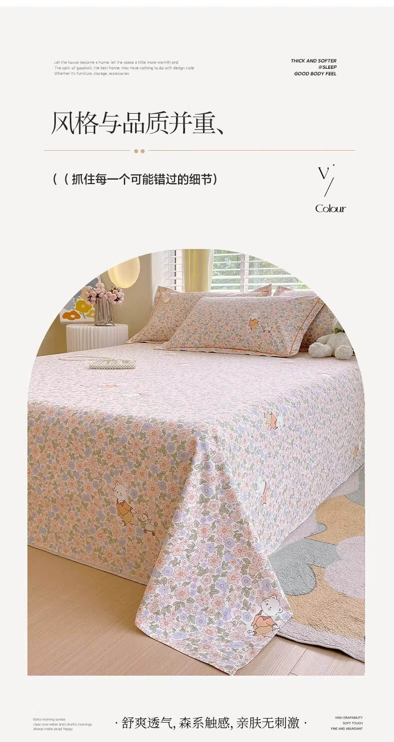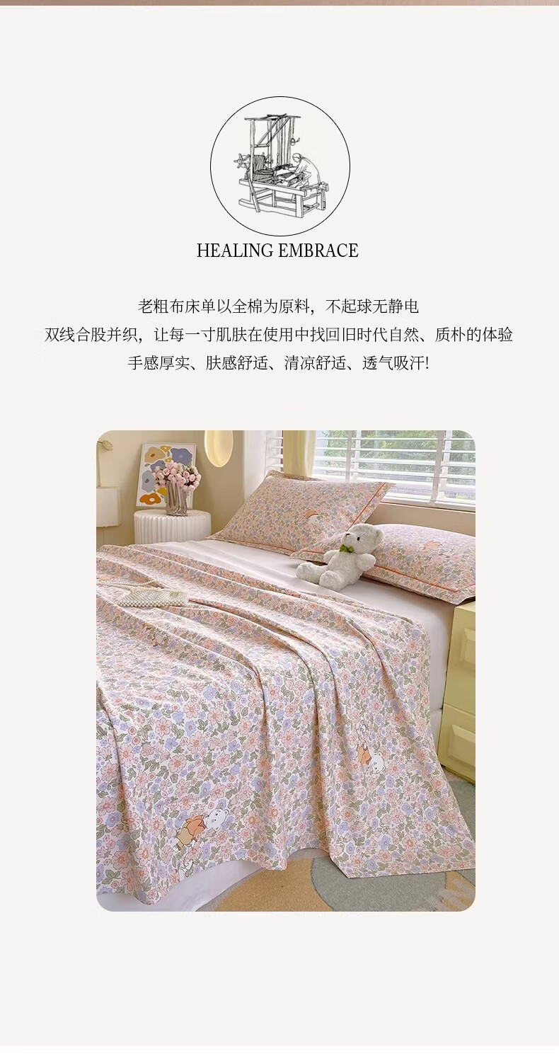 无印良品A类全棉老粗布床单200x230cm单件100%纯棉宿舍家用四季被单可裸睡 兔米朵【A类全棉老粗布】 250cm*245cm 床单+枕套一对