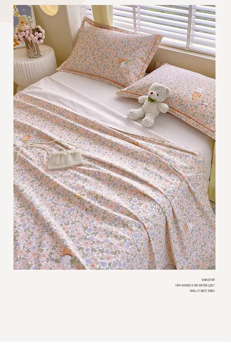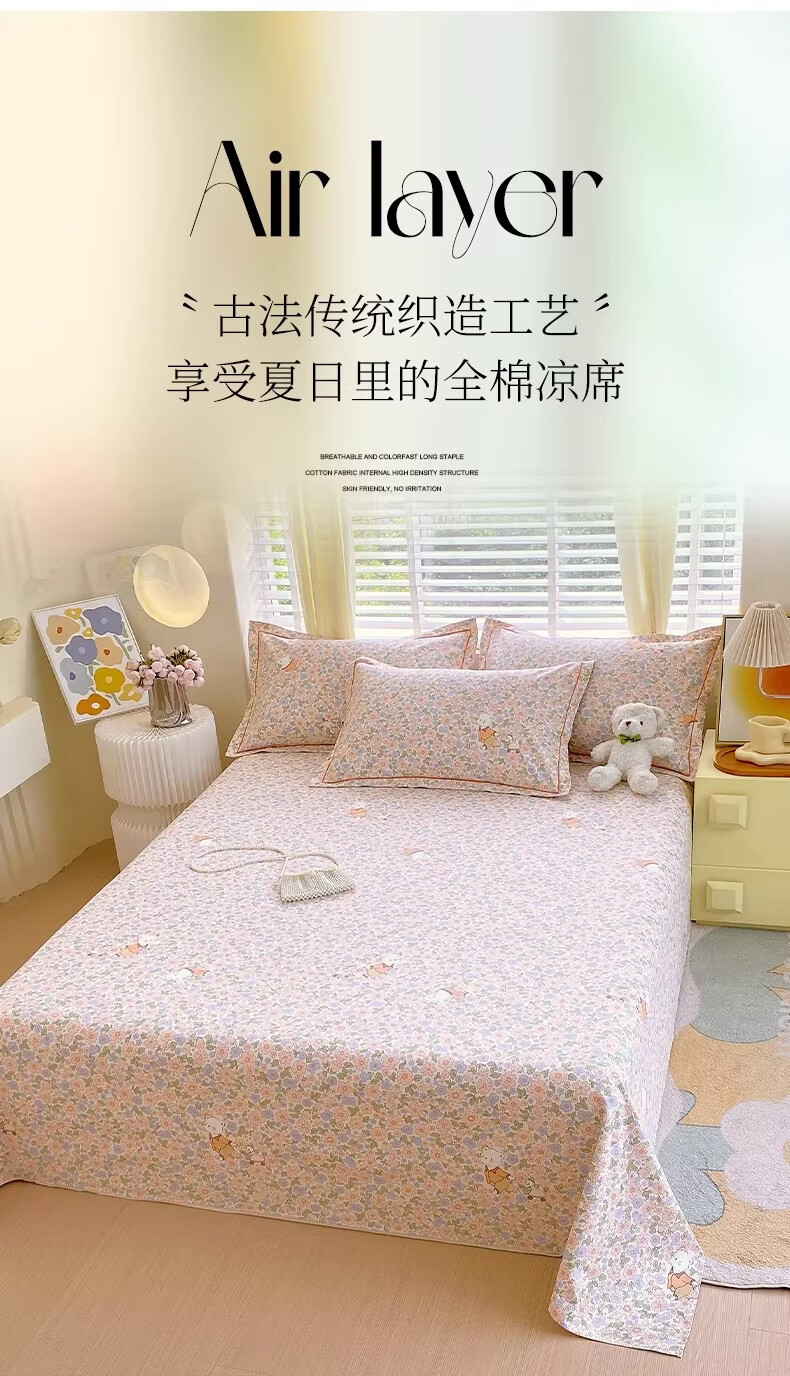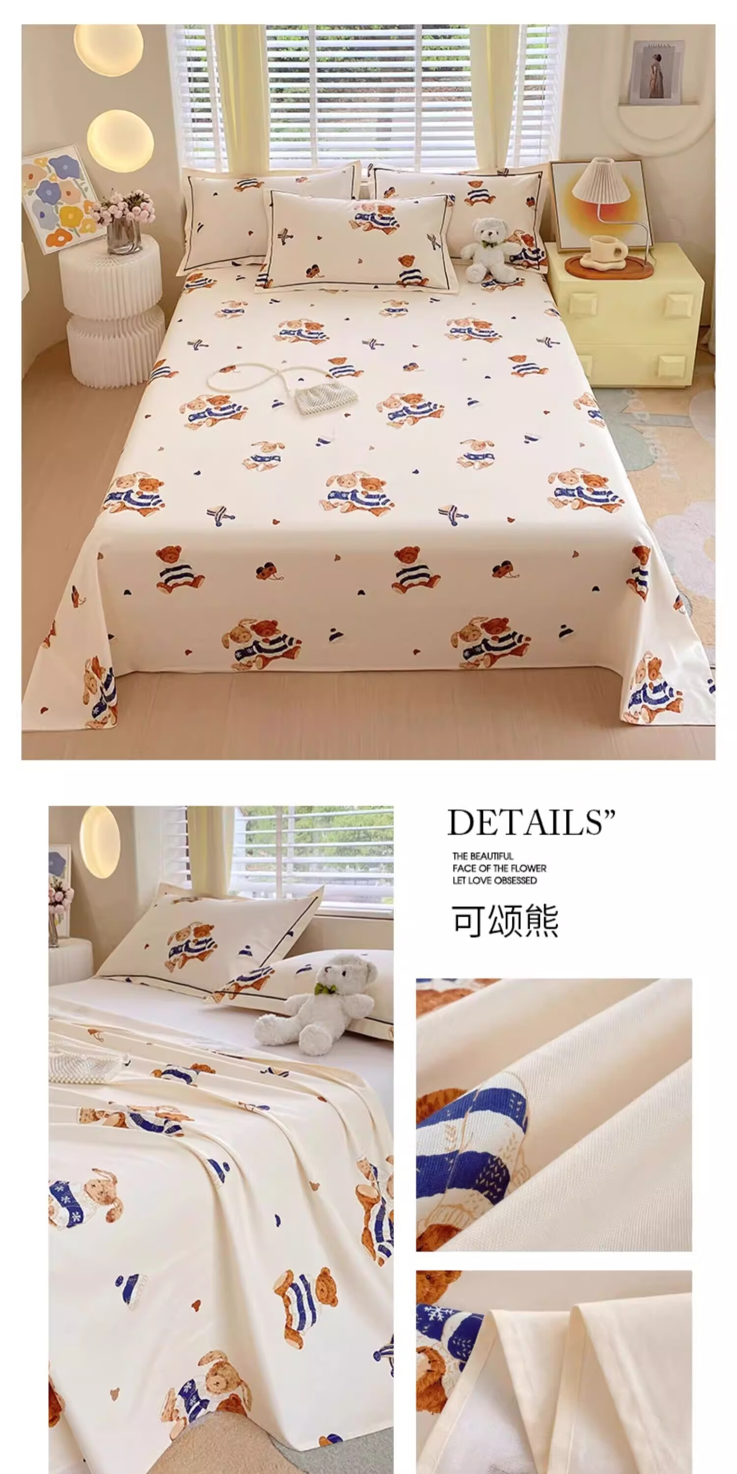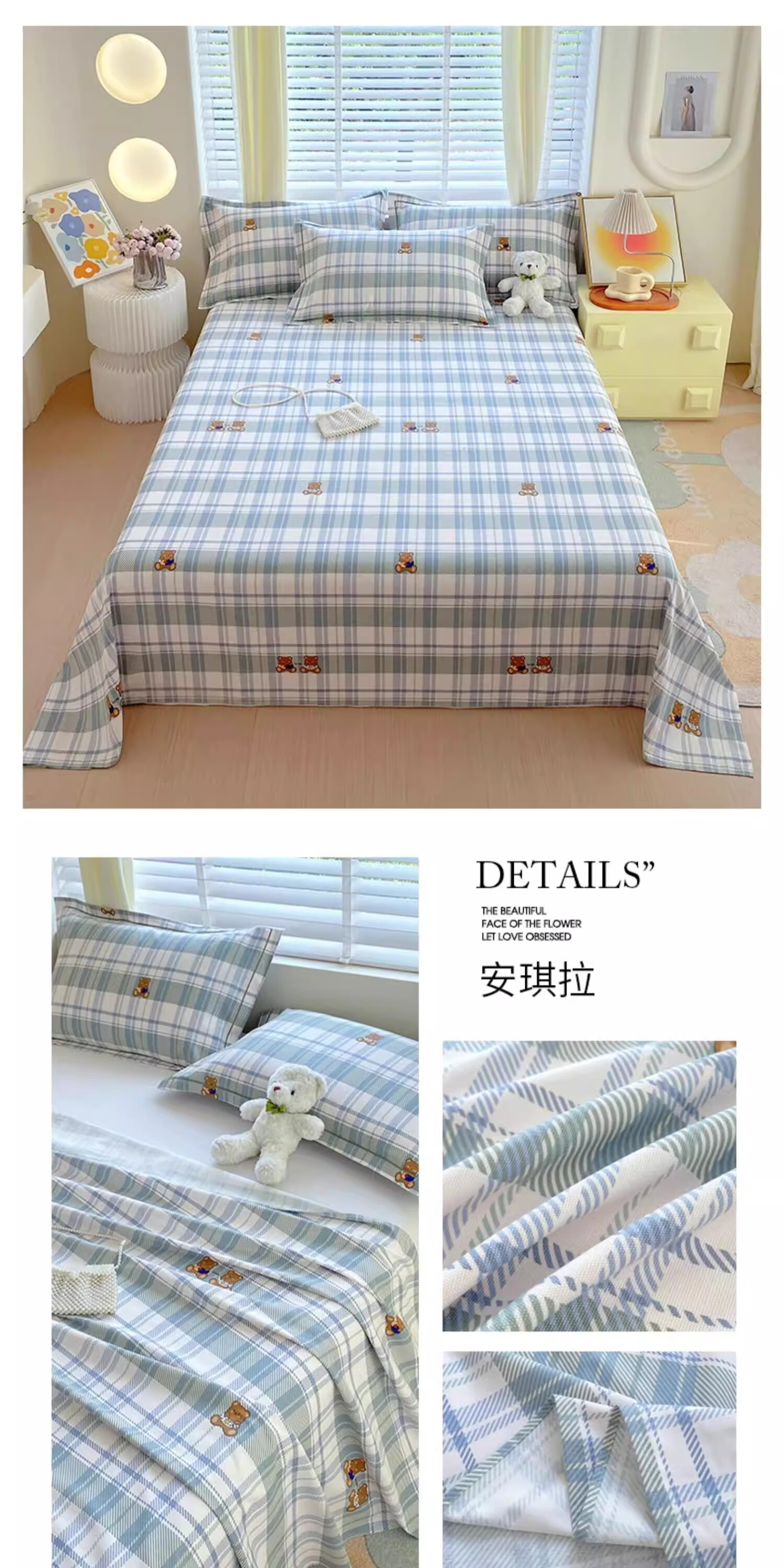 无印良品A类全棉老粗布床单200x230cm单件100%纯棉宿舍家用四季被单可裸睡 兔米朵【A类全棉老粗布】 250cm*245cm 床单+枕套一对