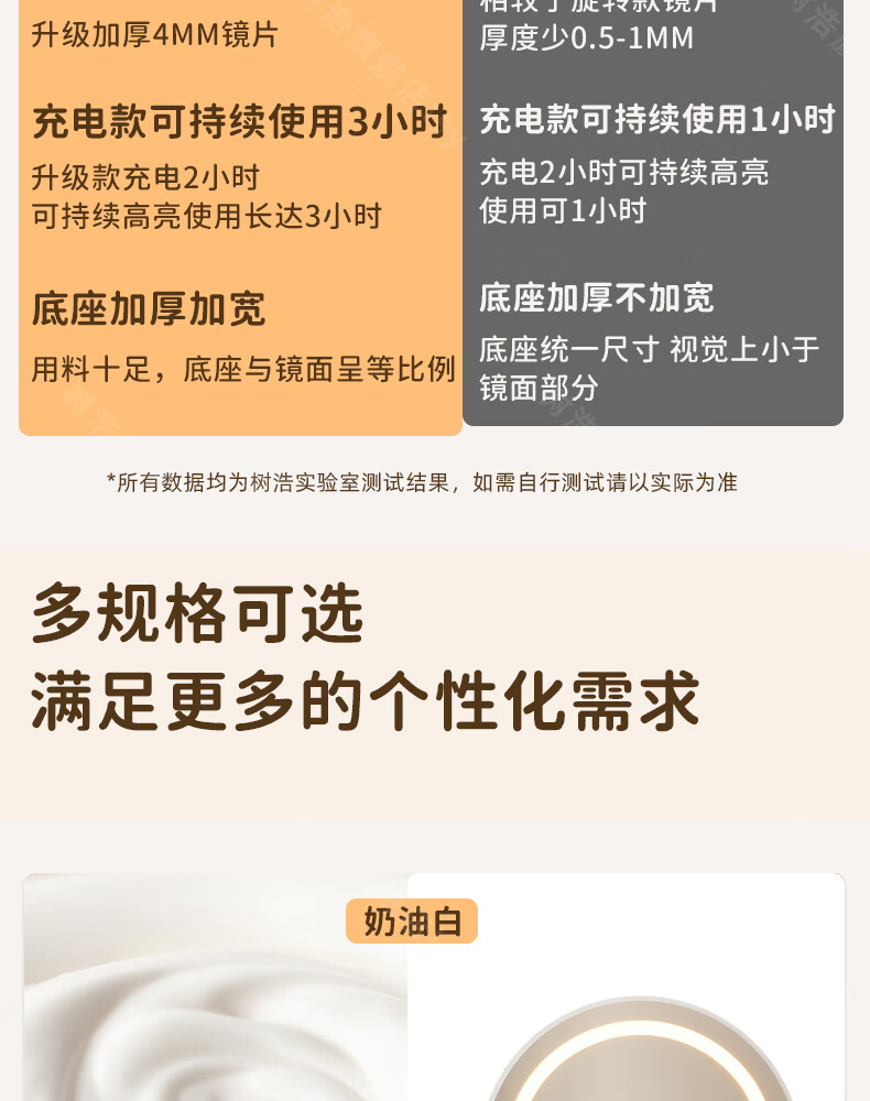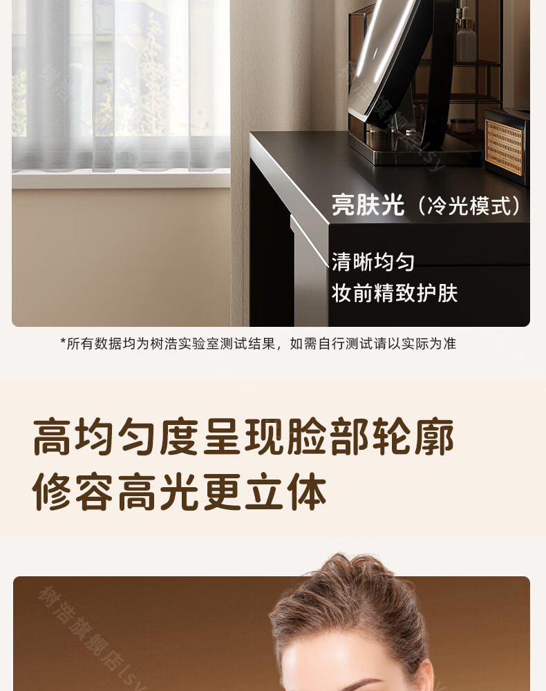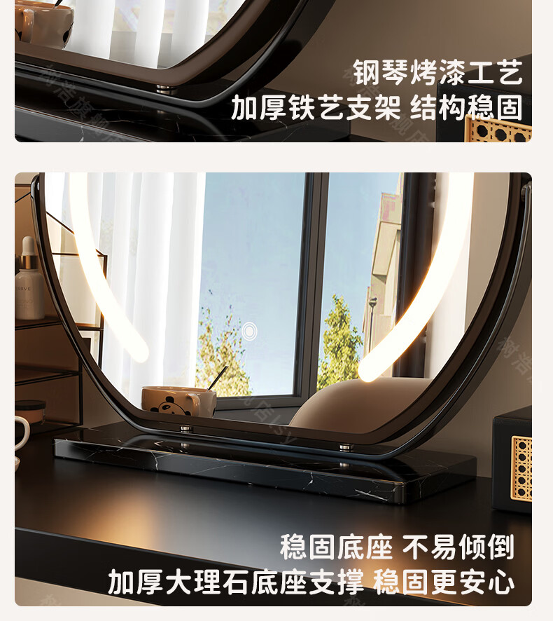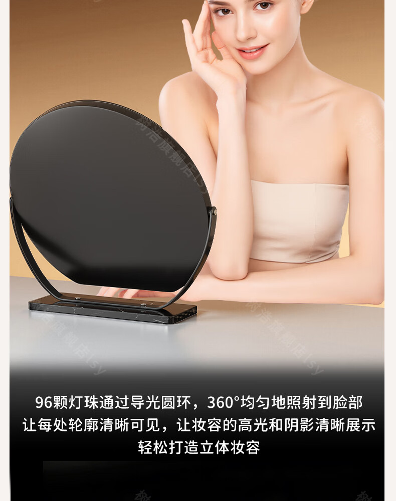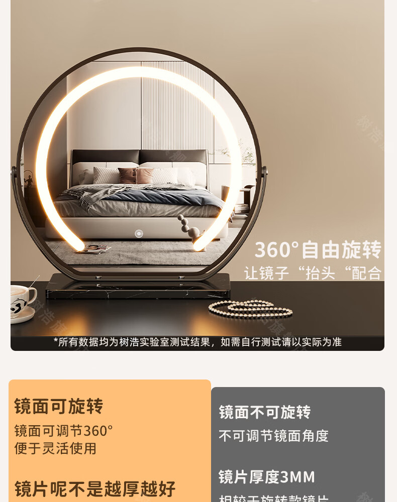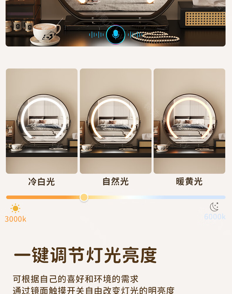 树浩智能语音镜梳妆台led化妆镜台式ai美妆镜卧室桌面可旋转补光镜子 带灯-奶油白【固定插电款】高清成像