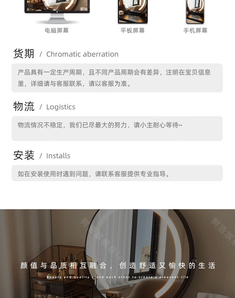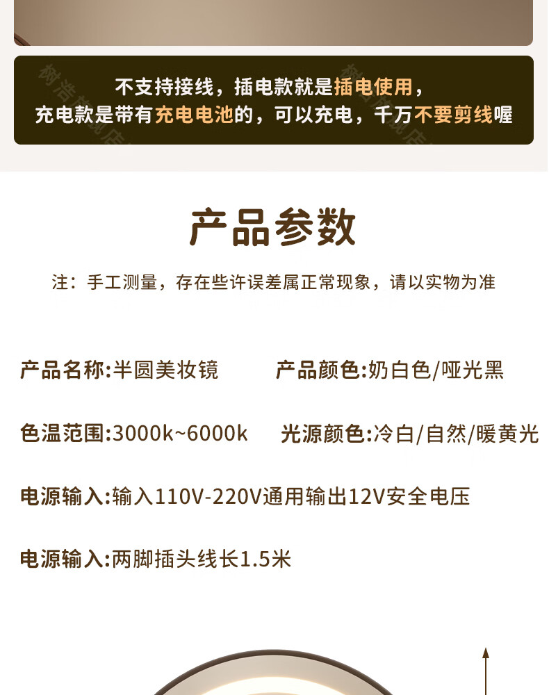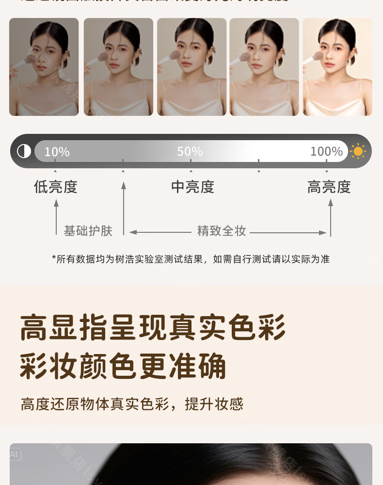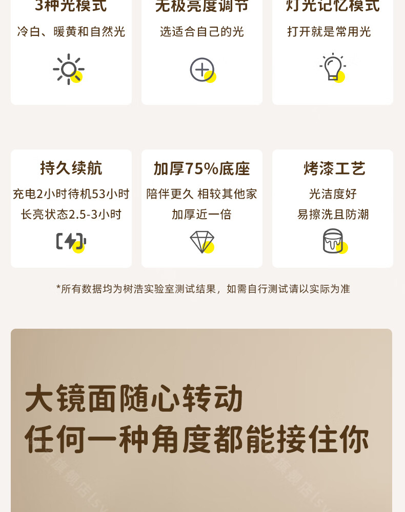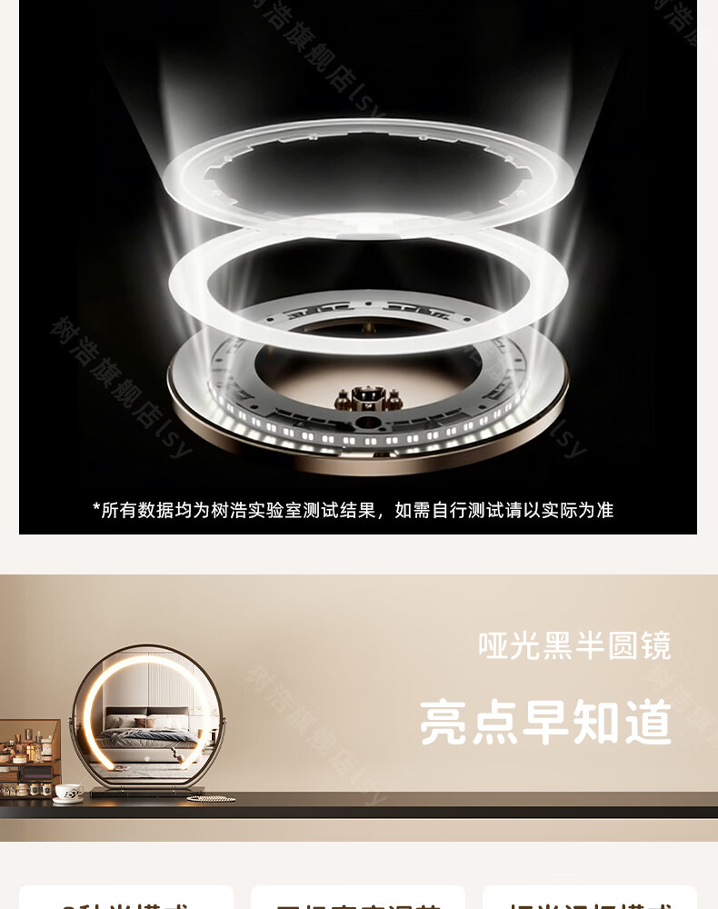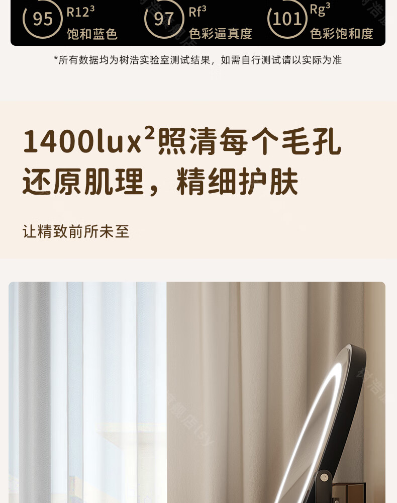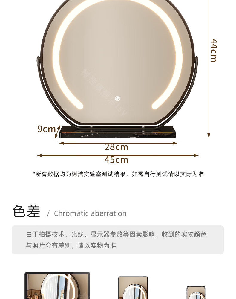 树浩智能语音镜梳妆台led化妆镜台式ai美妆镜卧室桌面可旋转补光镜子 带灯-奶油白【固定插电款】高清成像