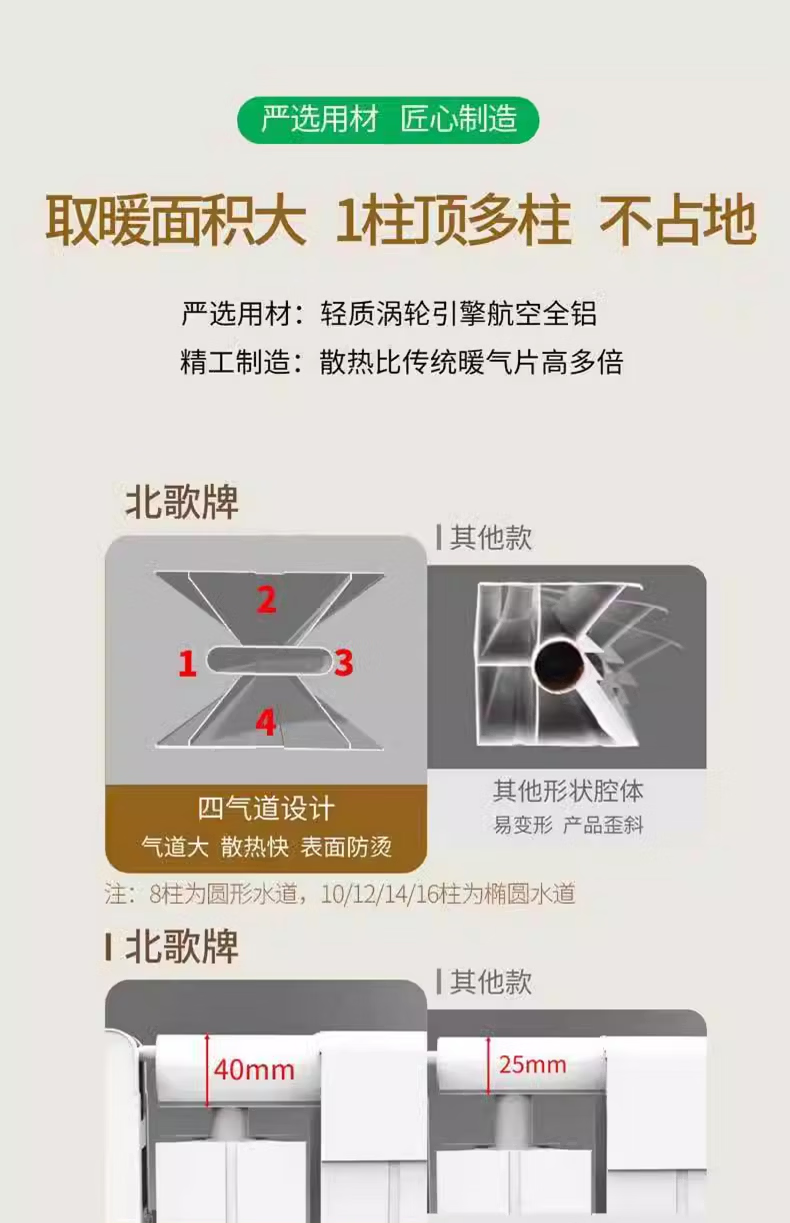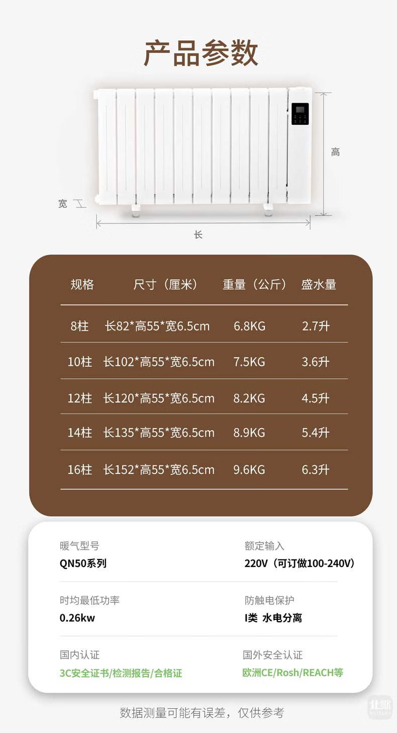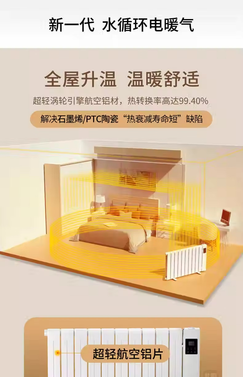 北歌加水省电暖器节能取暖器家用安全注水暖气片热泵循环全屋变频 (wifi加强版)涡轮航空铝16柱25~30平
