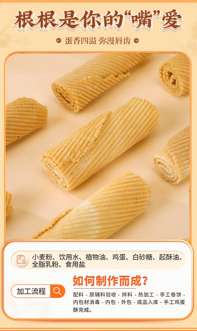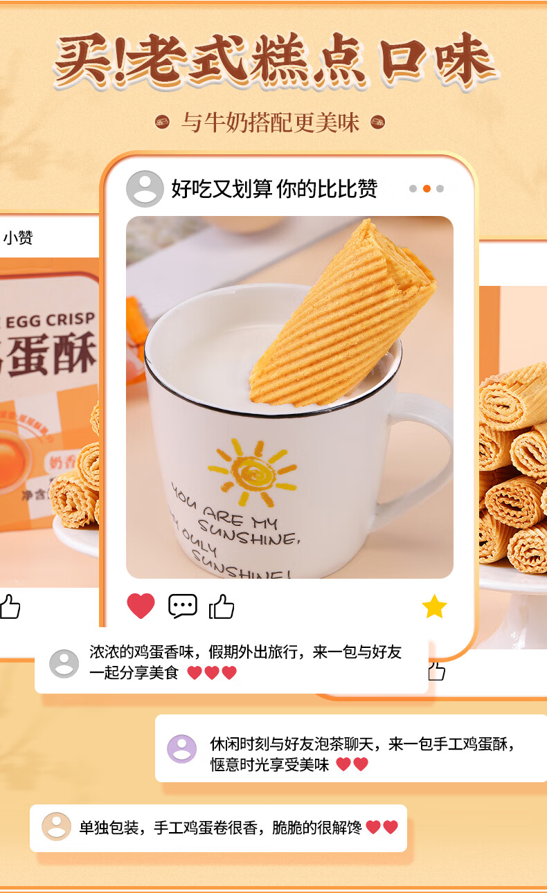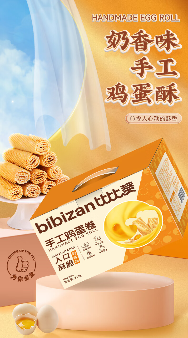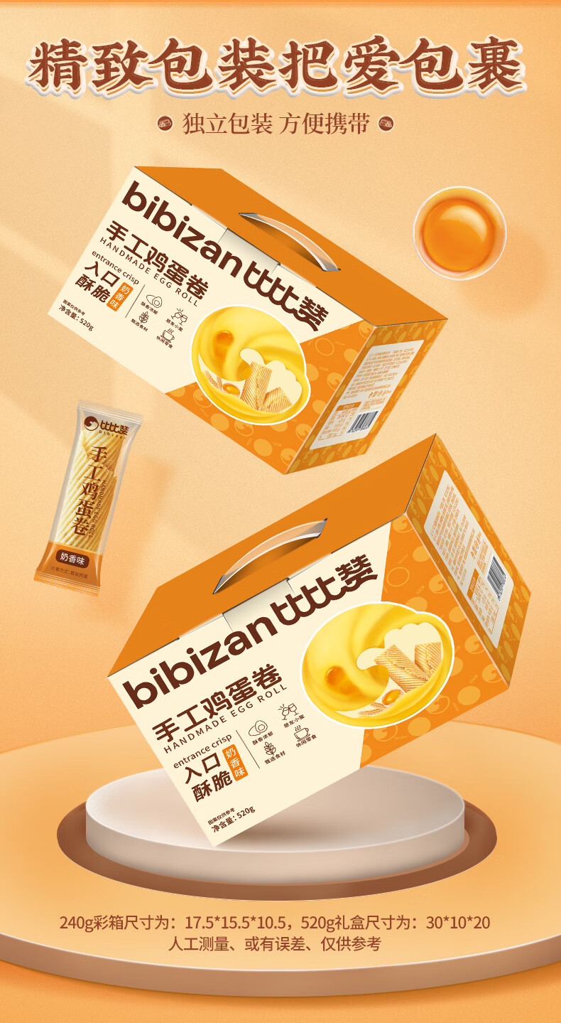 比比赞(BIBIZAN)手工鸡蛋卷酥奶香味520g/箱休闲零食品营养饼干办公室点心礼盒