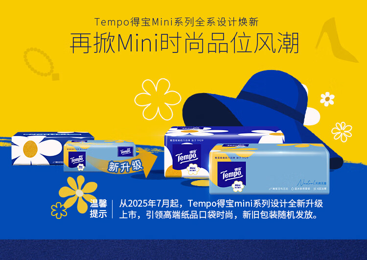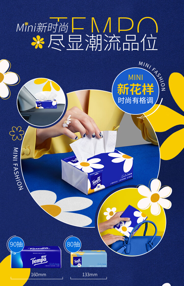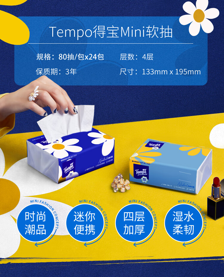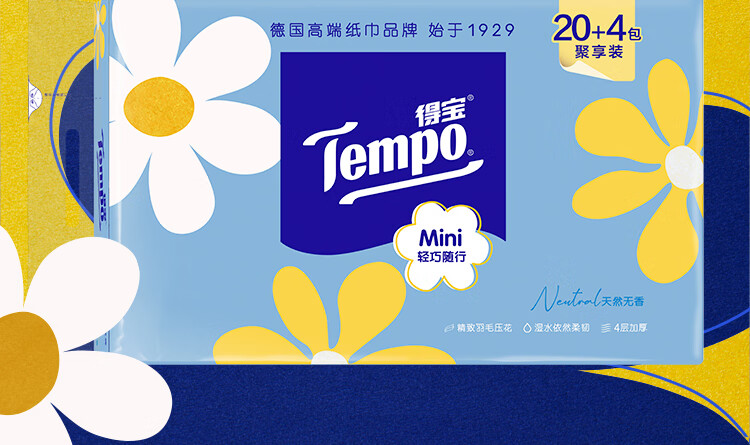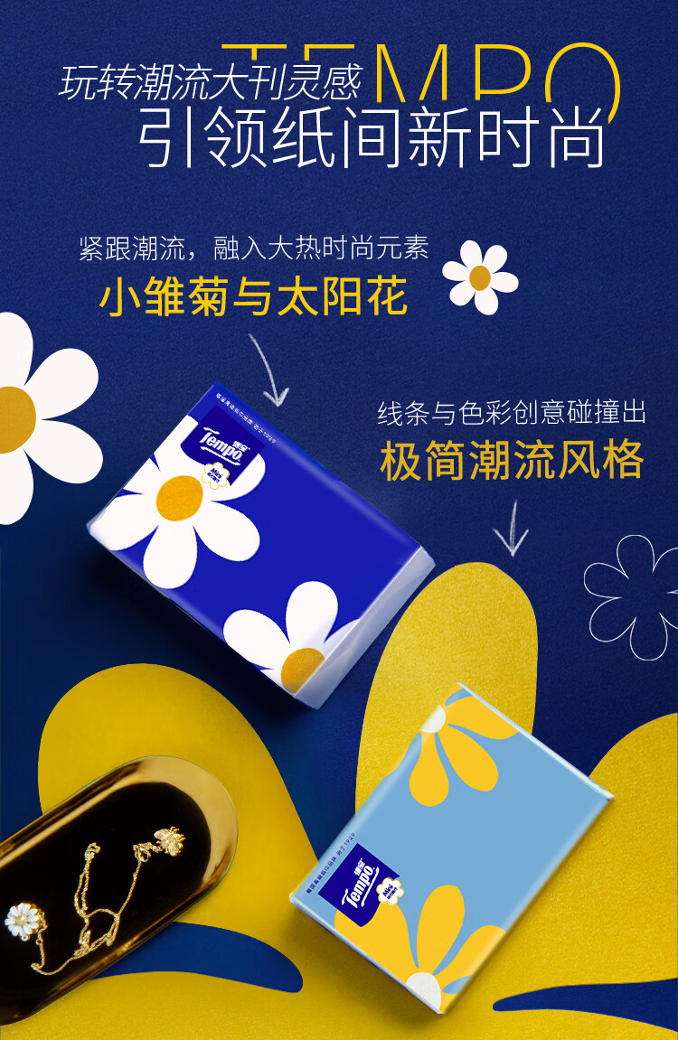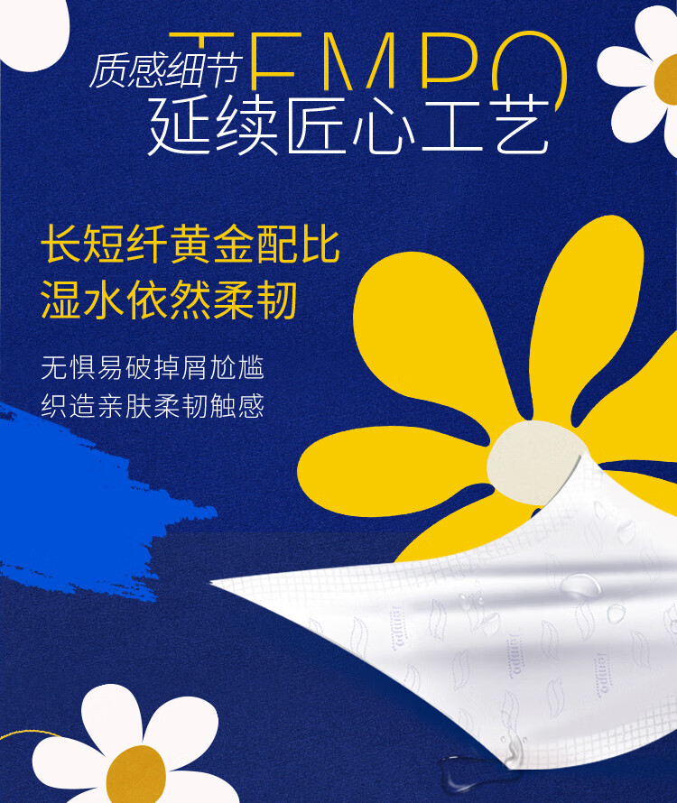 得宝(TEMPO)一博同款 抽纸 小雏菊系列4层80抽*24包 餐巾纸 卫生纸 纸巾S码