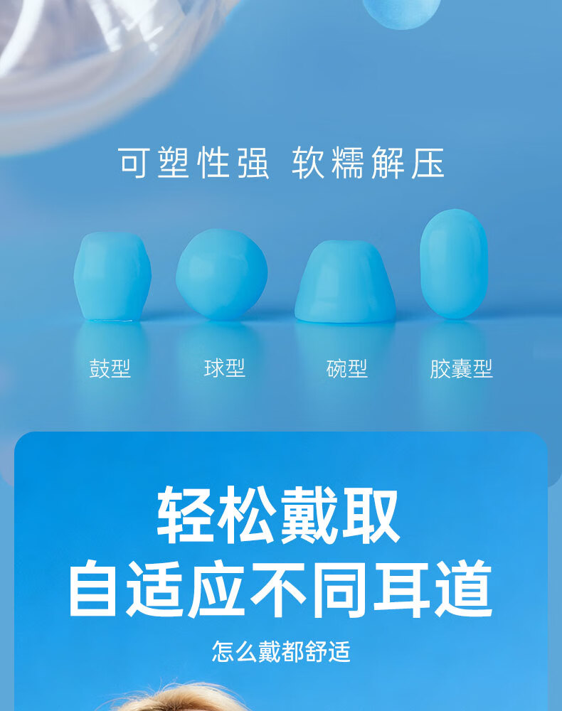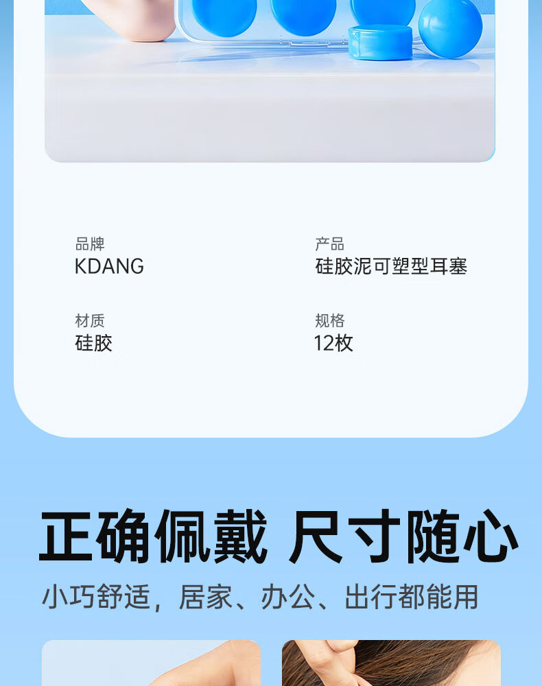 KDANG硅胶泥耳塞防噪音睡觉睡眠专用超隔音不伤耳婴儿游泳防进水12枚