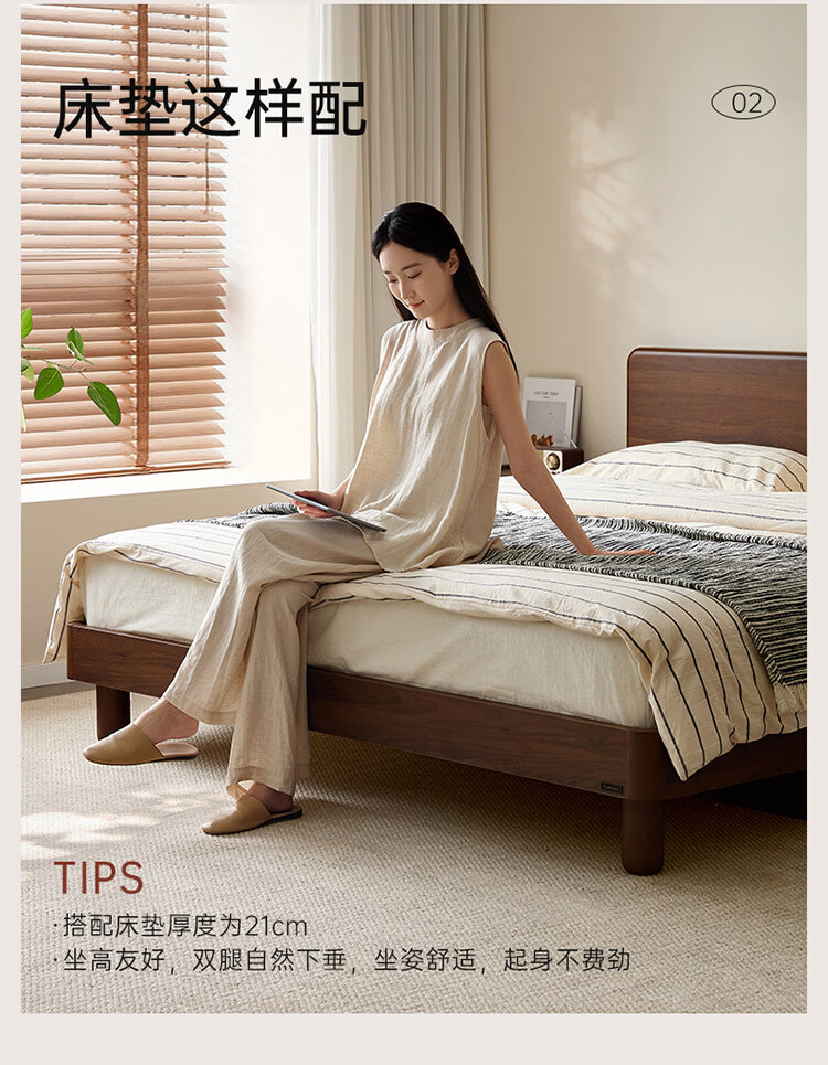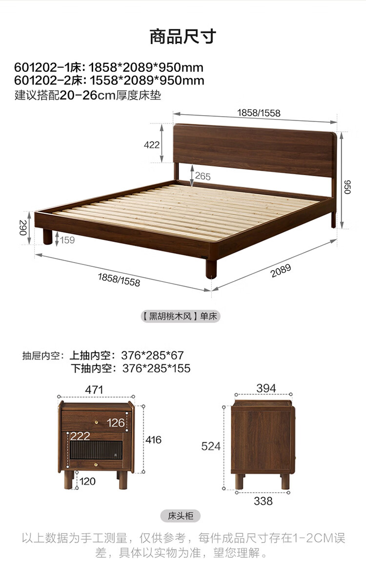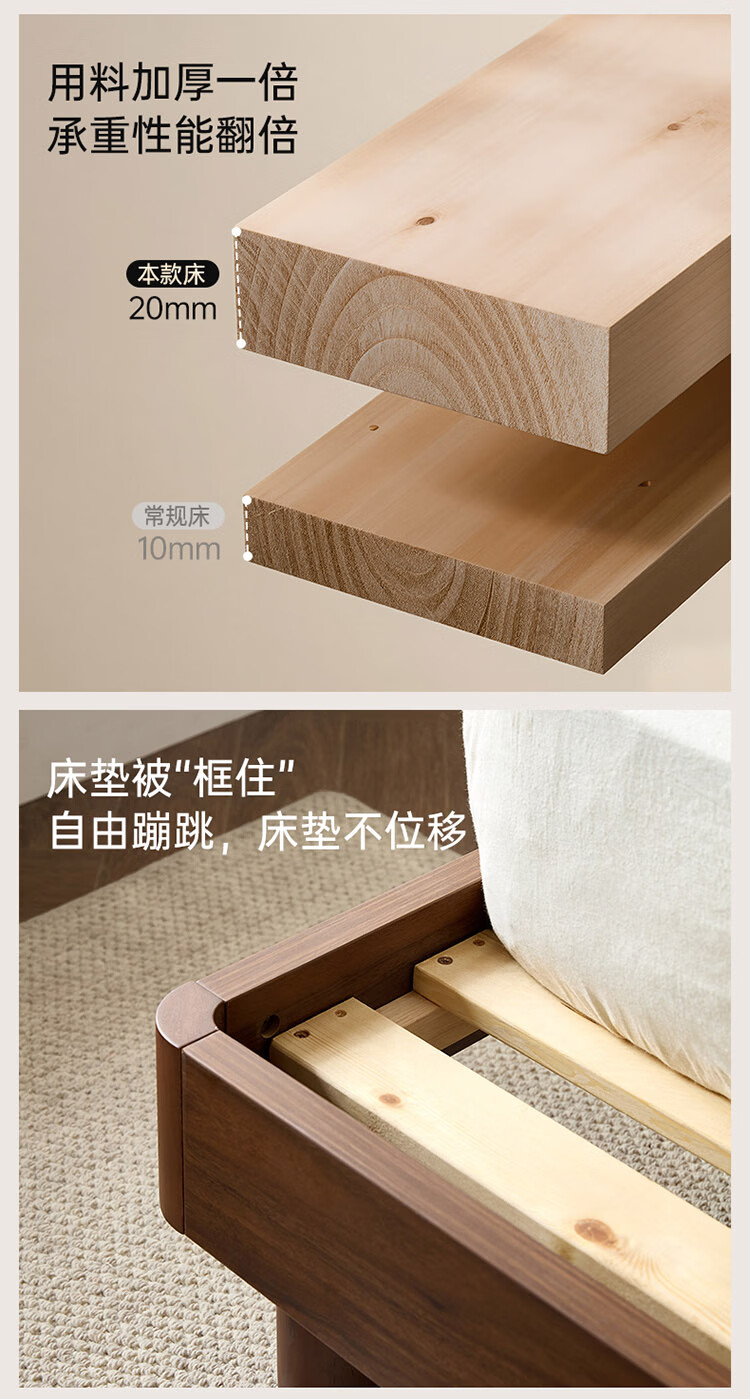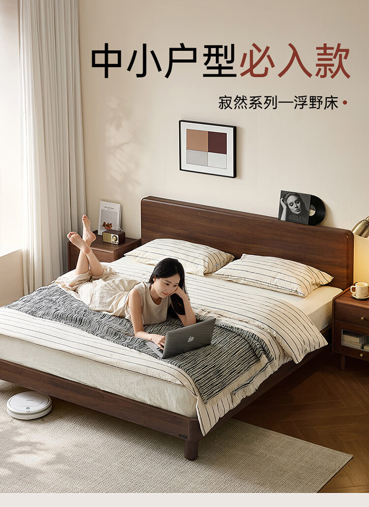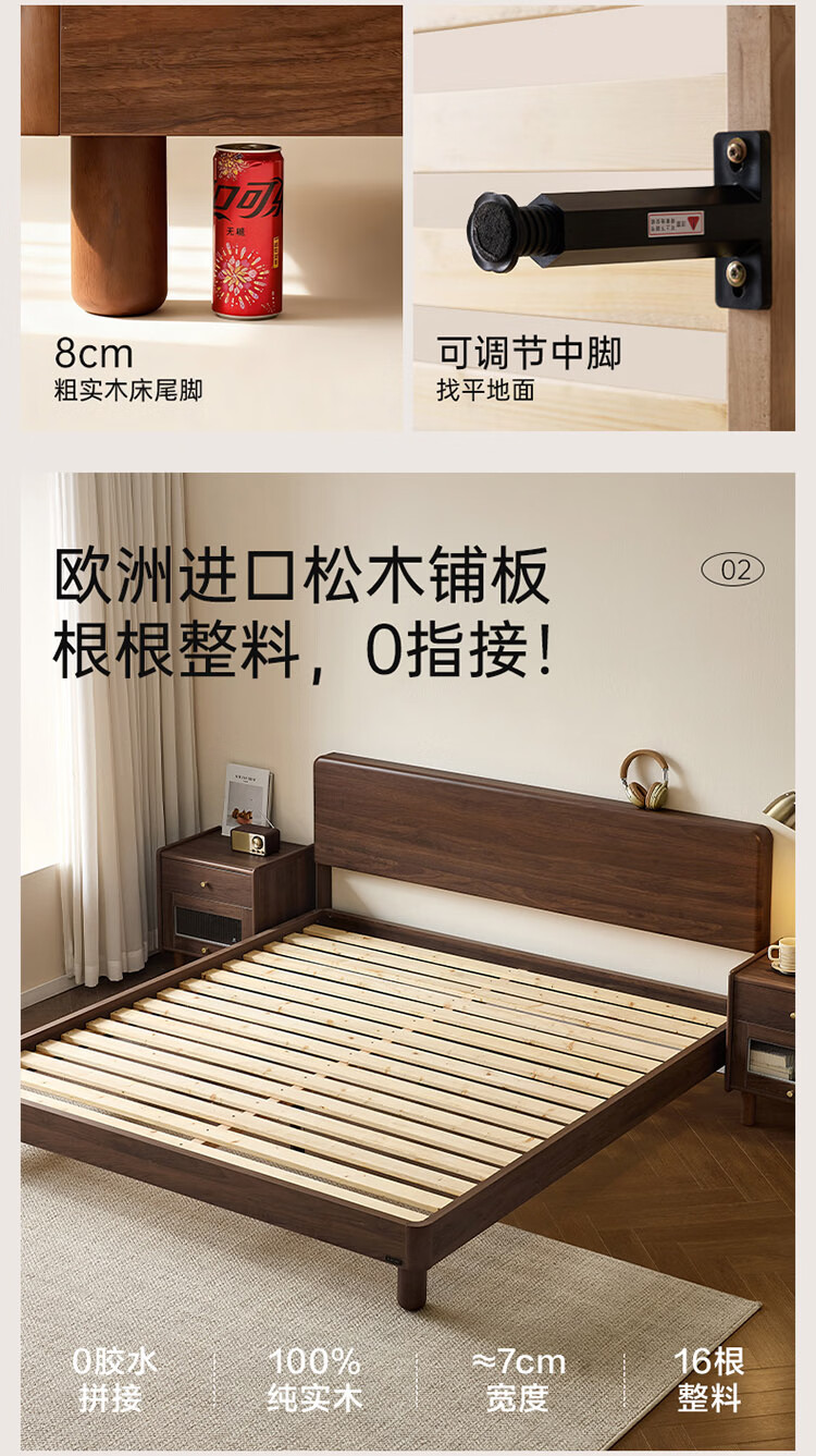 全友家居原木风高脚储物双人床2026新款小户型卧室排骨架床和床垫组合 【黑胡桃木风】 1.5米x2米 单床