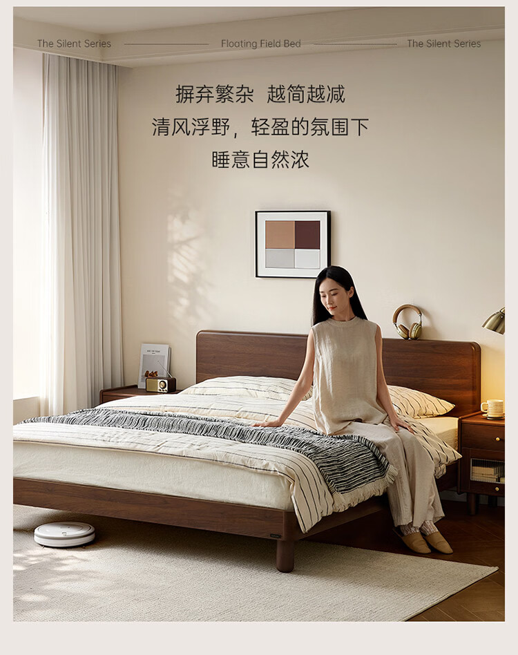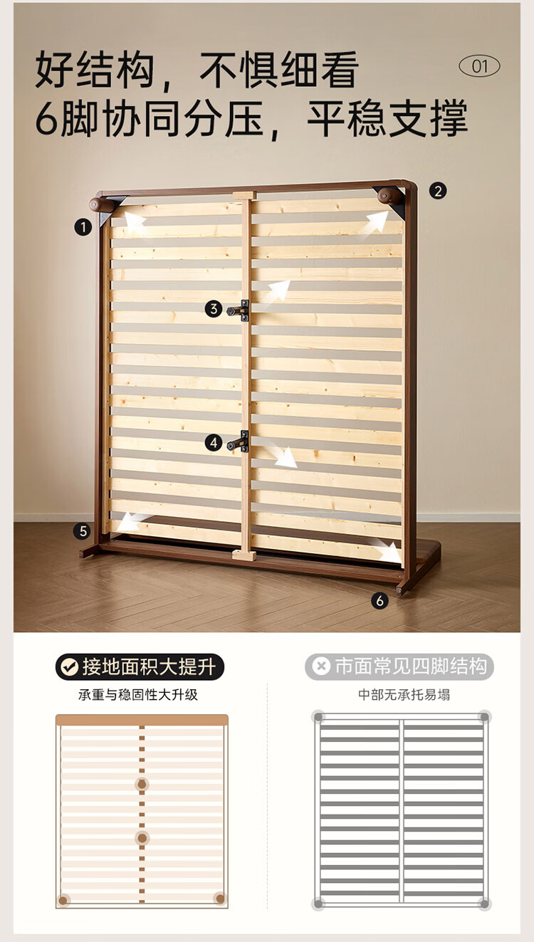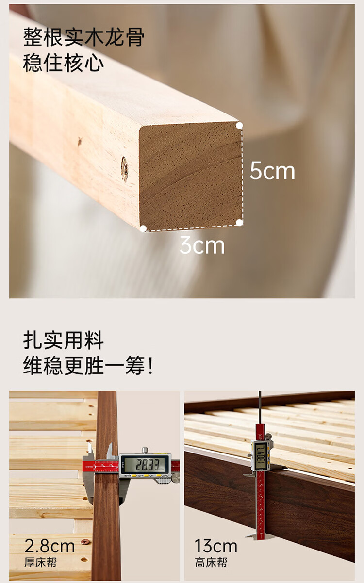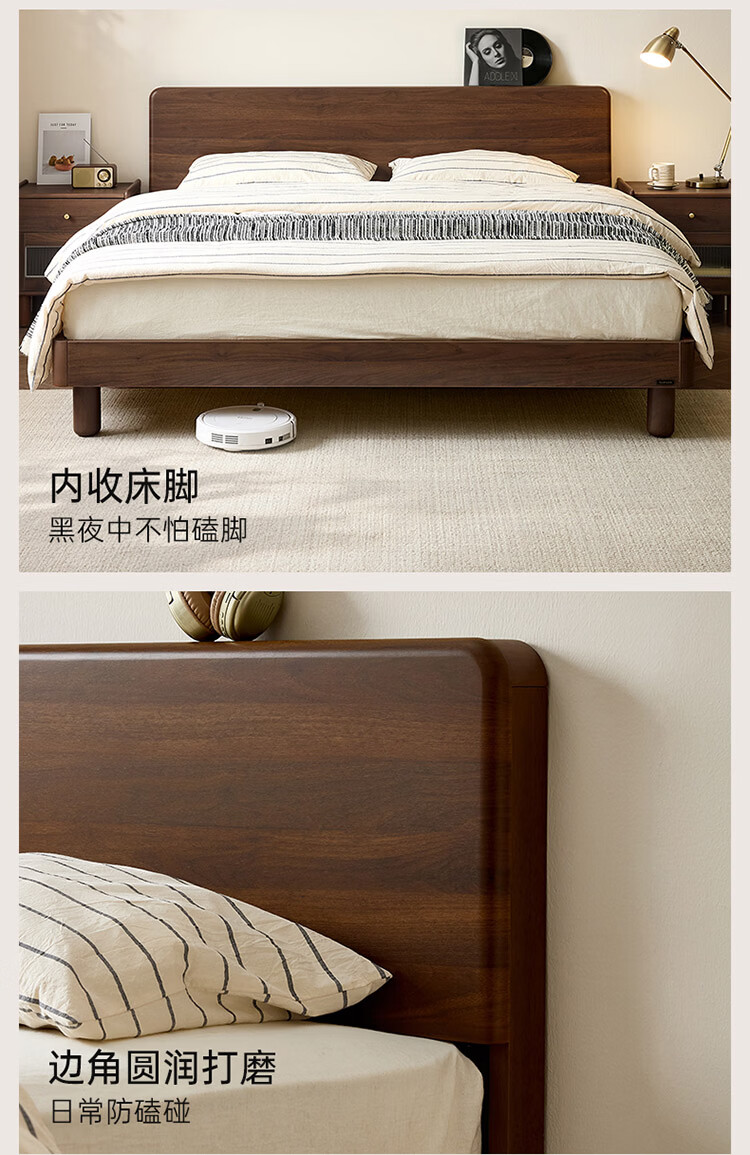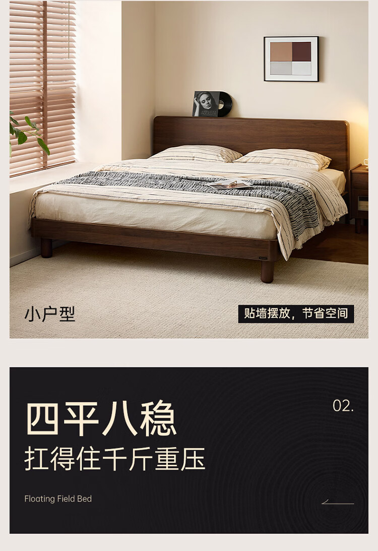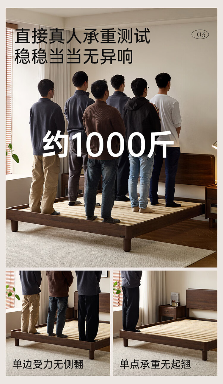 全友家居原木风高脚储物双人床2026新款小户型卧室排骨架床和床垫组合 【黑胡桃木风】 1.5米x2米 单床