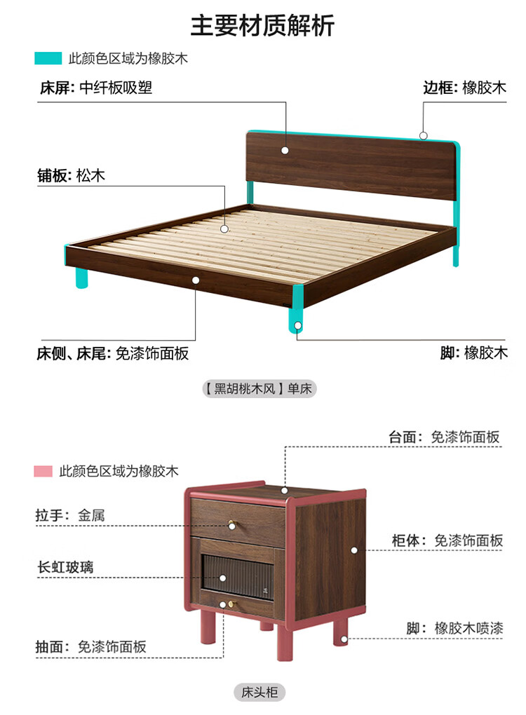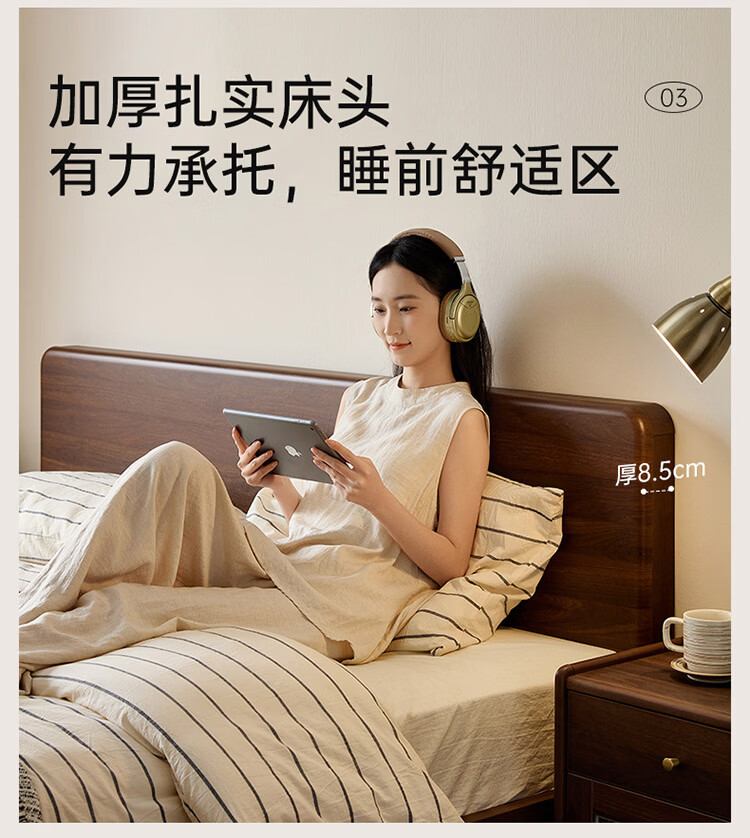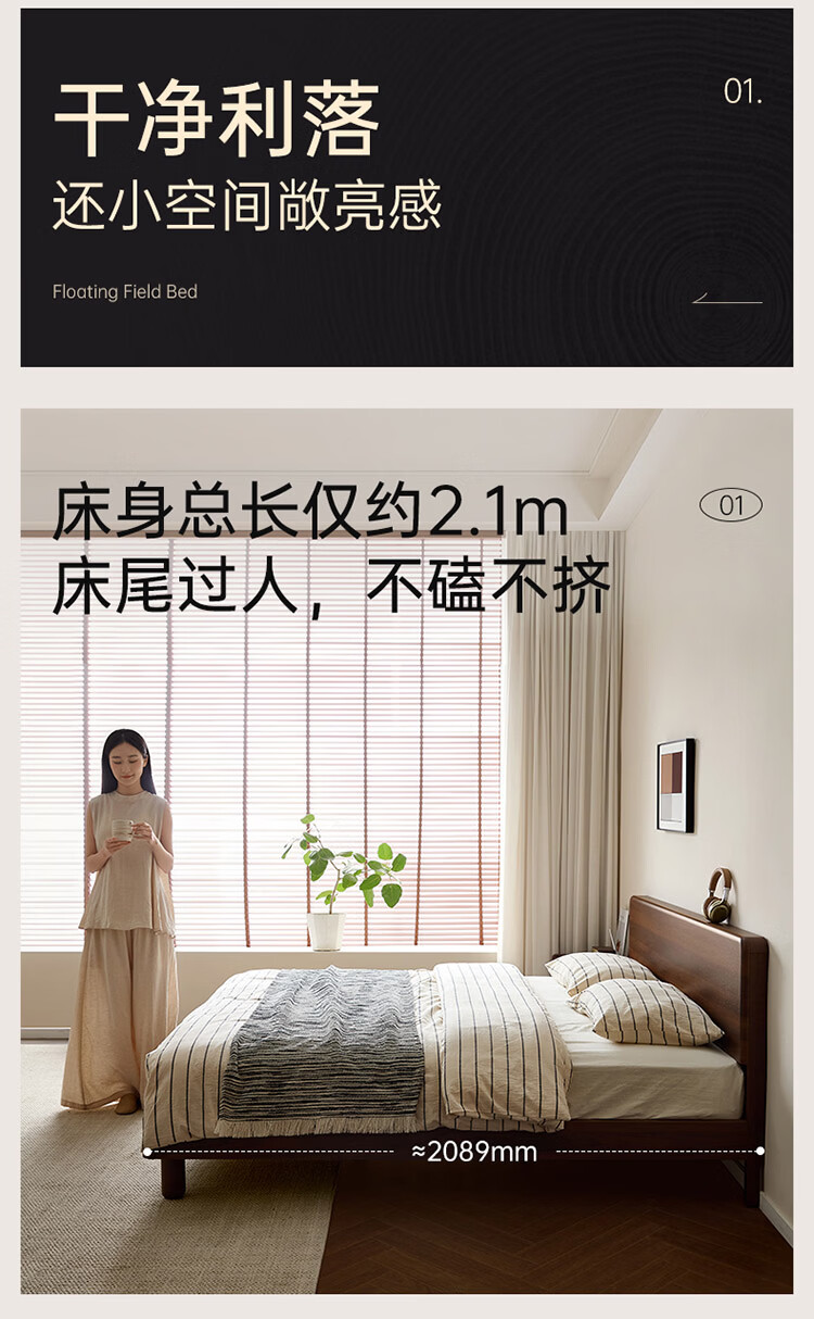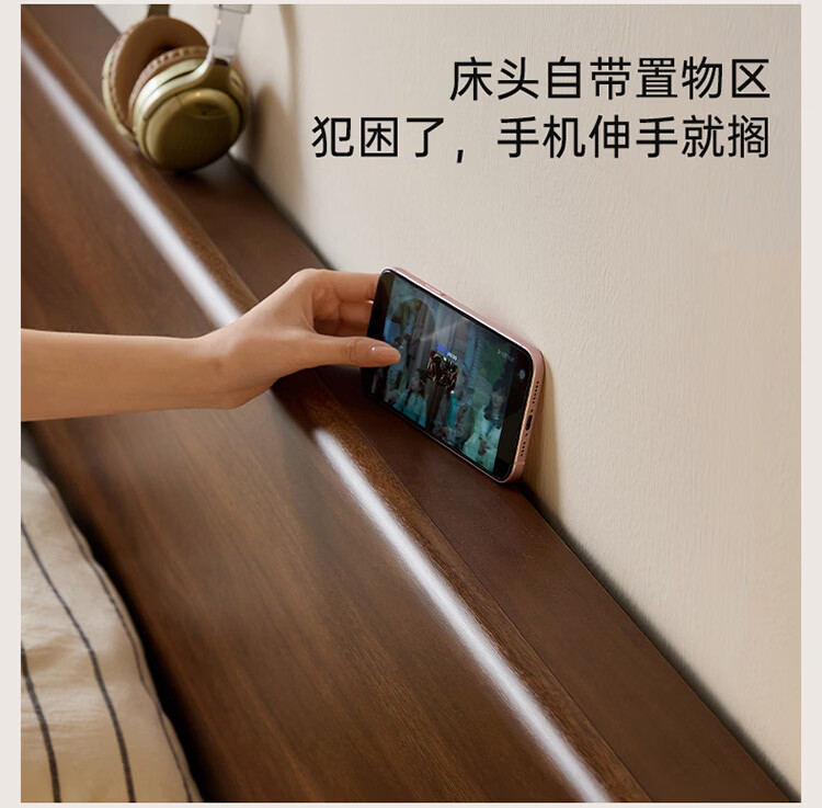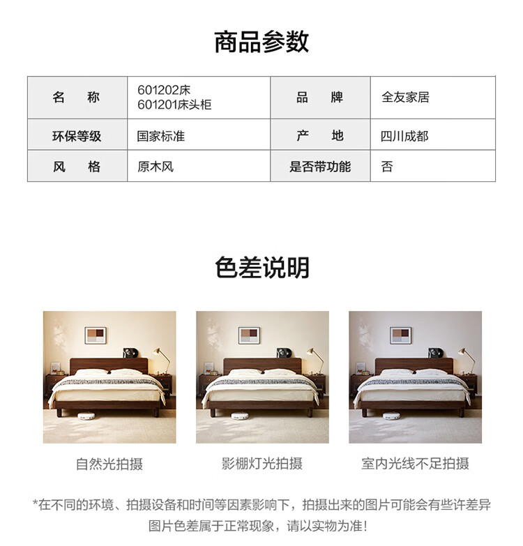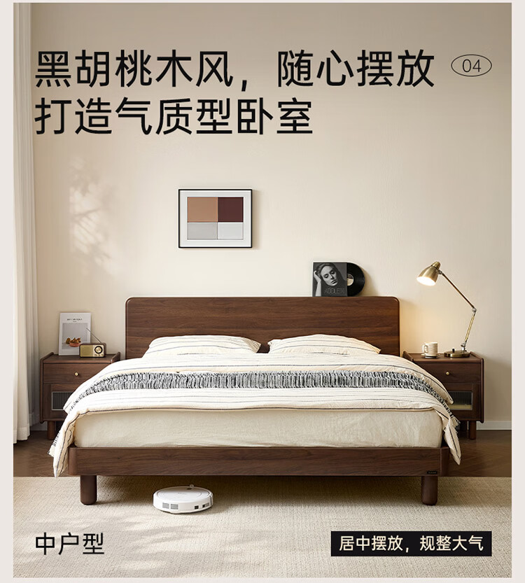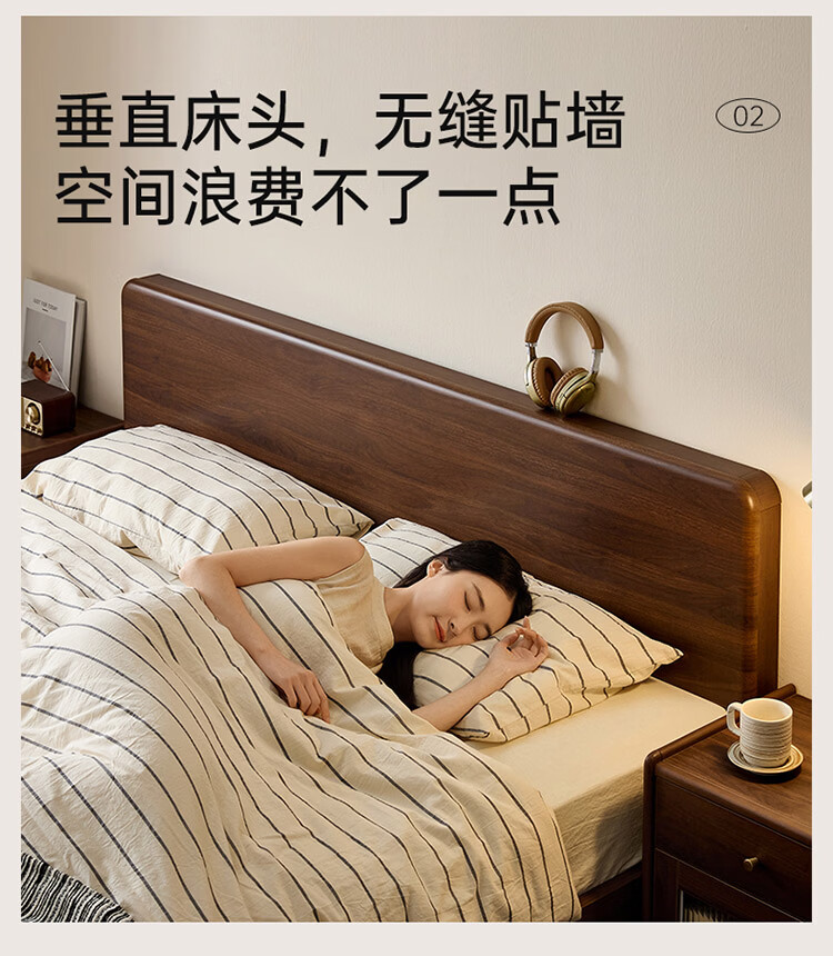 全友家居原木风高脚储物双人床2026新款小户型卧室排骨架床和床垫组合 【黑胡桃木风】 1.5米x2米 单床