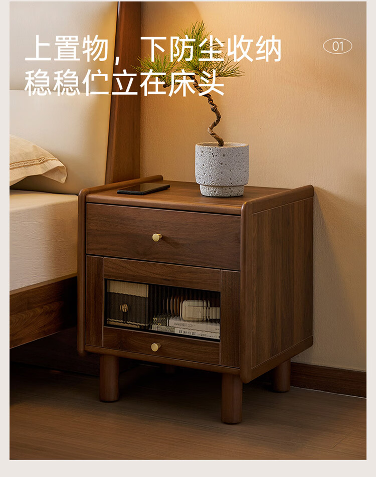 全友家居原木风实木餐边柜家用玻璃展示柜收纳储物小柜子沙发边柜KS 【胡桃木色|橡胶木】双门款餐边柜