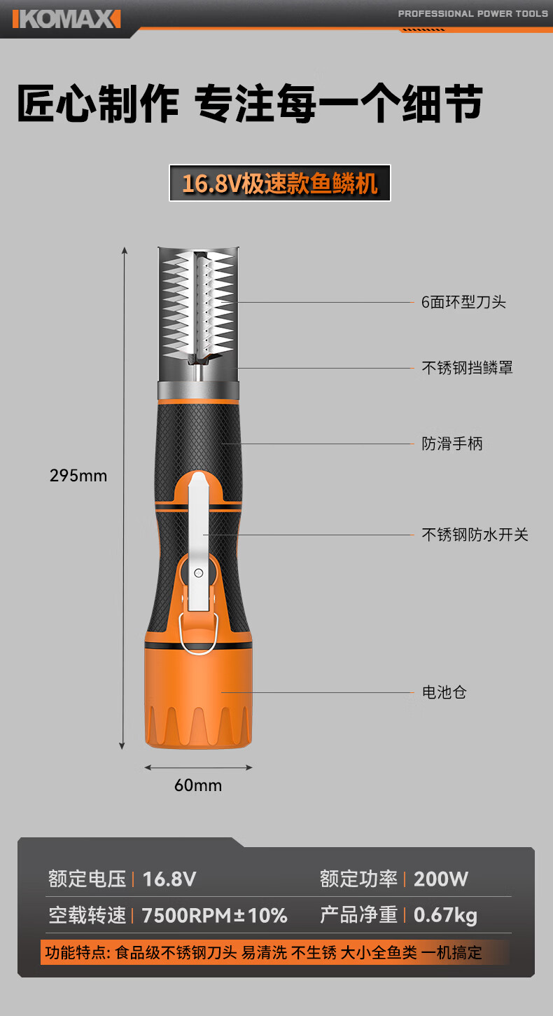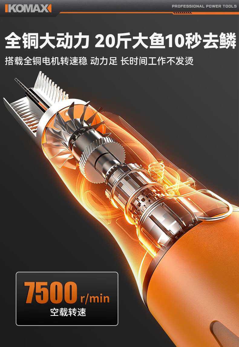科麦斯(KOMAX)电动刮鳞神器充电式锂电全自动防水无线刮鳞器家用商用工具刮刀 16.8V极速款鱼鳞机2电1充
