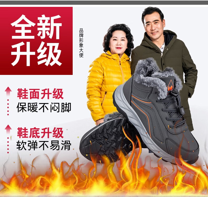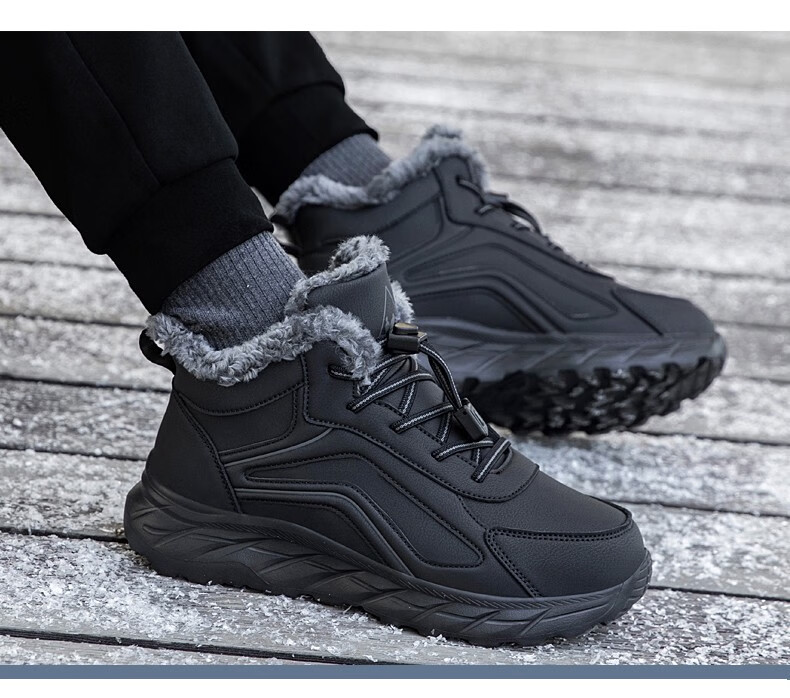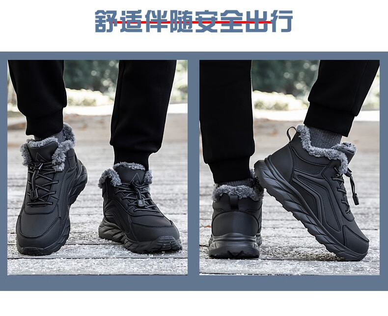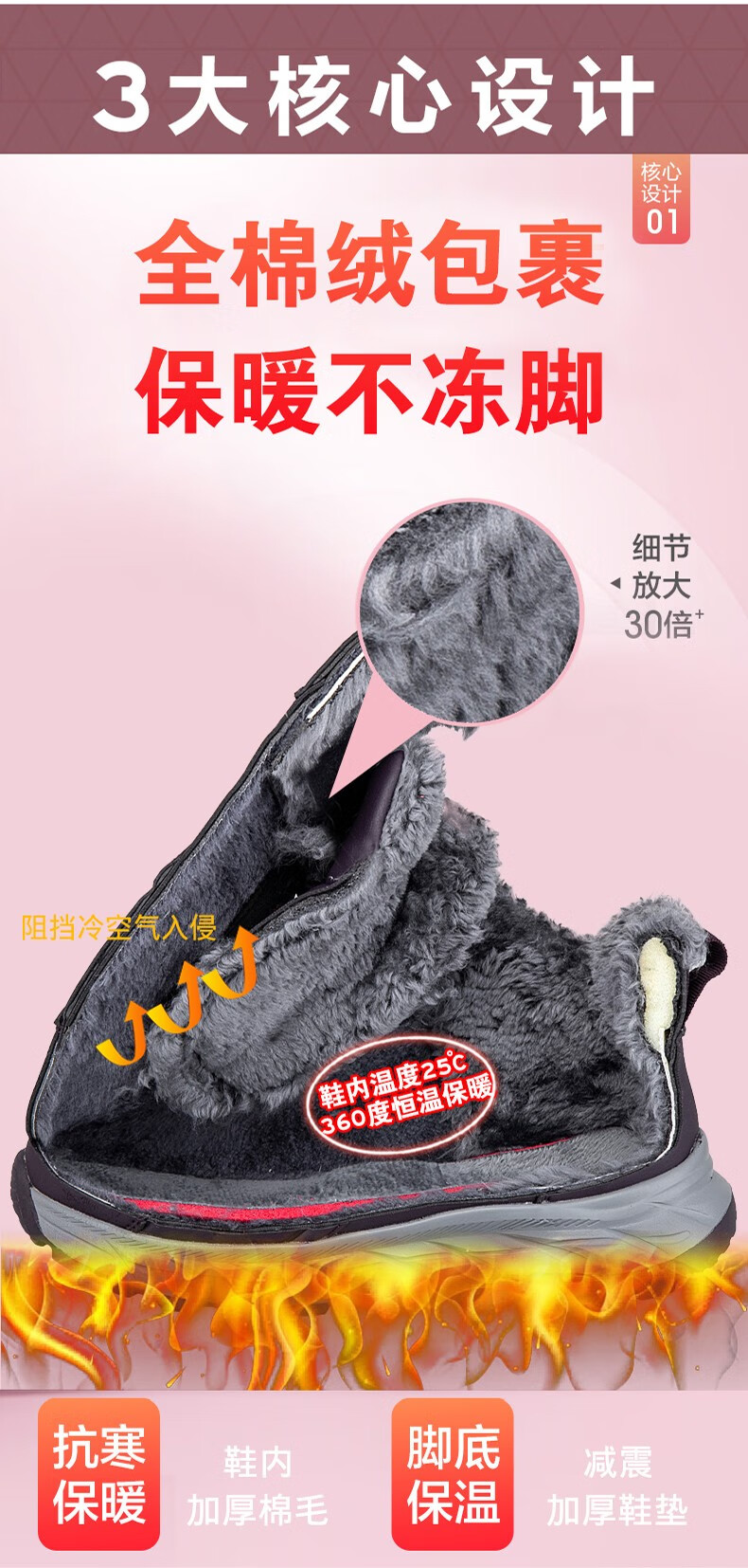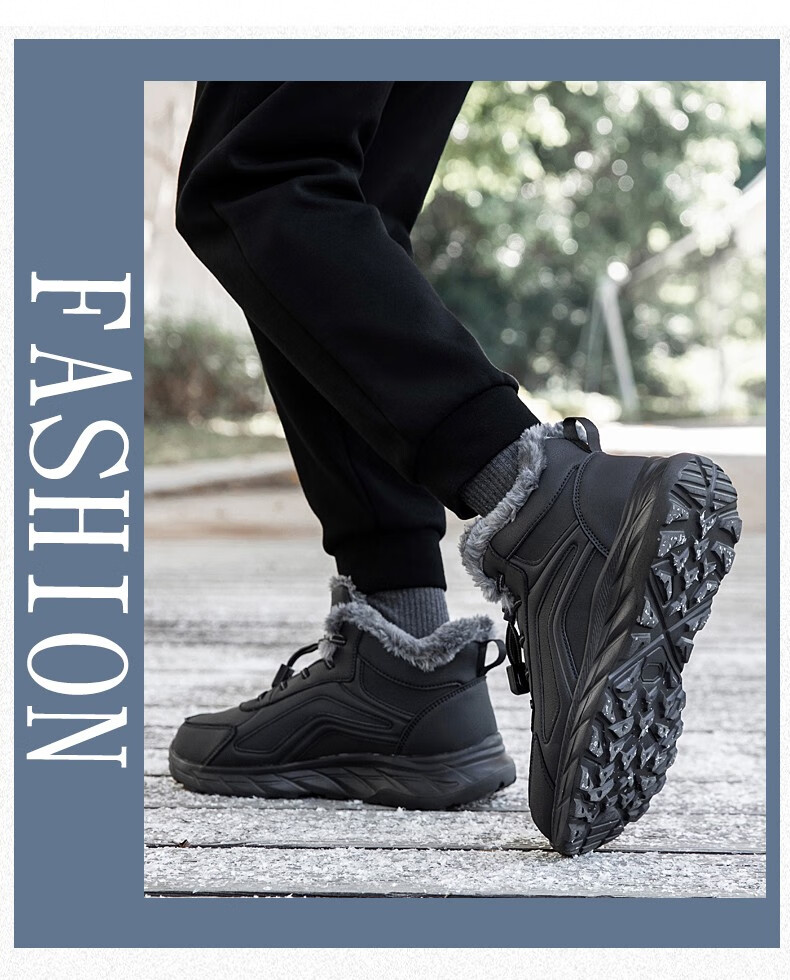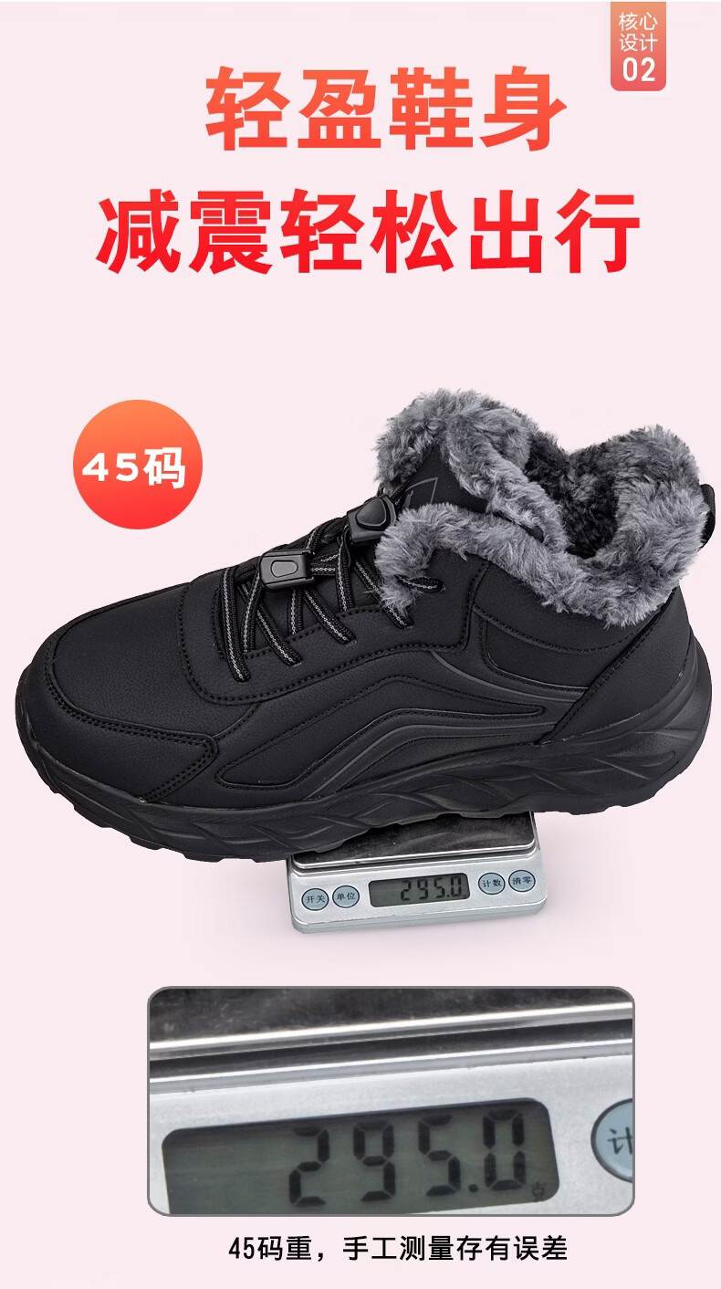 足力健大师健步老人棉鞋冬季女士加厚保暖鞋防滑中老年软底高帮雪地靴休闲鞋 8279加绒款黑色男款 加绒 45